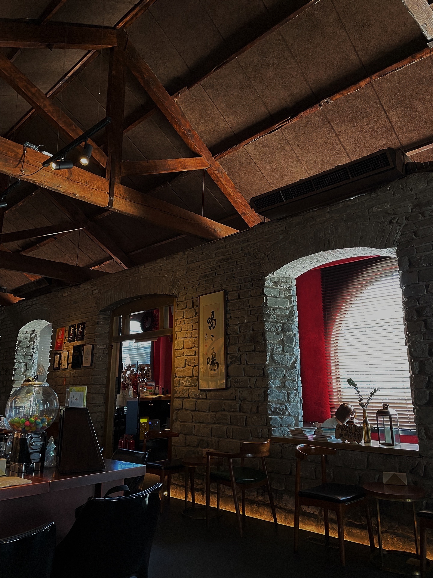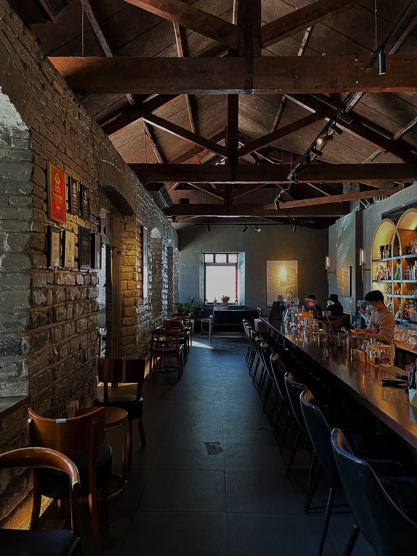 虽然我是白天来的,但是这里的氛围,应该是越夜越美丽吧,昏暗的灯光,慵懒的沙发,酒瓶都散发出诱人的光泽。我和小伙伴都不能喝酒,点了咖啡和甜点。
