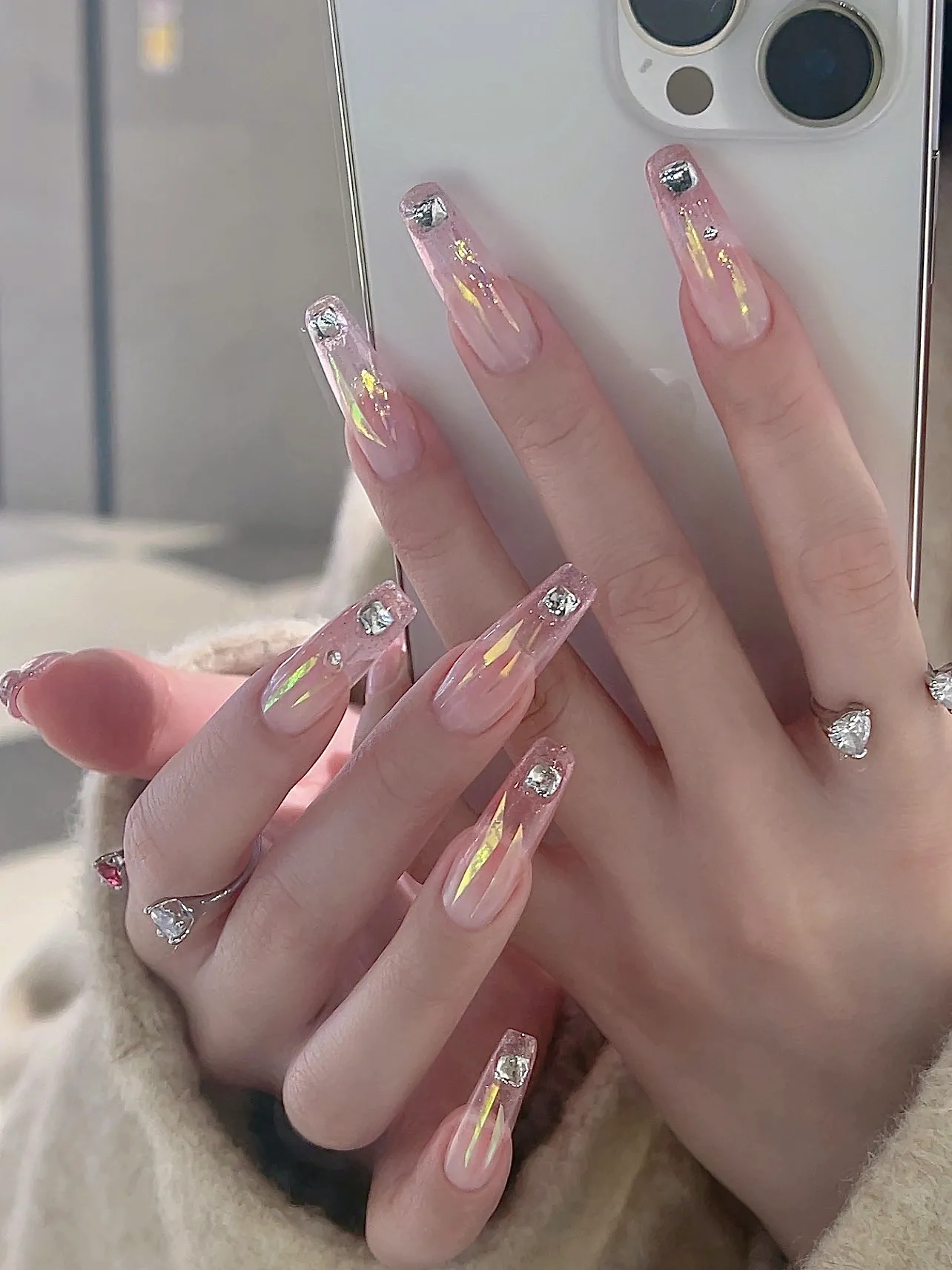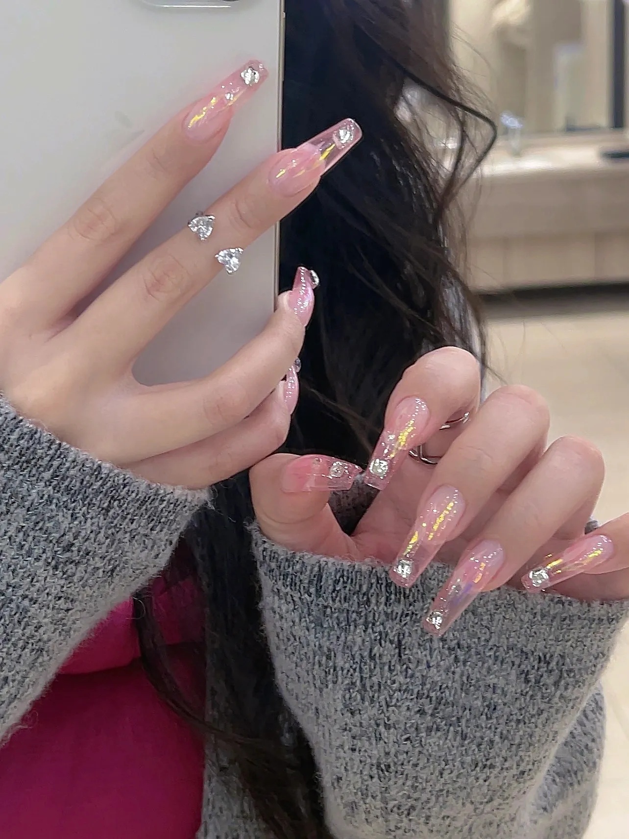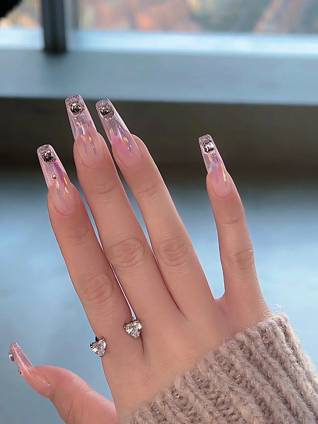 有一点动心💓|冰透粉玻璃渐变延长美甲