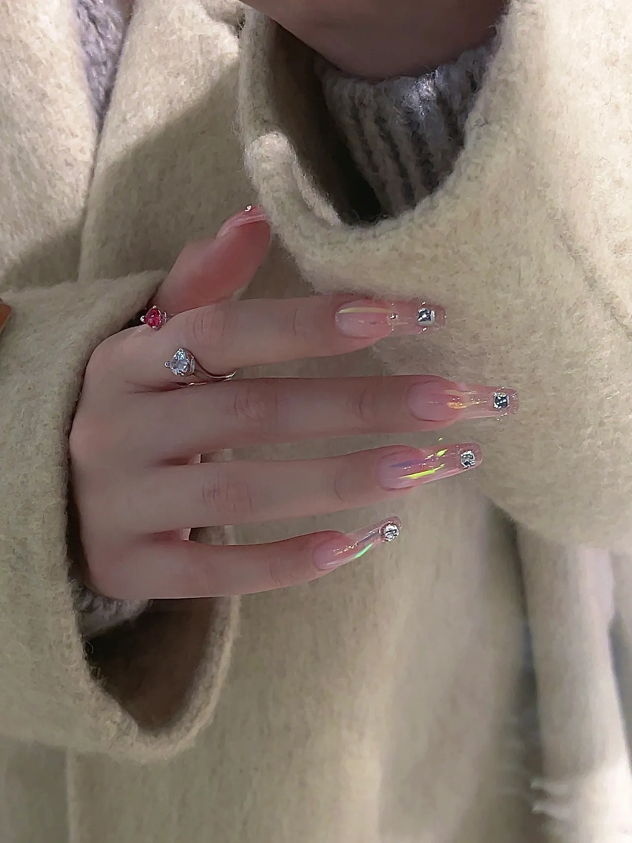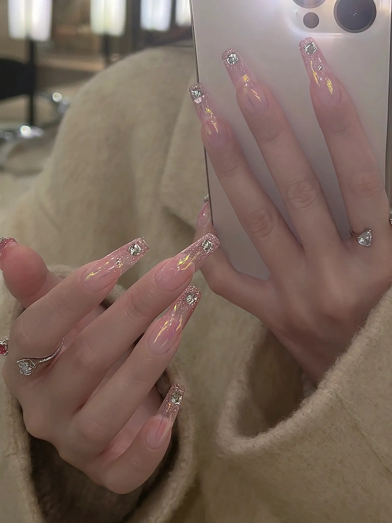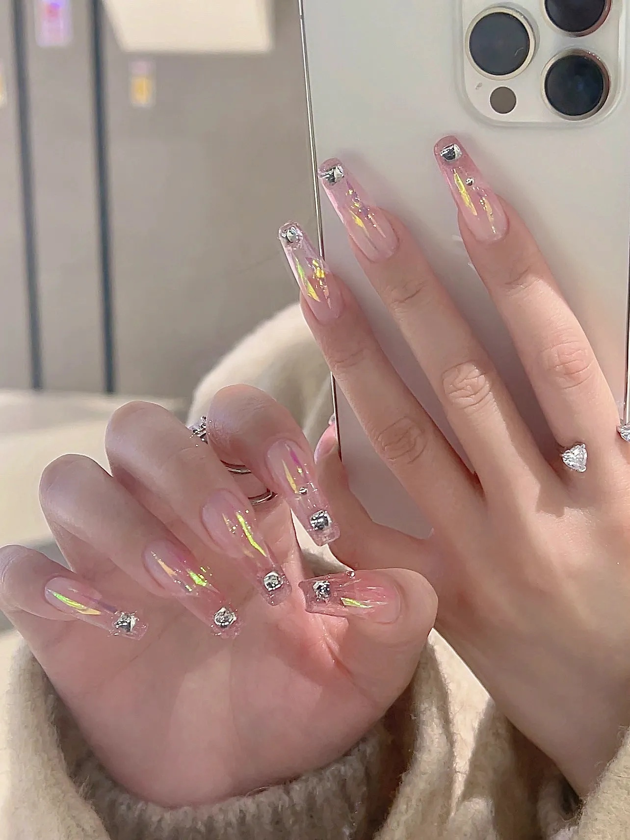 有一点动心💓|冰透粉玻璃渐变延长美甲