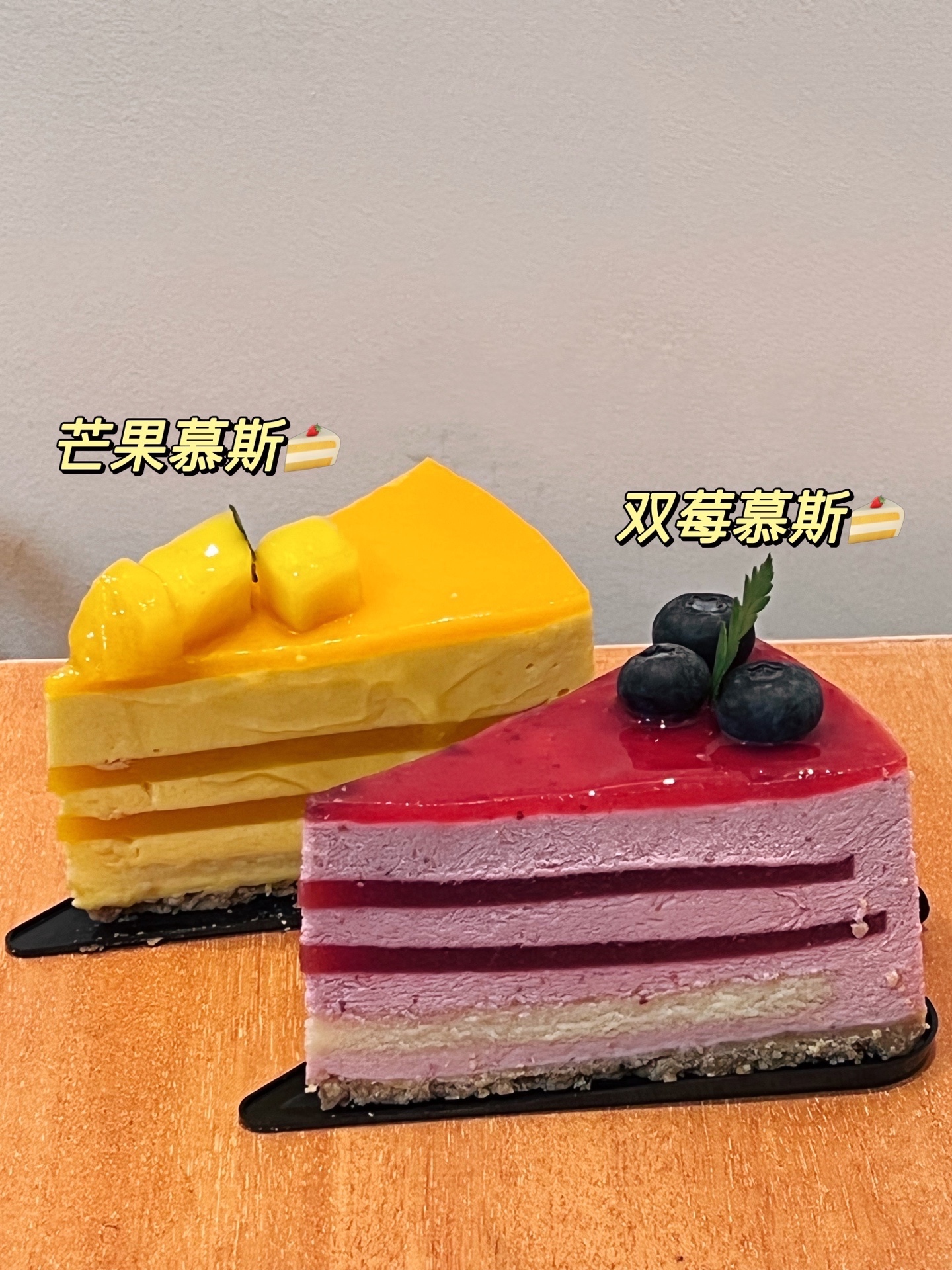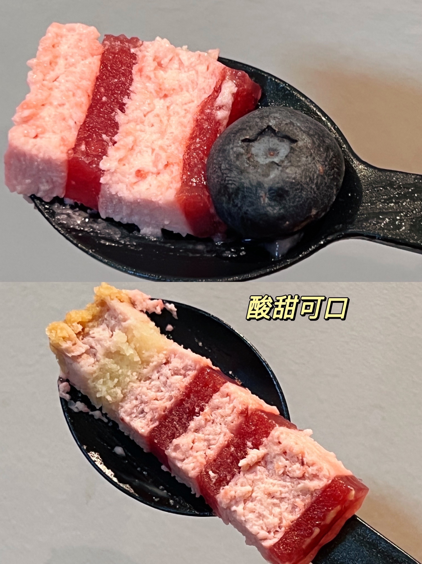 双莓慕斯蛋糕🍰,吃起来酸甜可口,清新的口感。好吃!底部还有饼干碎,而且颜值很赞呢!