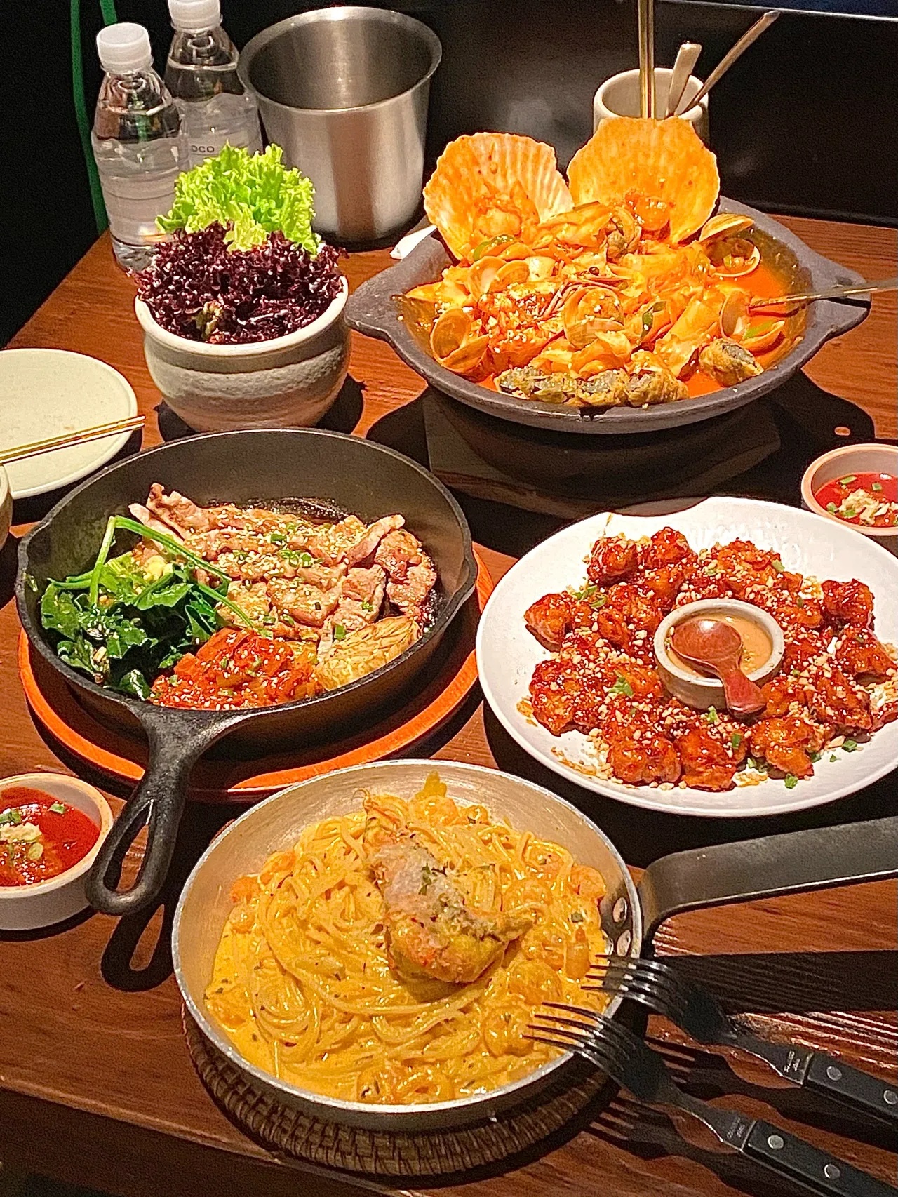 韩式创意料理!!韩式和中式的结合!!尝鲜还是不错的!!菜品颜值都很高!!很好出片[偷笑R]