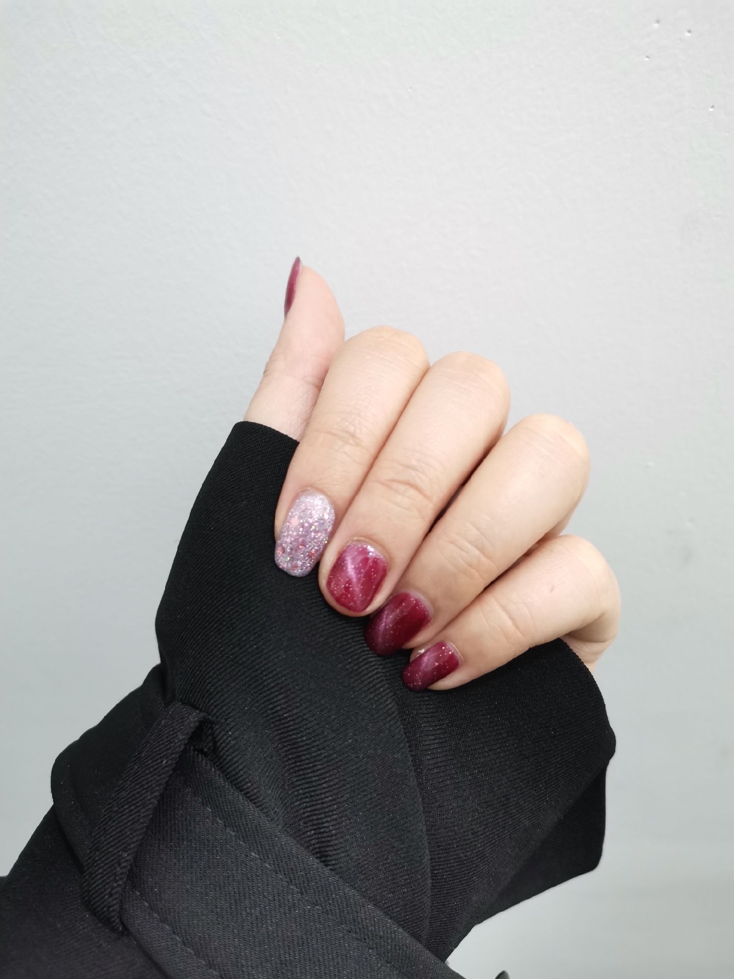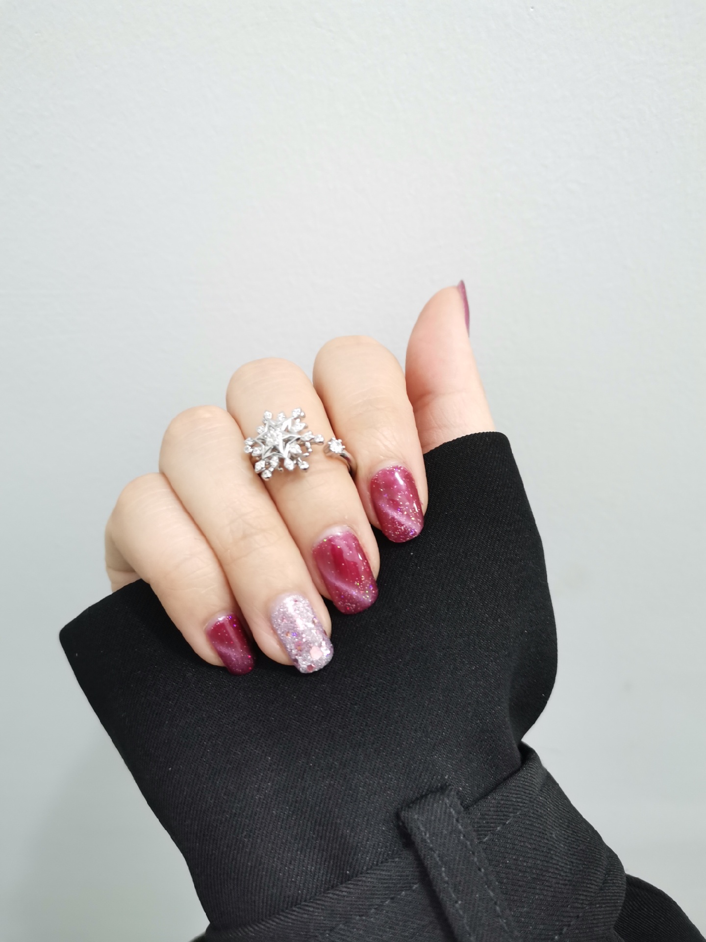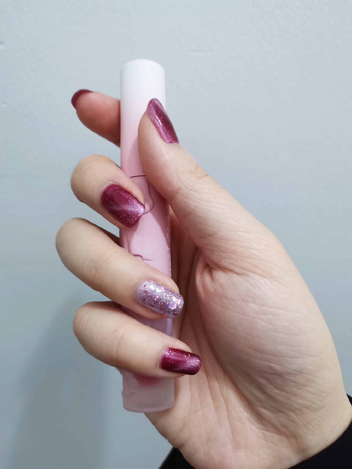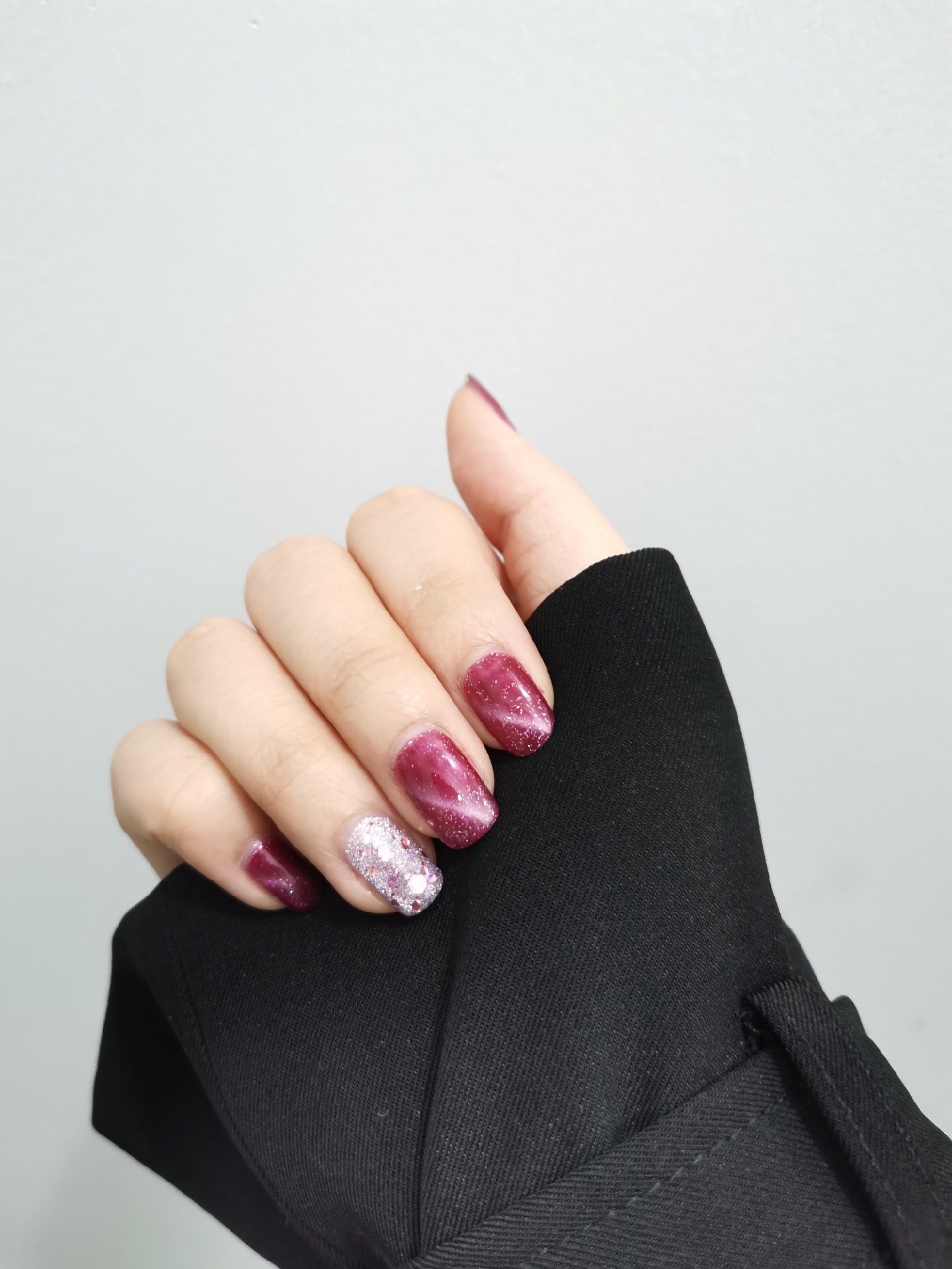 ( 一眼就看中这个猫眼,是小姐姐疯狂给我推荐搭配063全息,再叠涂一下018的亮片,真的很nice,小姐姐眼光真的很好,爱了爱了