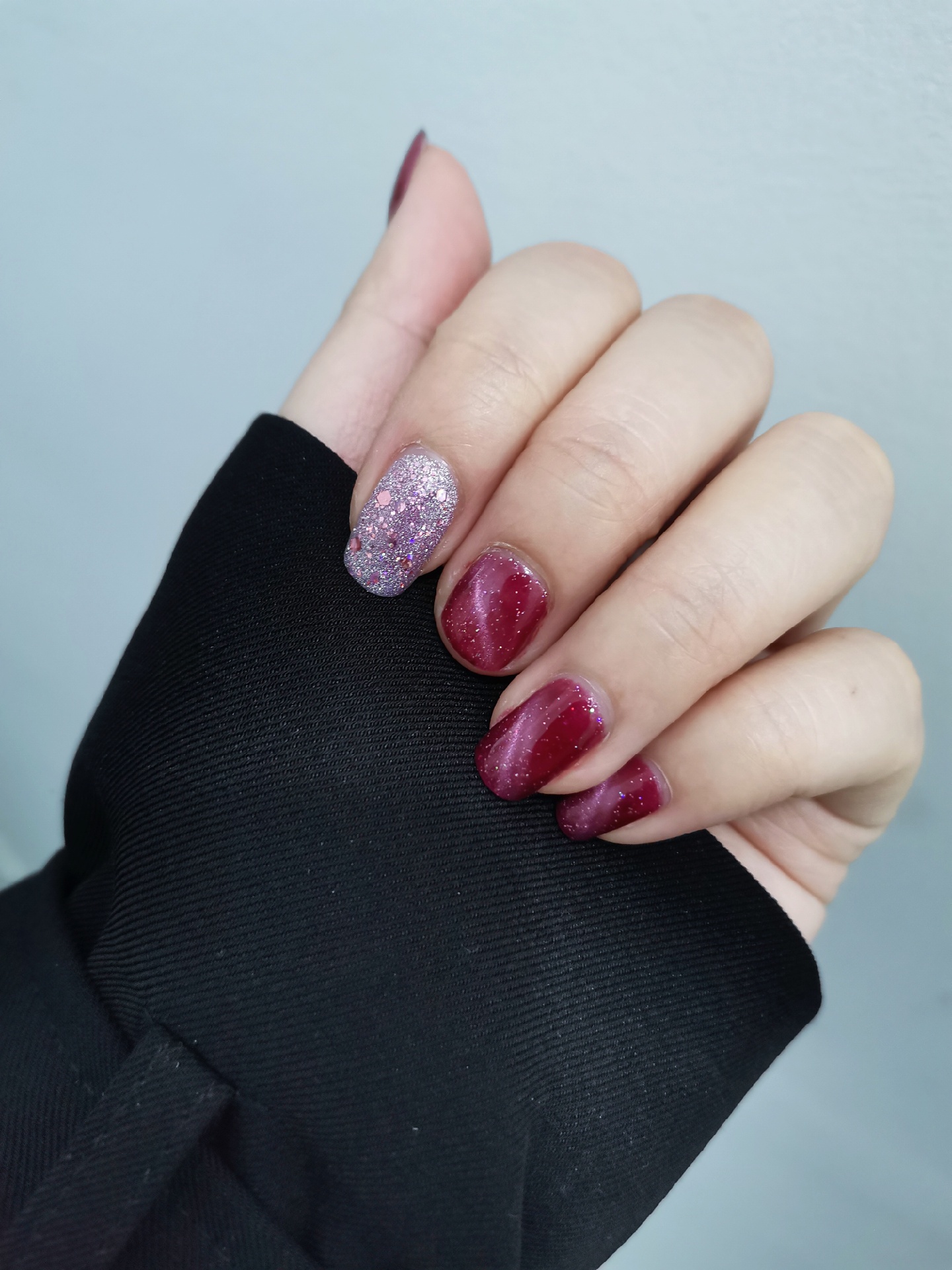 🙌主色新色板猫眼036,搭配色新色板底色063全息,上面叠涂亮片018!提气质绝绝子!