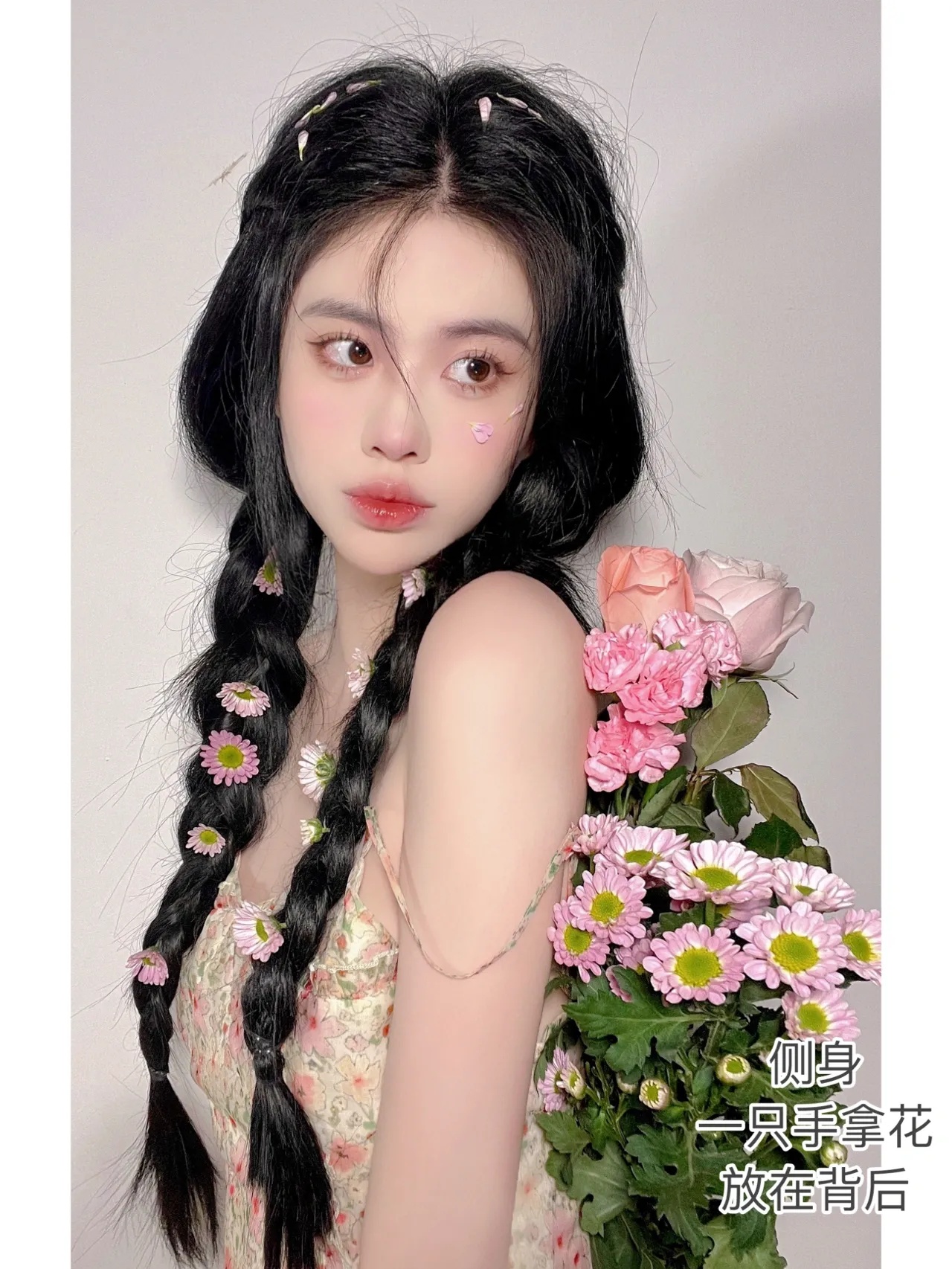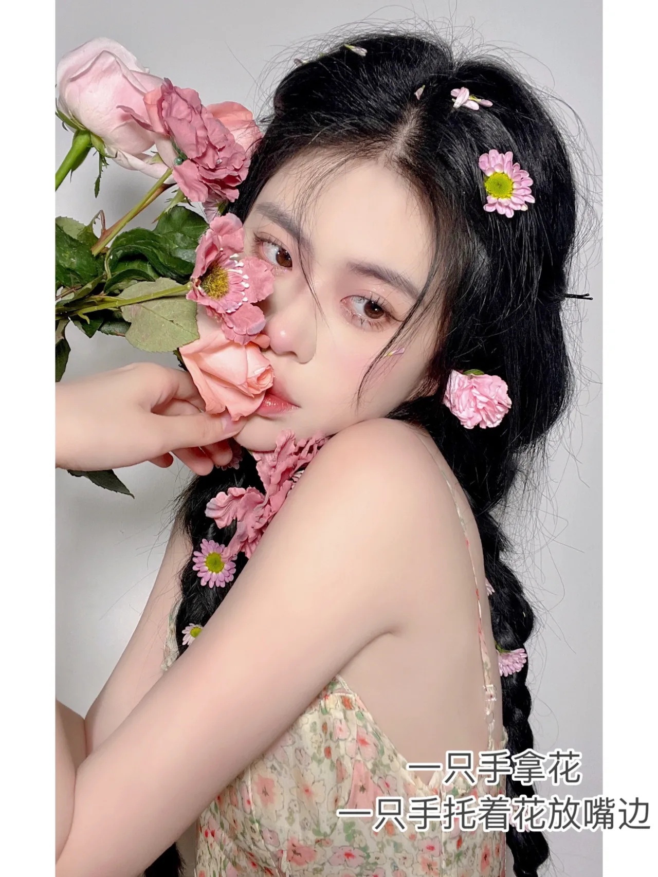 今天教大家几个拿花花的拍照姿势,都炒鸡简单好用[赞R]