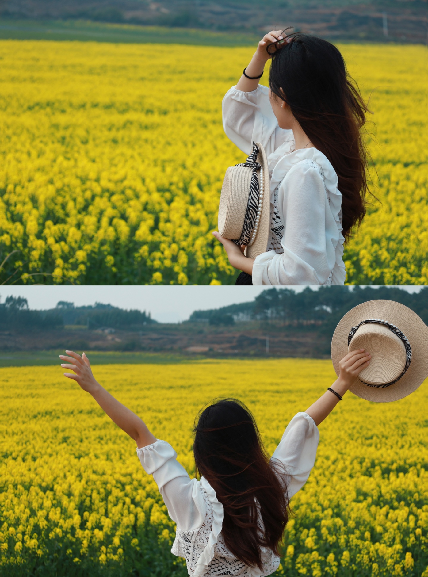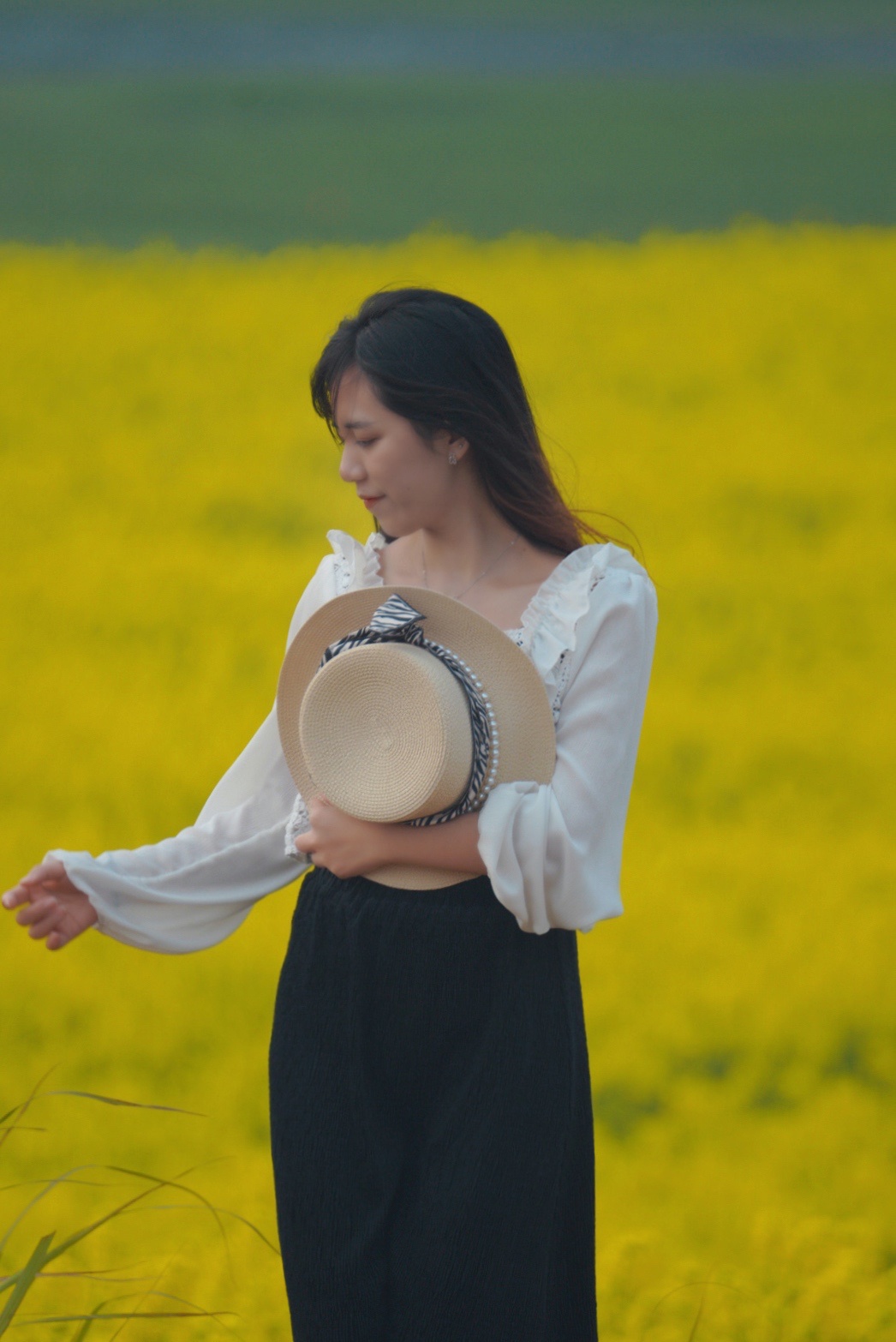 微风悄悄吹动发梢吹动裙角吹动她的睫毛