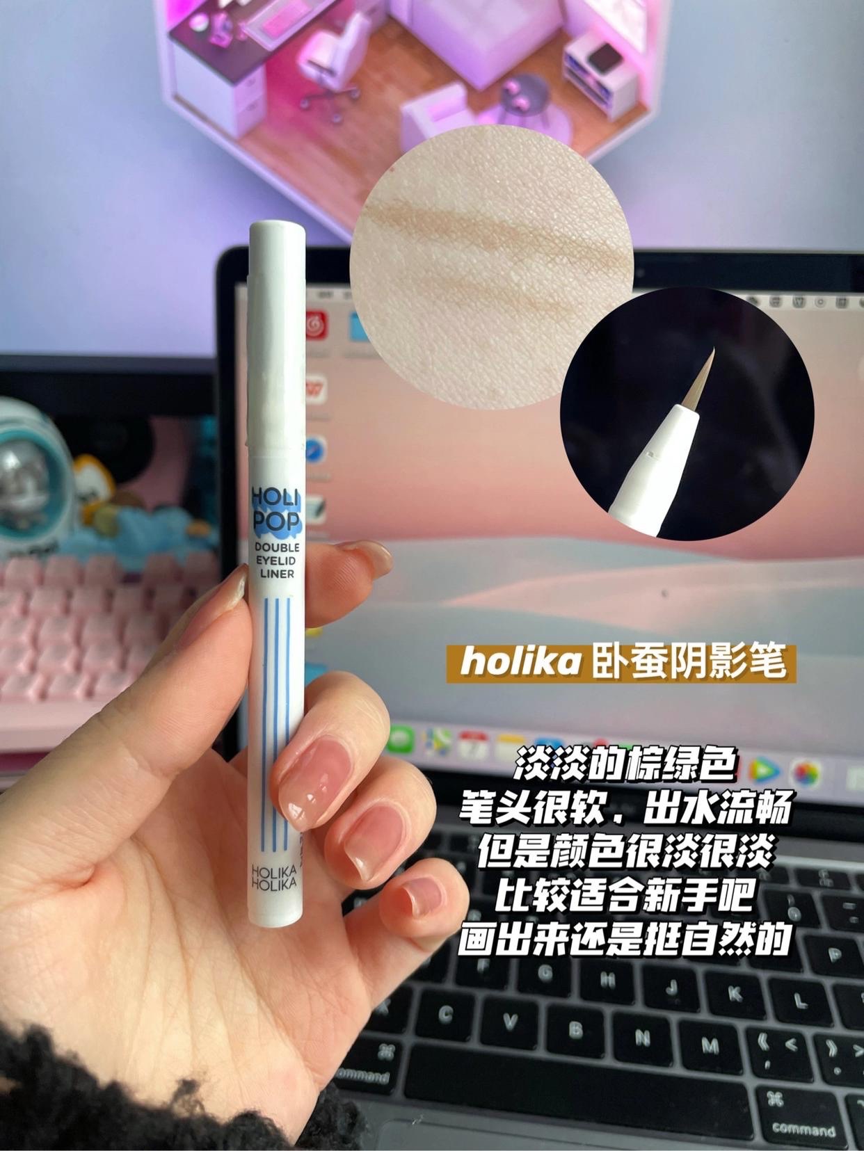 · holika:淡淡的棕绿色,笔头很软,出水流畅,画出来还是挺自然的。