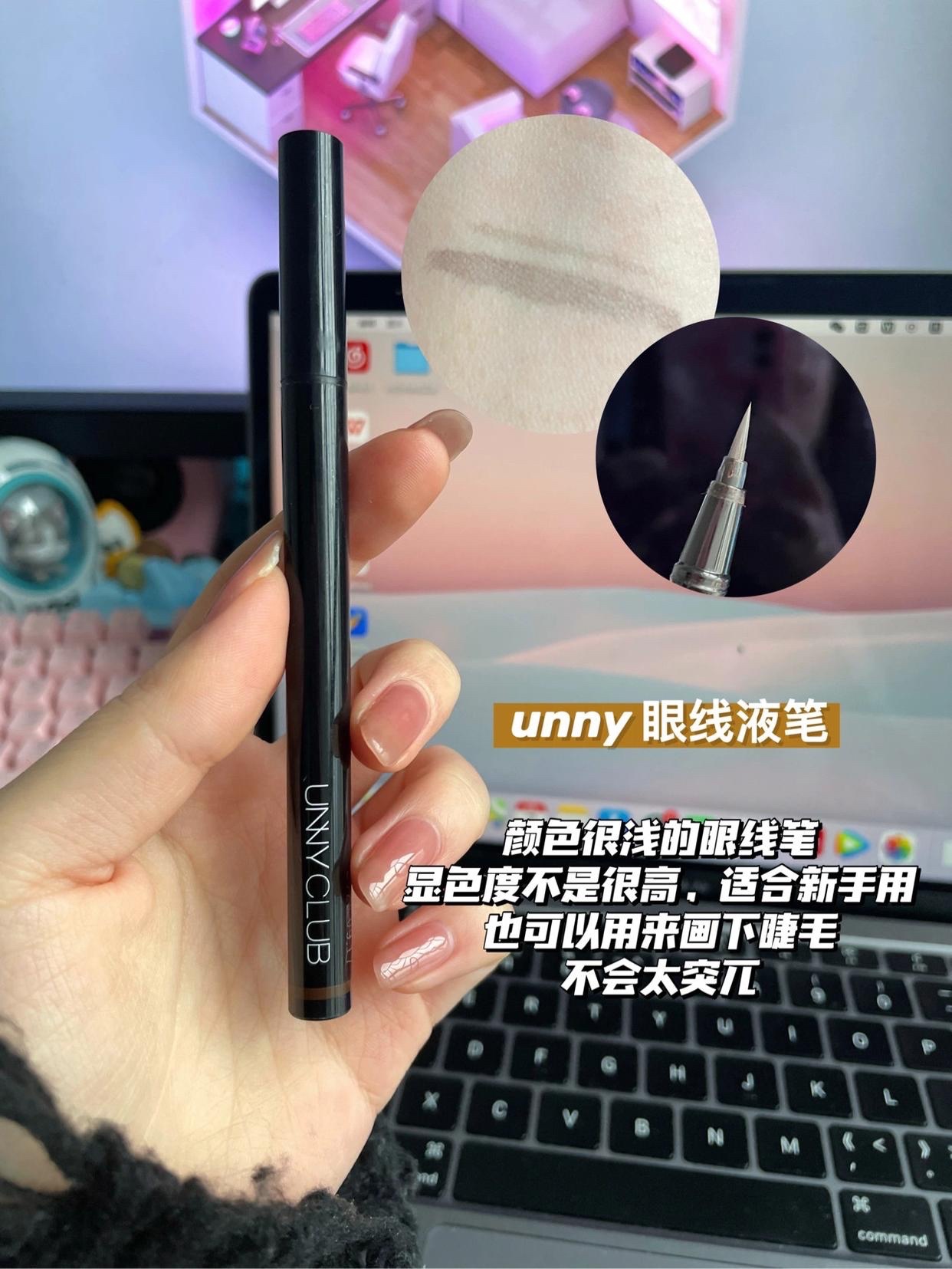 · unny 眼线液笔:颜色很浅的眼线笔,显色度不是很高,适合新手用,也可以用来画下睫毛,不会太突兀。