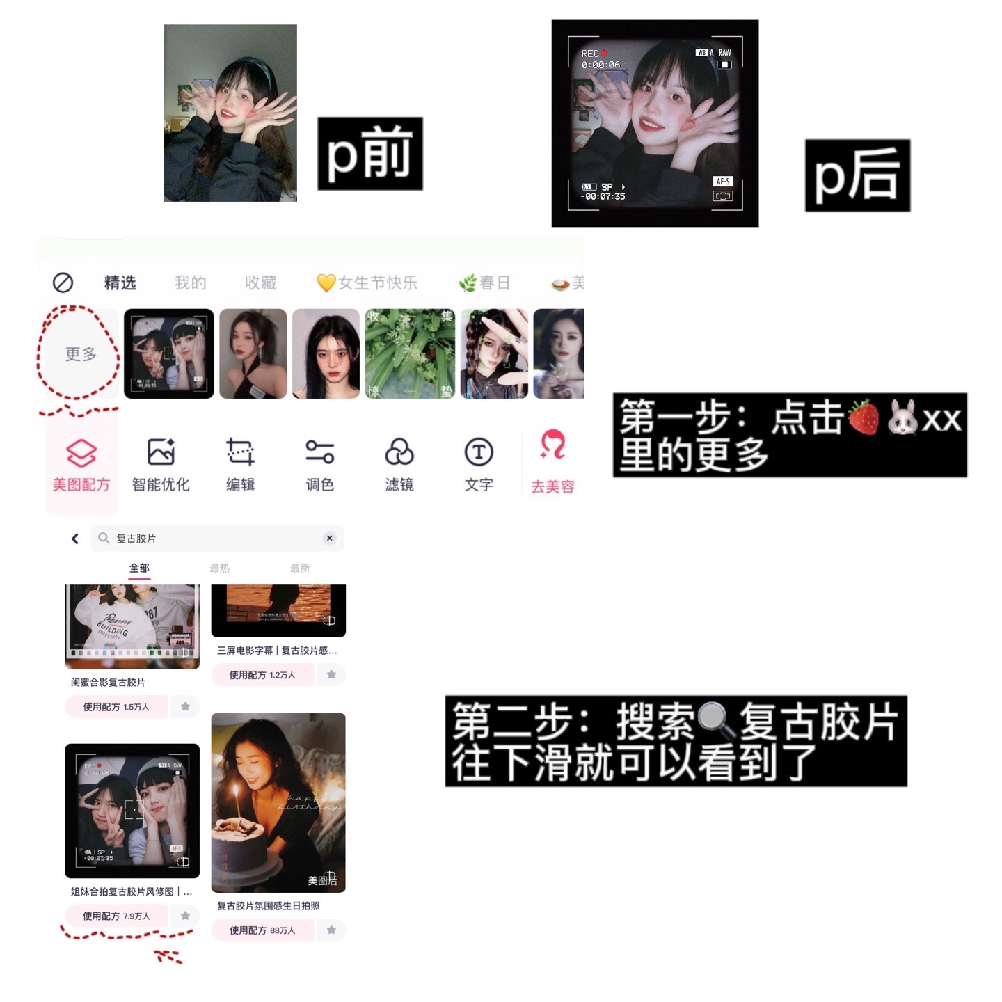 这个复古胶片也太可了吧~配上一人的口红爱心贴贴~好喜欢💕