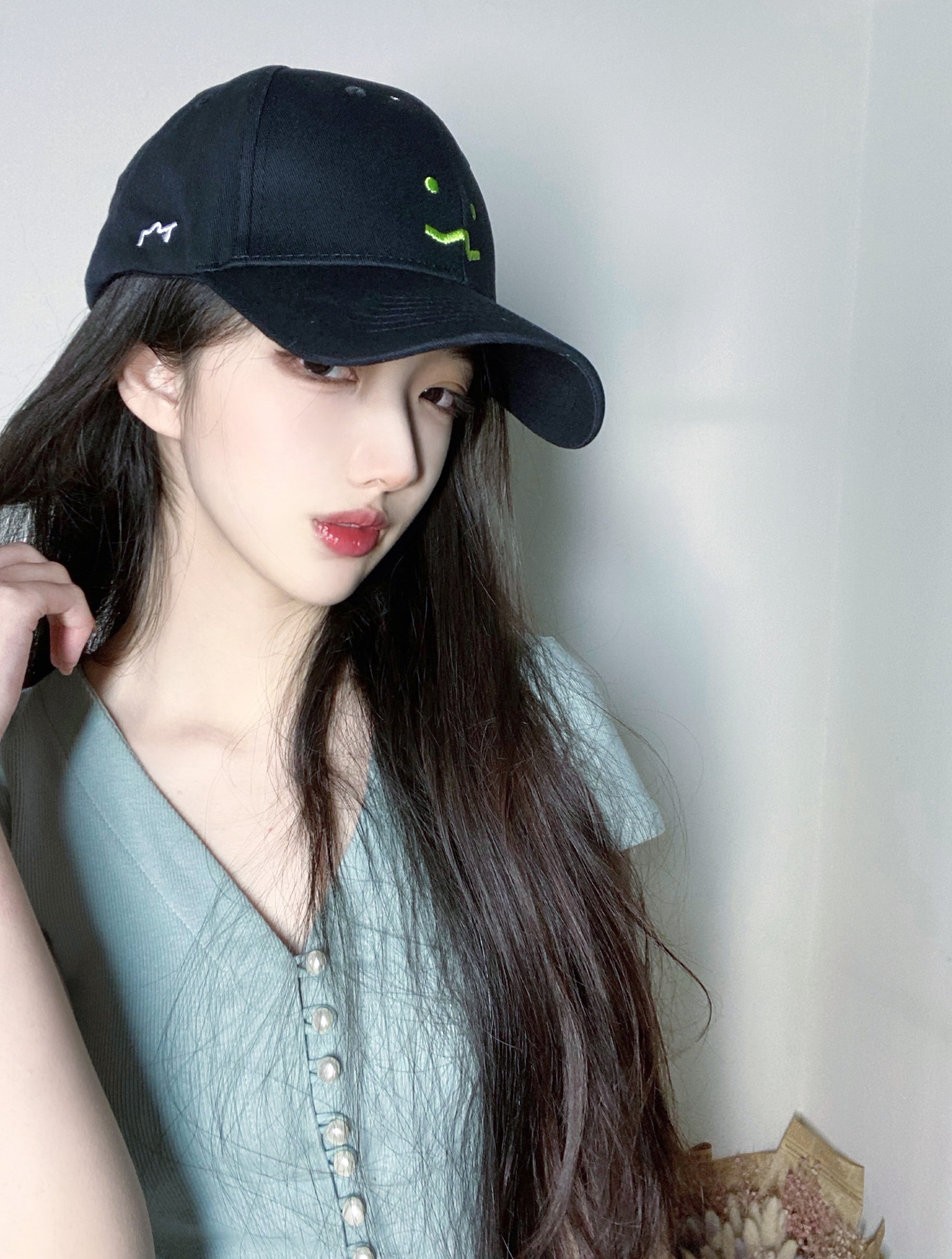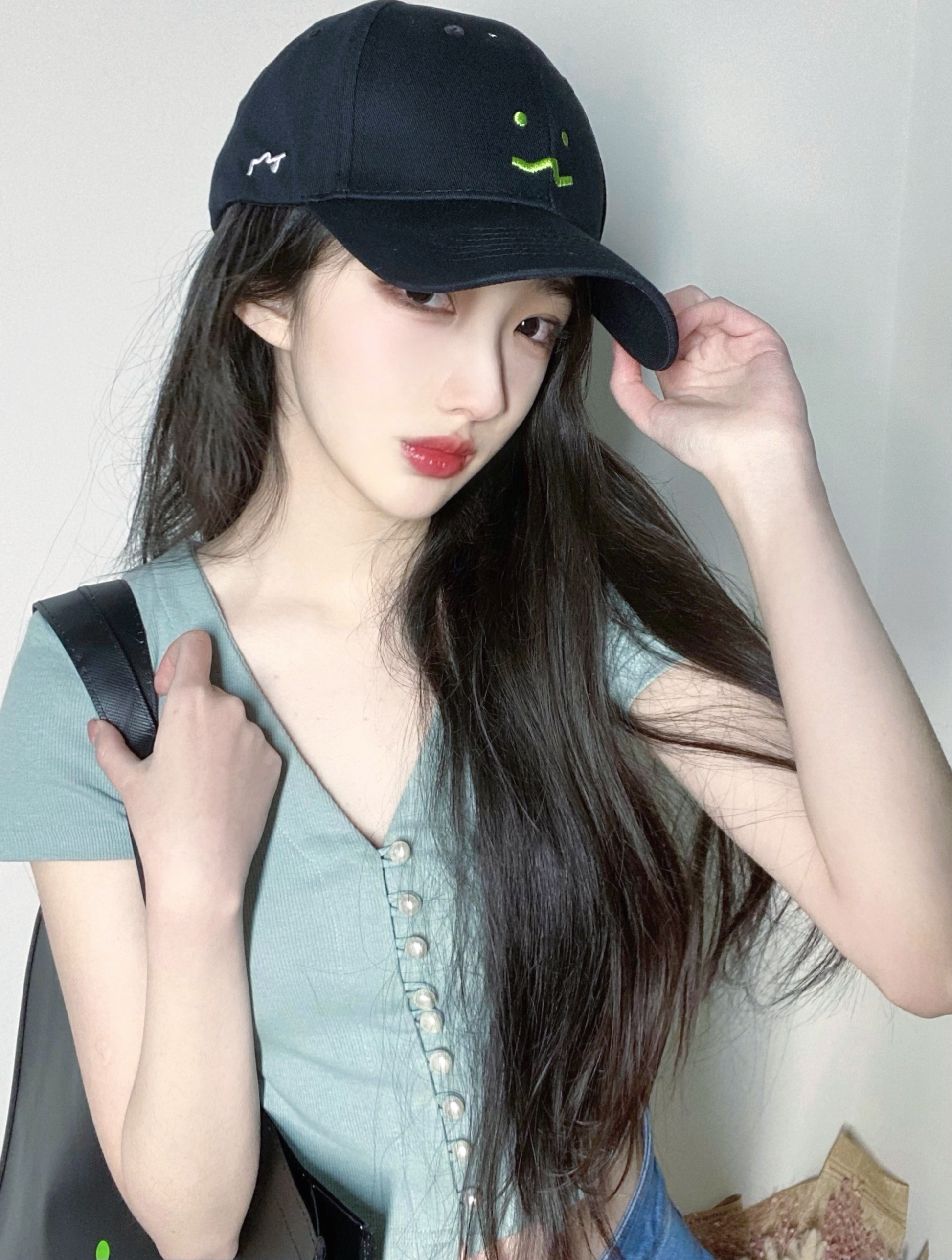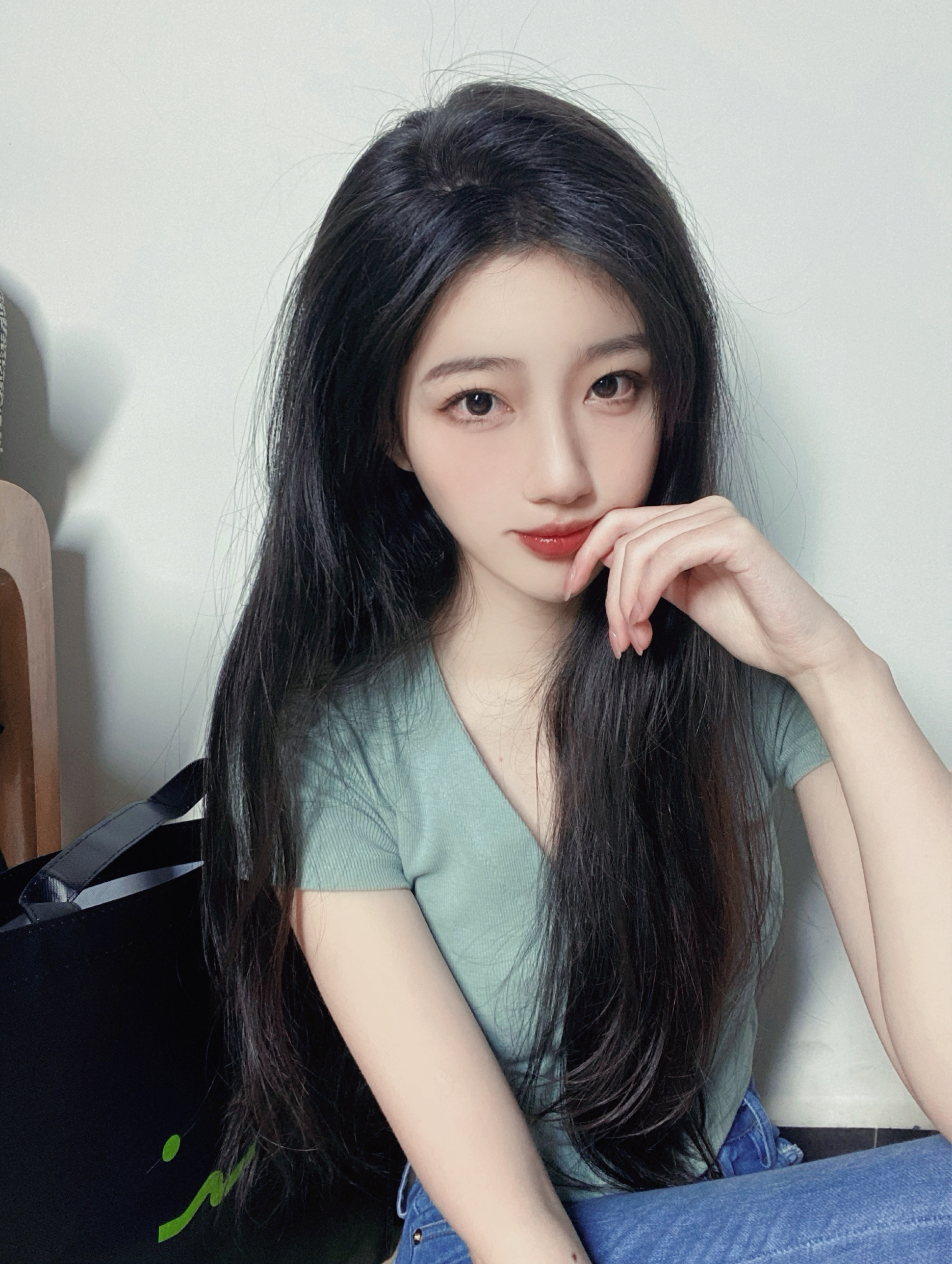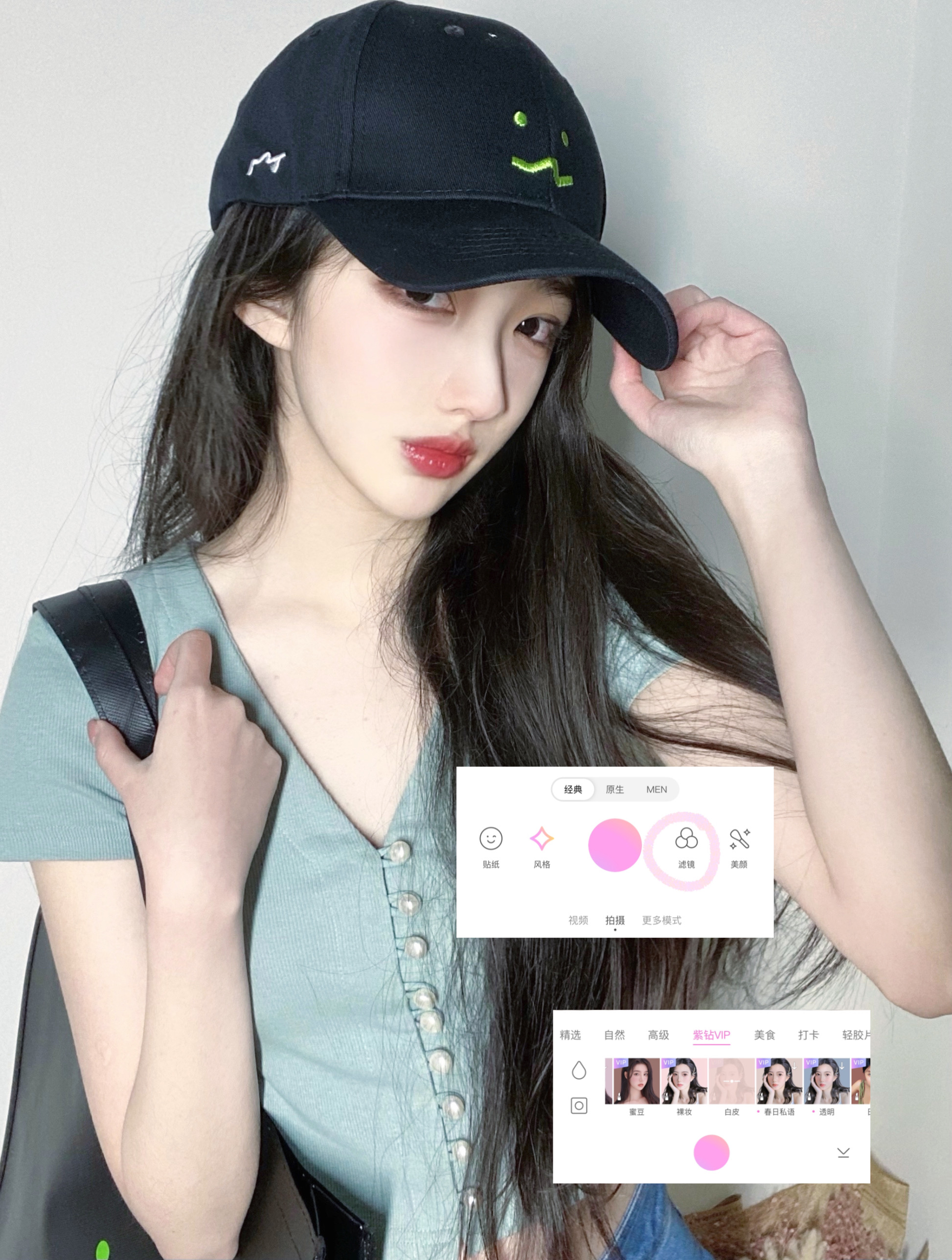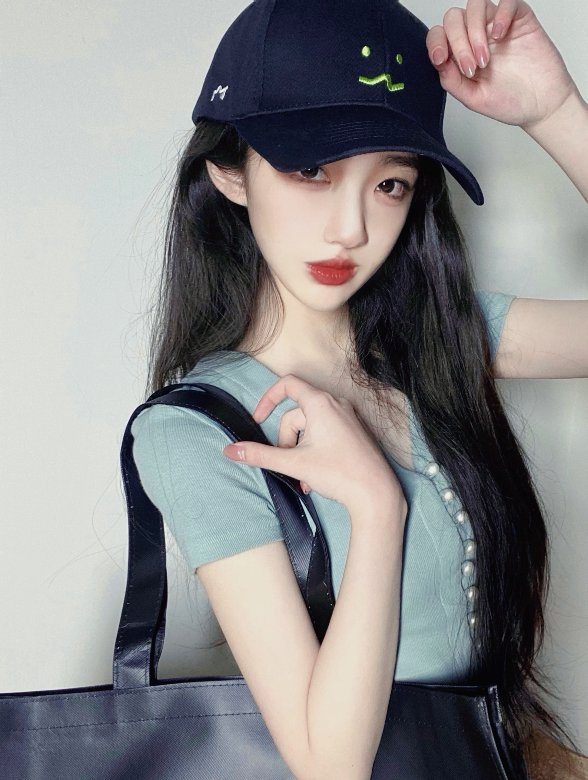 网感自拍的小秘诀选择白墙做背景,显得画面会干净些拍照姿势动作-美图社区-美图秀秀
