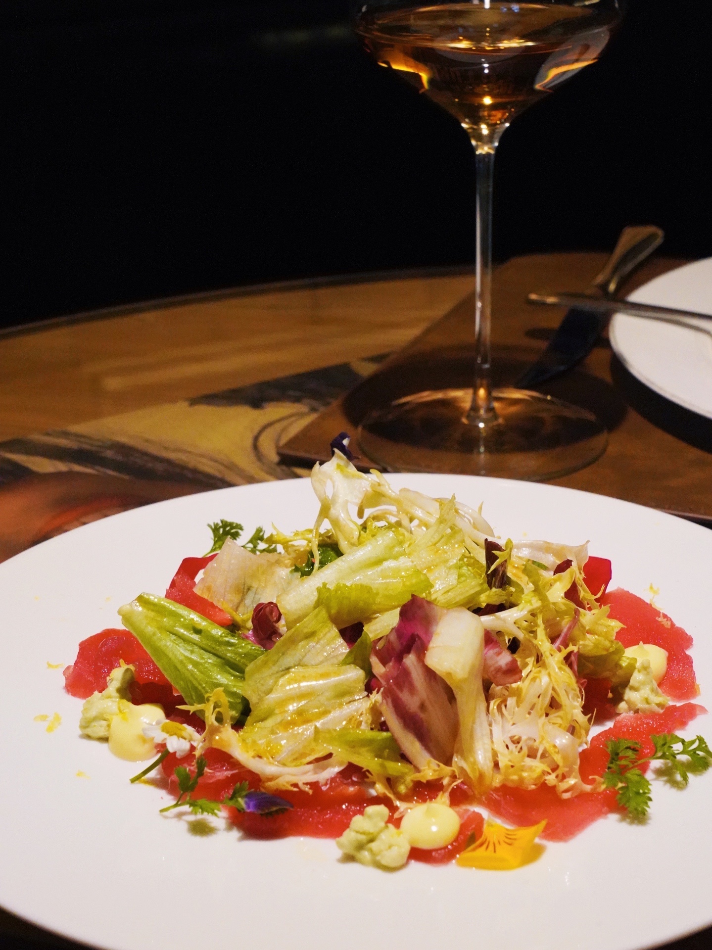 上面是沙拉,下面会铺一层金枪鱼,鱼肉超级新鲜,入口肉质绵密,鲜味浓郁,