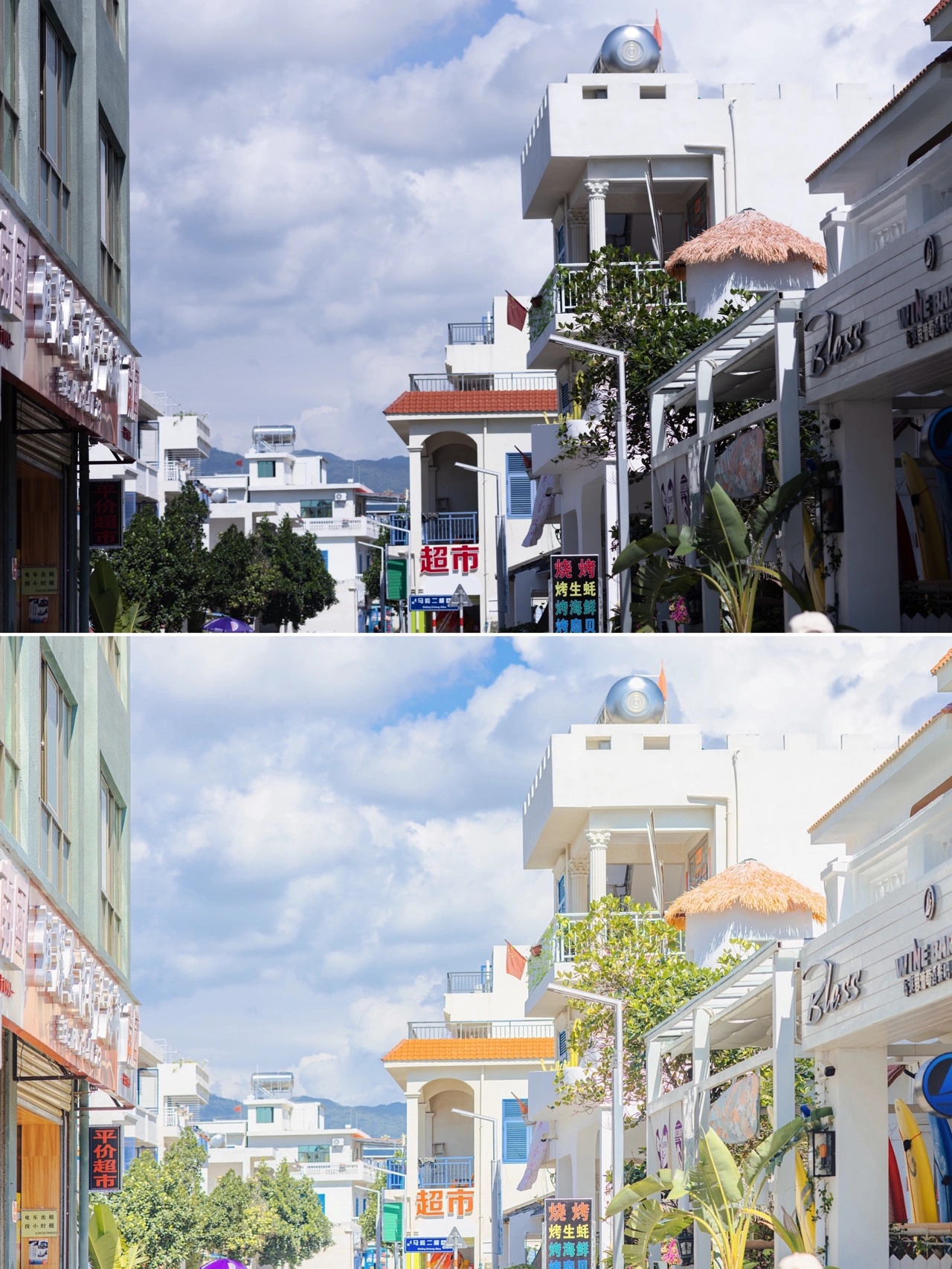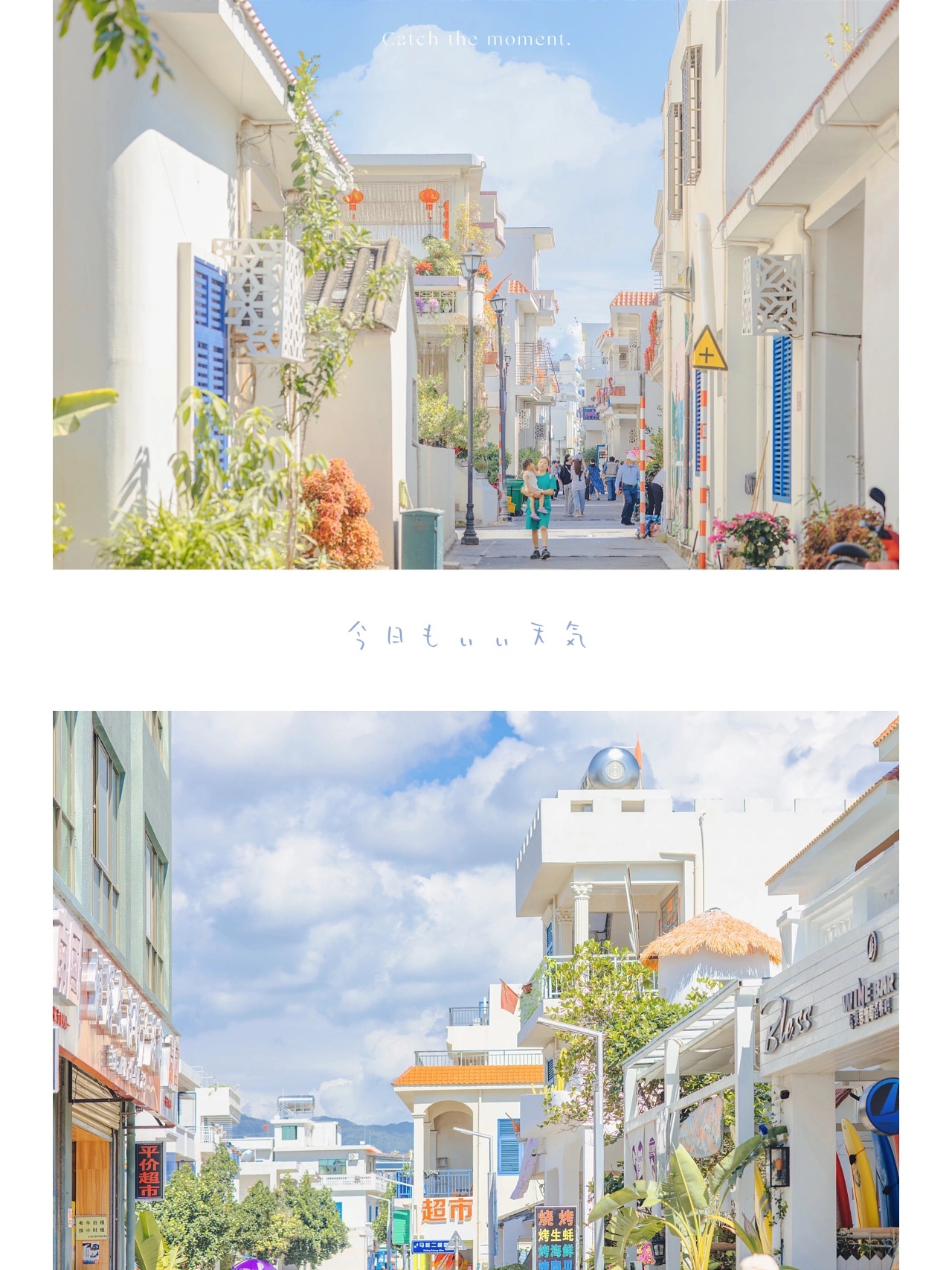 1⃣️ 说什么天涯镇是小圣托里尼和镰仓我觉得有点夸张,只是一个当地有些特色的小渔村,如果纯粹是想拍照的话这里确实还挺出片,整个小镇蓝白色调为主,随处可见的花,有几条巷子直接通往海滩,赶上晴天拍照加上滤镜效果还是很唯美的,记得一定要提前查看天气预报!没有阳光拍出来的照片连滤镜也拯救不了!