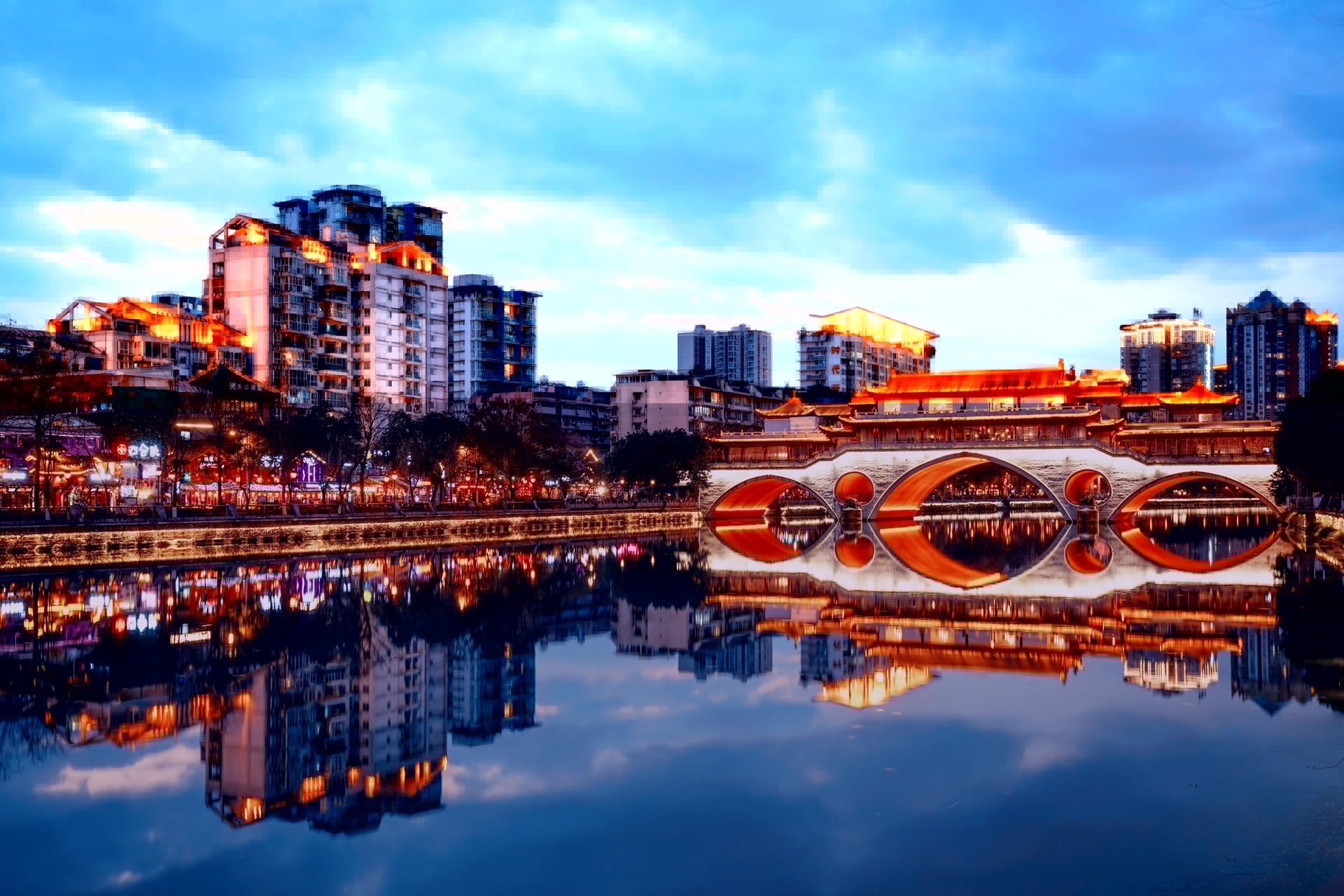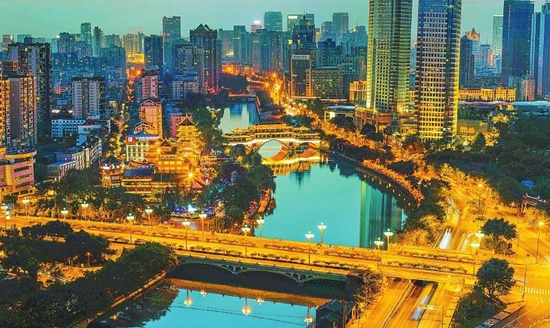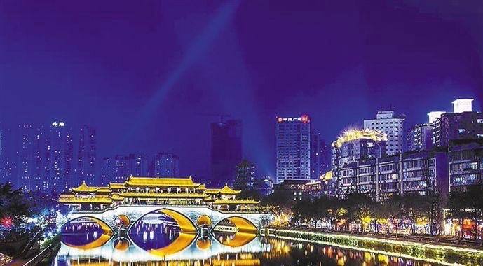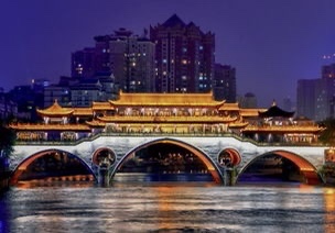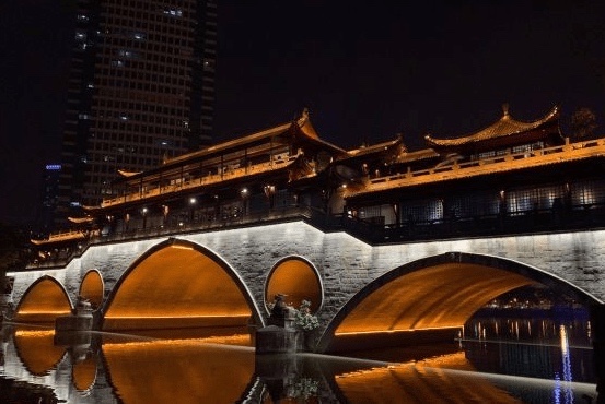 九眼桥位于成都市锦江区,古名宏济桥,又名镇江桥,始建于明万历二十一年(1593),由当时布政使余一龙所建。系石栏杆、石桥面的大拱桥,长4宽3高3丈,下有9洞。在清朝乾隆五十三年(1788)由总督李世杰补修时,改名为九眼桥。乾隆五十五年(1790)又加以重修。1988年于九眼桥西侧新建交叉钢架水泥预制桥,从桥基点起算,长约120米,宽25米,桥北下端辟有汽车通道横贯东西,形成半立式交叉桥。古九眼桥于1992年冬拆去。2001年11月仿古九眼桥主体工程宣告建成。