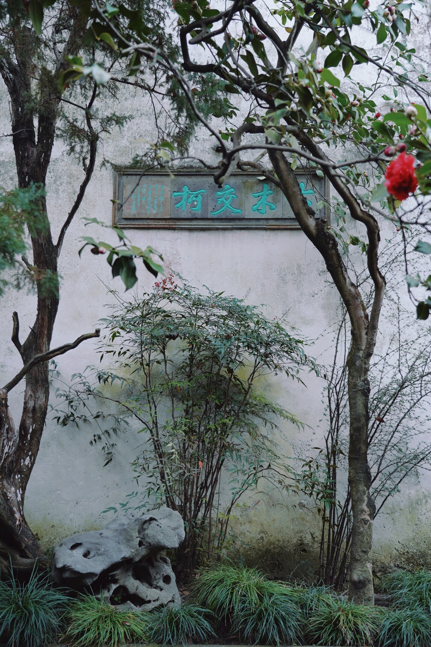 留园•古木交柯•山茶|春归正值花盛时原留园十八景之一,古柏与-美图社区-美图秀秀