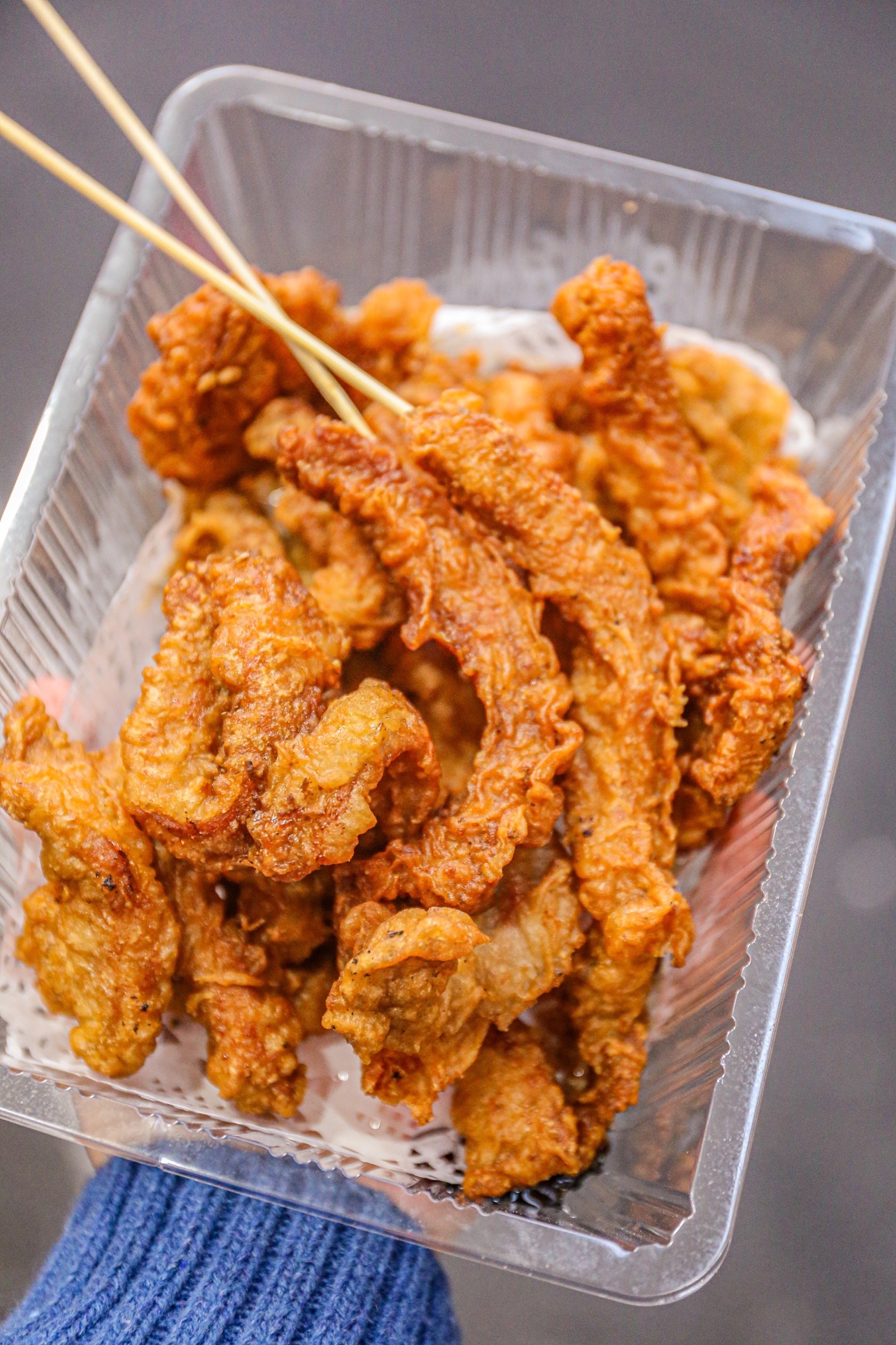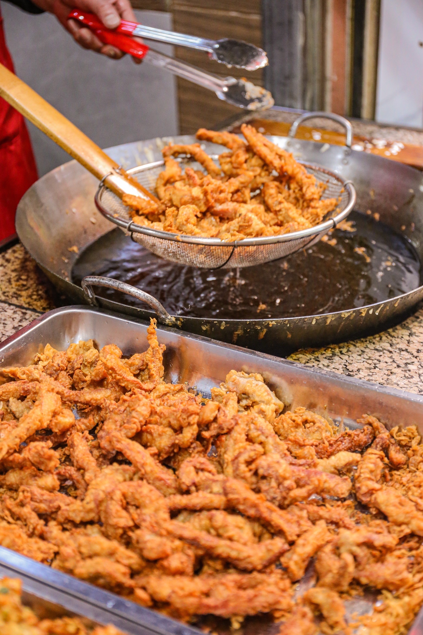 🔹炸醋肉一定是必点啦,称斤算钱,很多人专门开车过来买上一大袋子🉑️因为卖得够快,所以老板叔叔一直在现场炸新鲜的醋肉,拿到热腾腾的一盒时感觉超幸福!