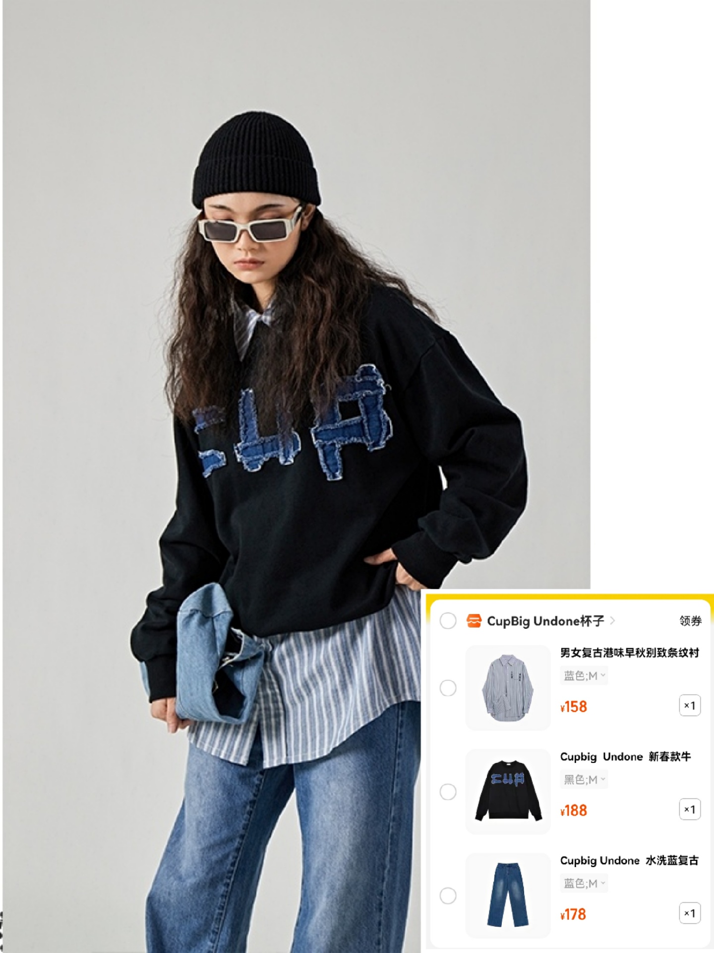 下身👖:一条简单的高腰复古蓝色百搭直筒牛仔裤 正好搭配上衣的立体印花 使整体相当的协调舒服