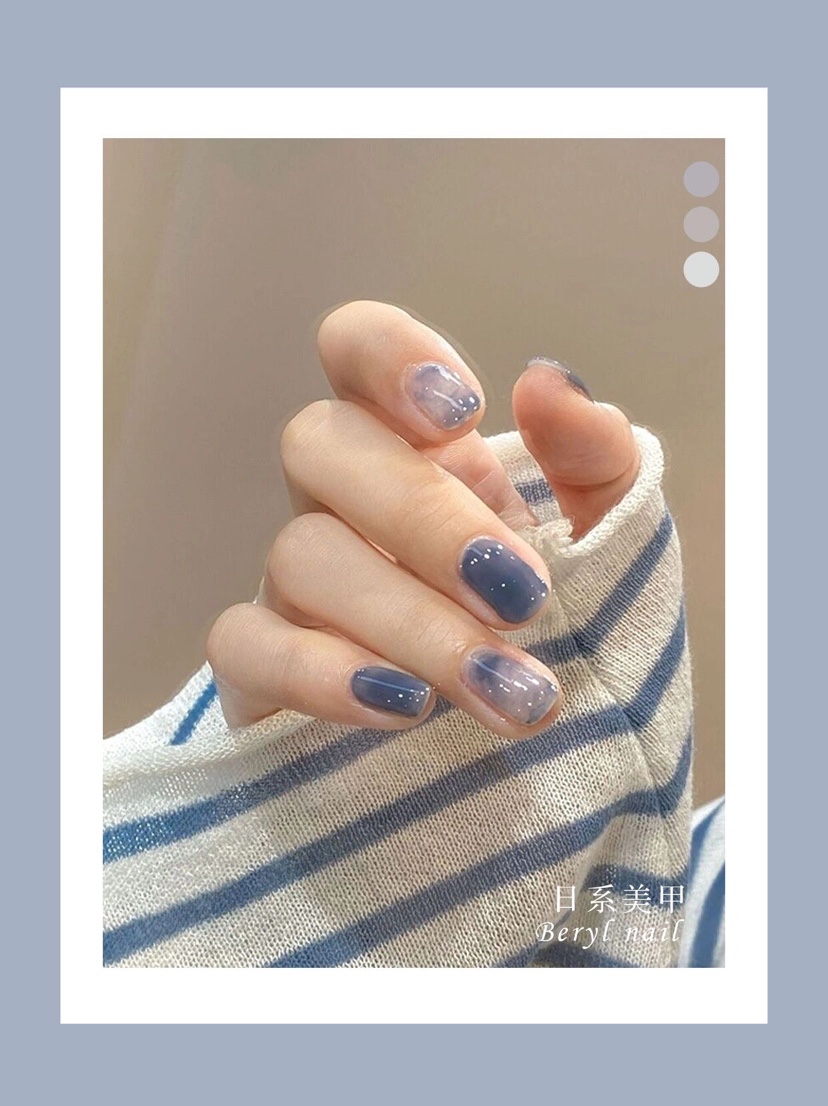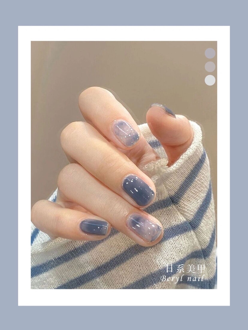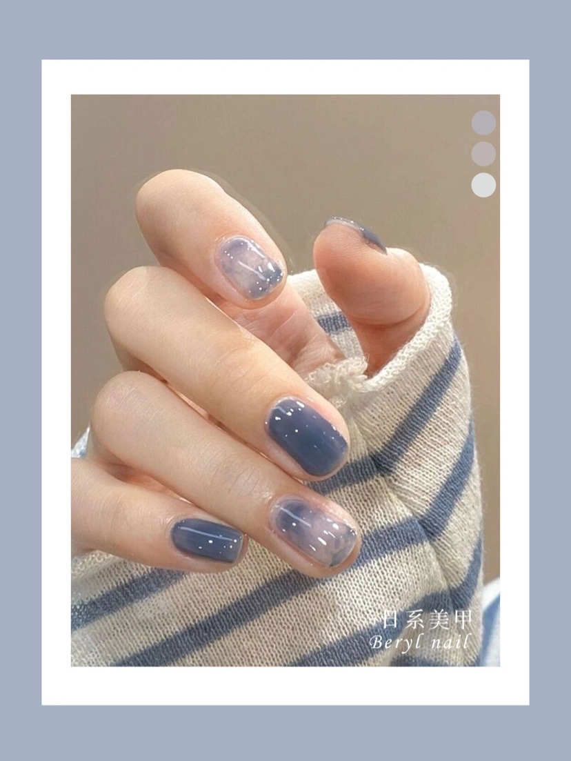 雾霾蓝晕染冰透美甲冰肌蓝色系丨雾霾蓝晕染冰透美甲