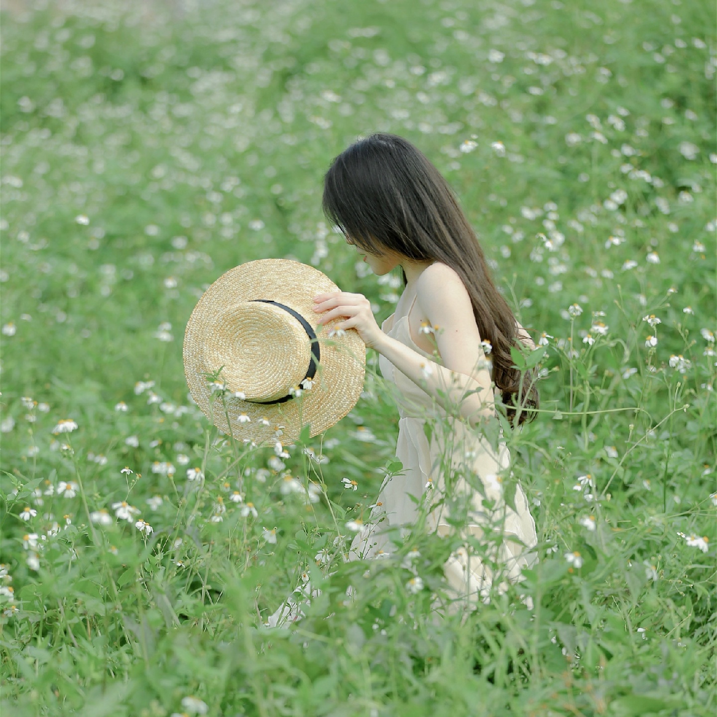 少女的裙摆和星星点点的花 ,