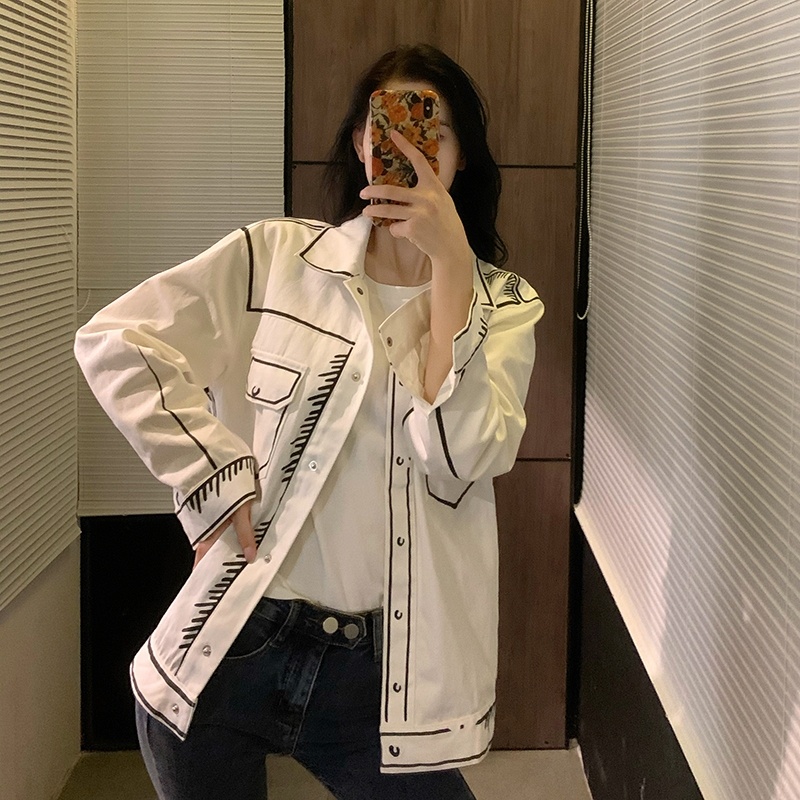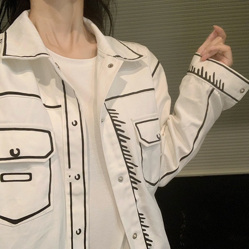 WHOS GOOD/漫画涂鸦牛仔外套2022年新款男女设计感潮ins百搭上衣
