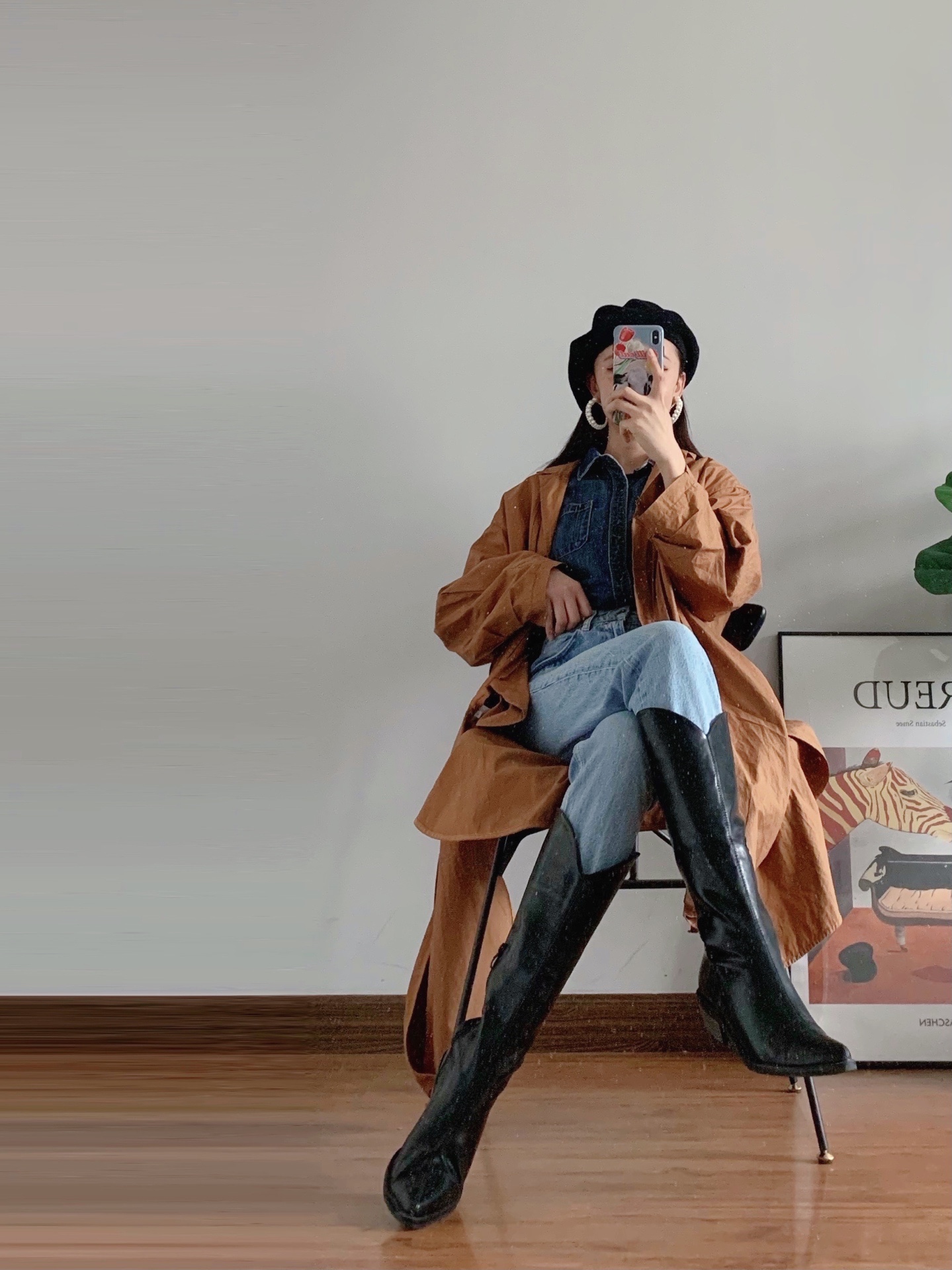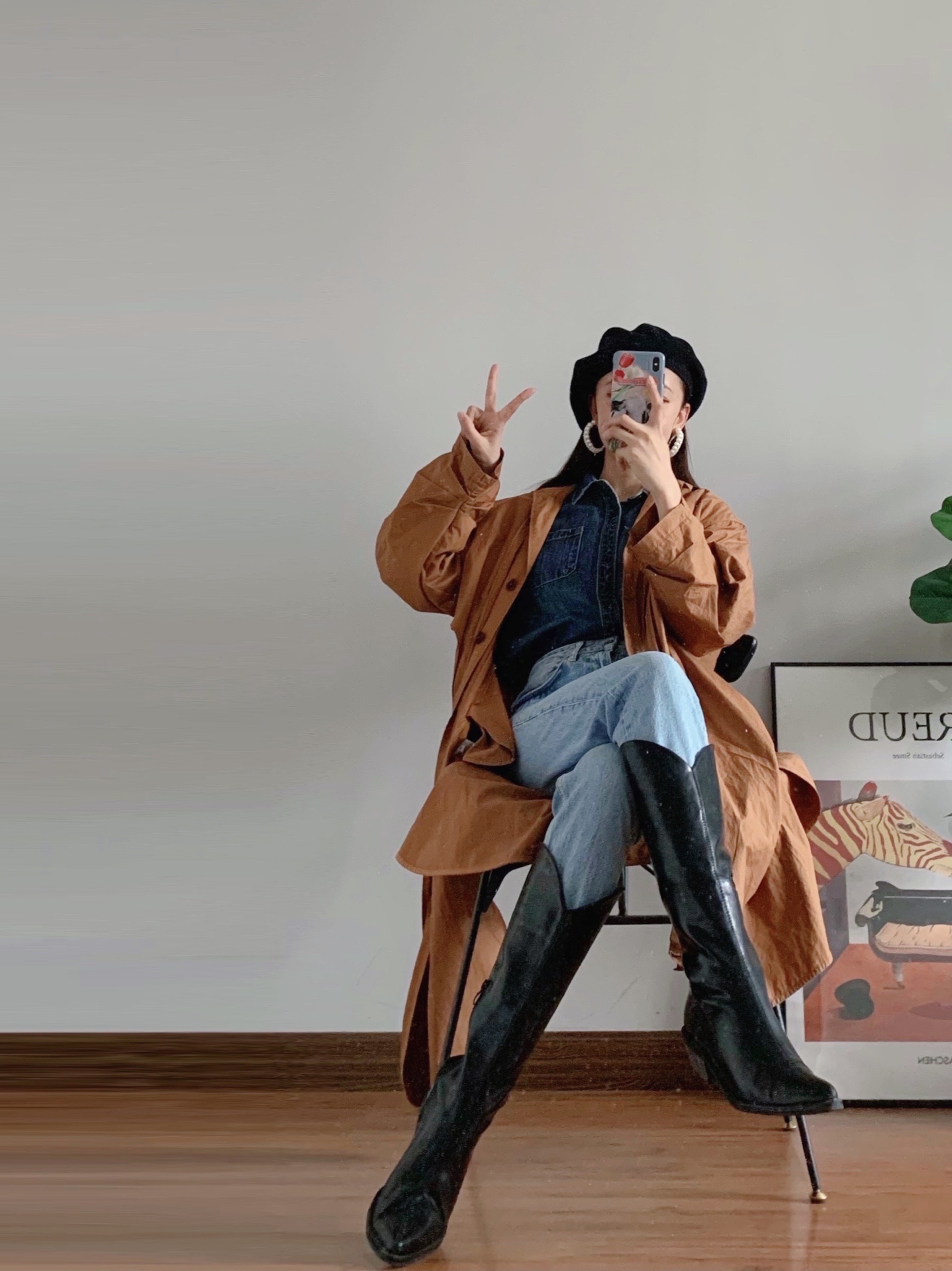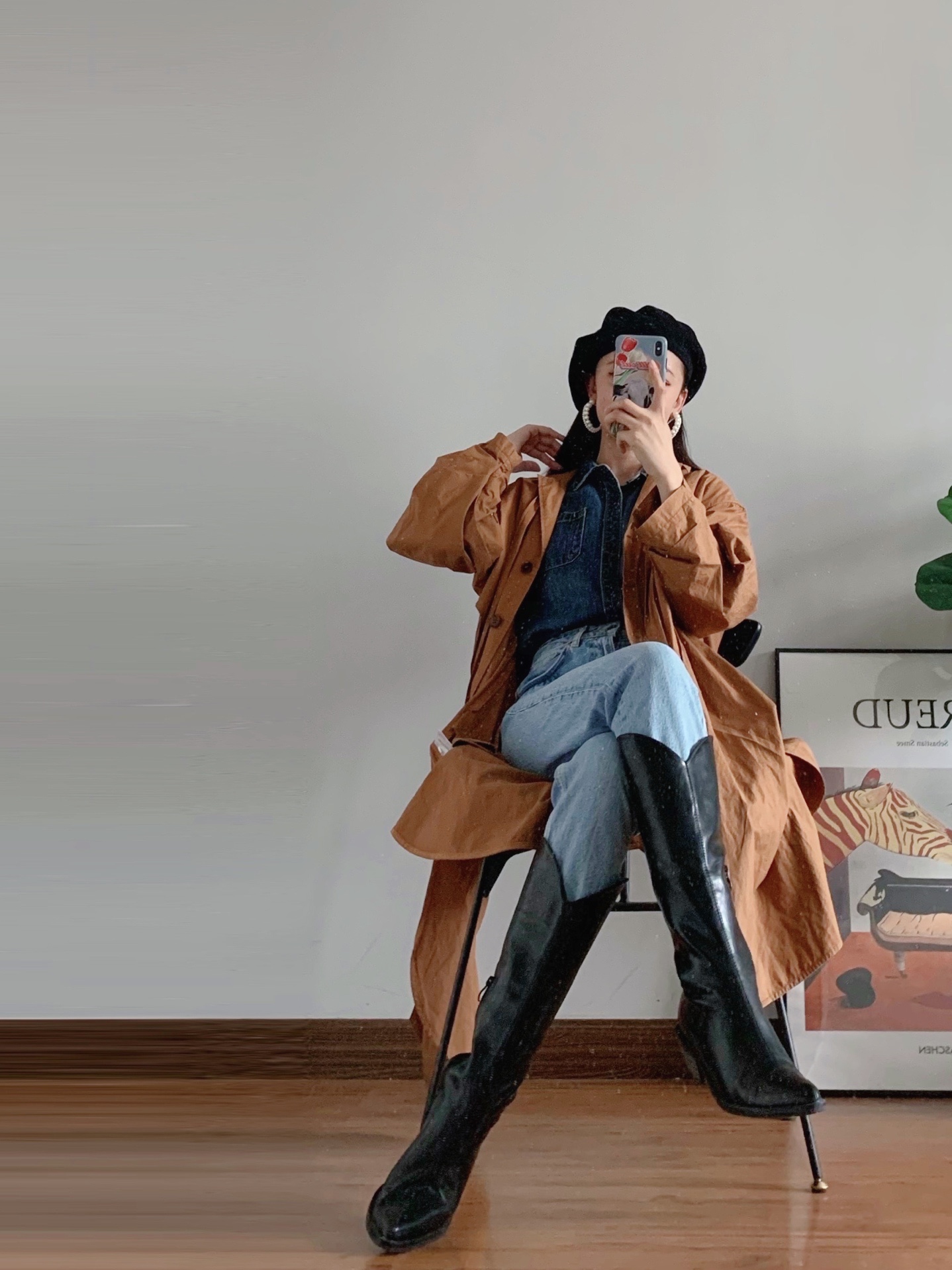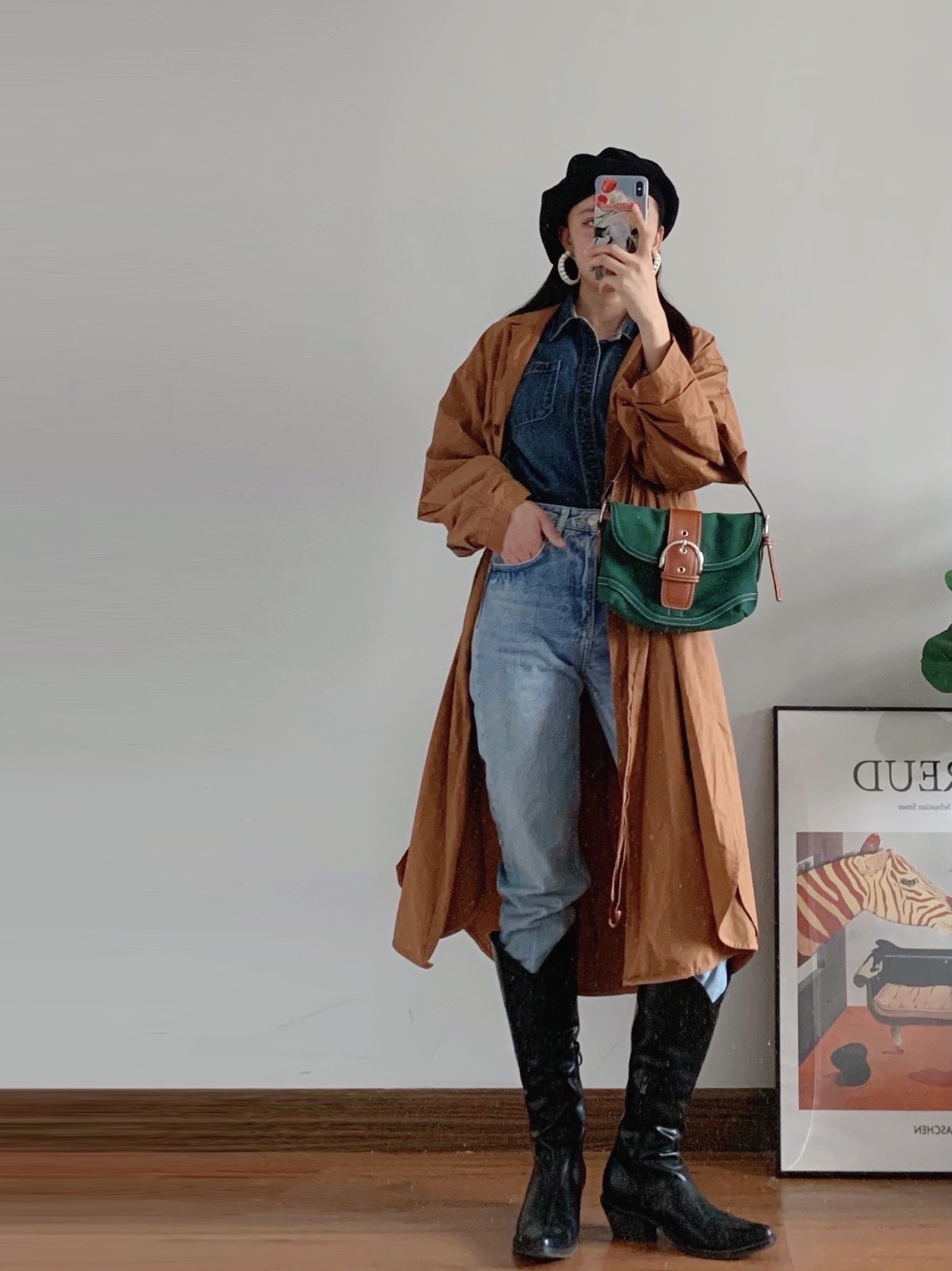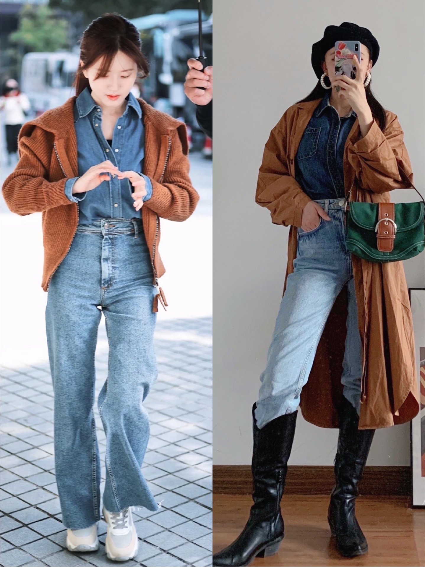 🏷️从赵露思这套Look中,我学习了她的穿搭配色,就是牛仔色系➕焦糖色系💫然后把白色运动鞋换成了牛仔靴,又搭配了复古风的贝雷帽和珍珠#元素耳饰,提升了整套搭配的复古感和层次感。