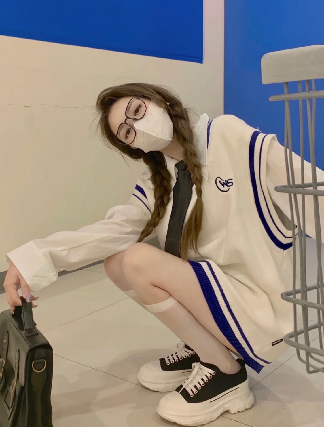 毛衫背心搭配百褶裙就是18岁的代表哦