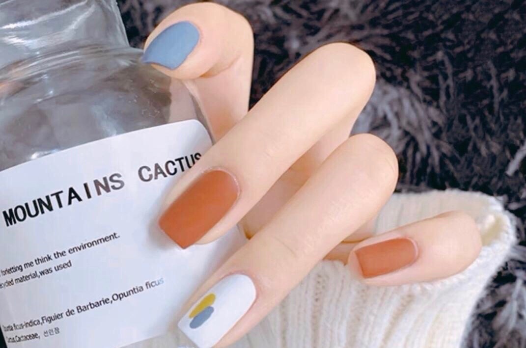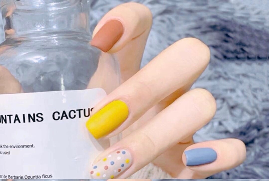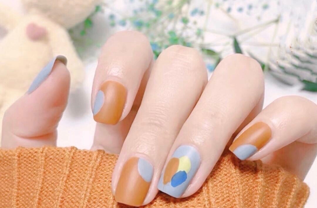 3️奶黄色💛配灰蓝色,很喜欢无名指那个色彩波点的装饰