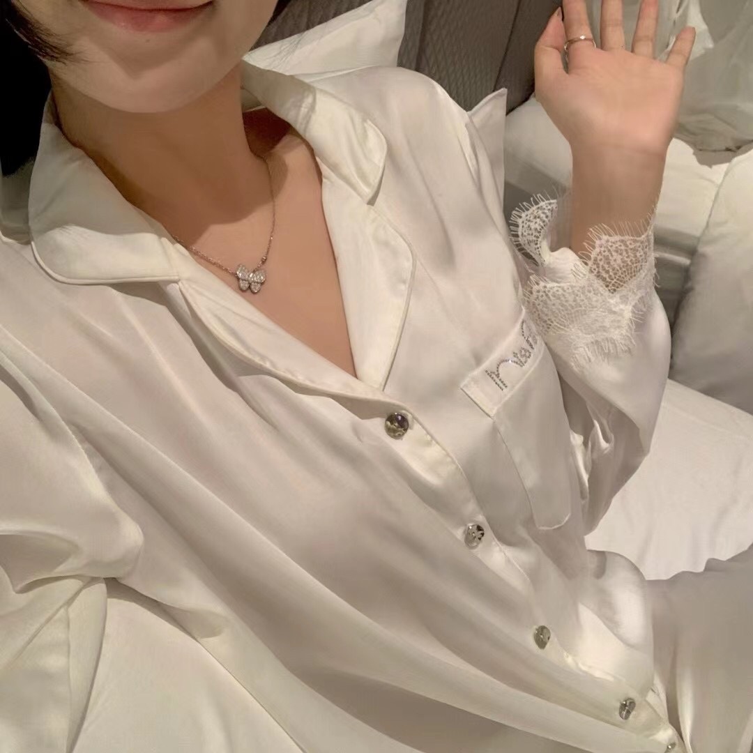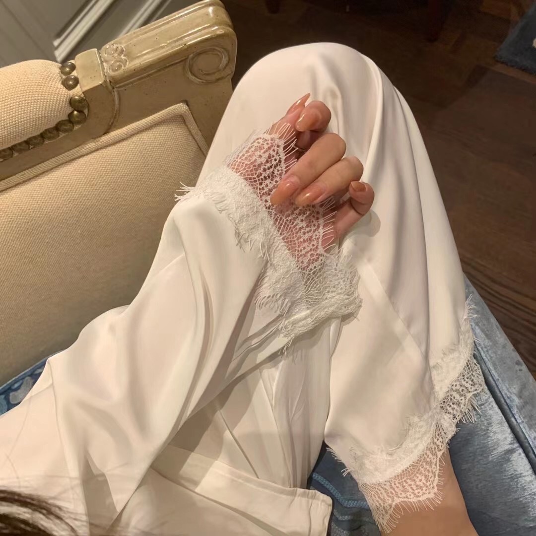 柔光温柔本柔家居服睡衣,牛奶丝面料,袖口裤脚蕾丝搭配,更显小女人气息,今天也是温柔小姐姐吖!@MT情报局