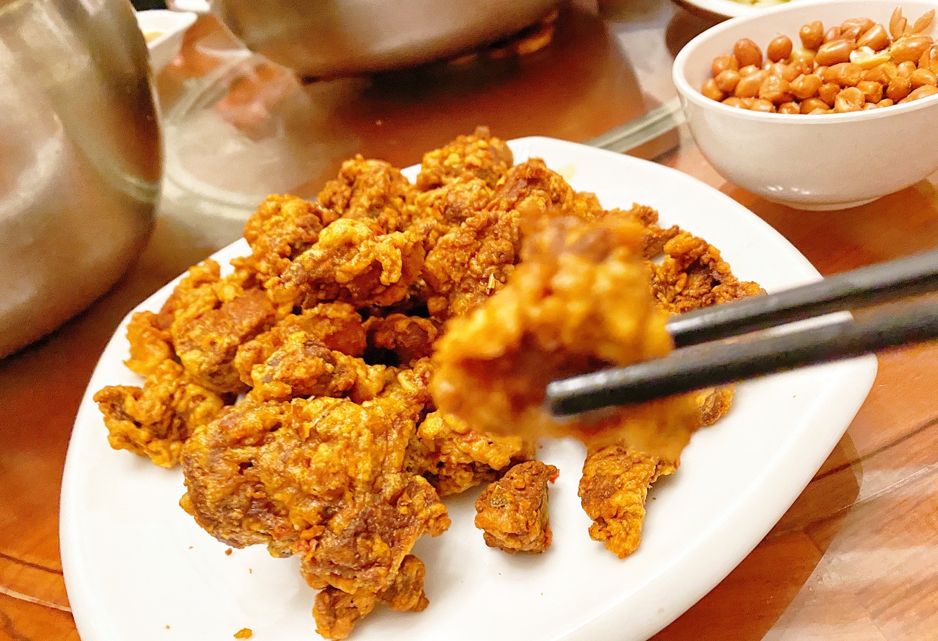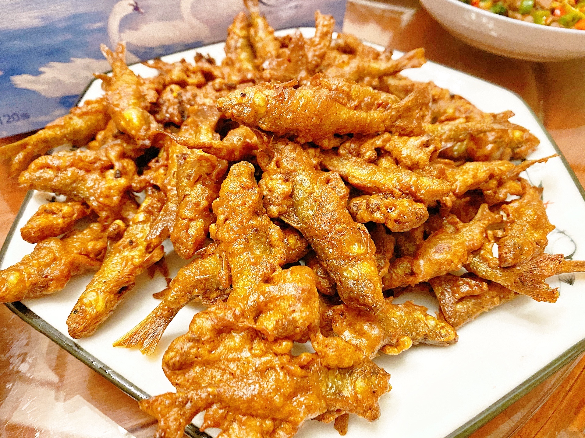 朋友自己做的干炸小河鱼 干炸小酥肉 炸地瓜 味道响当当的了