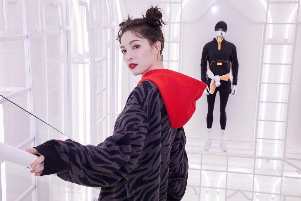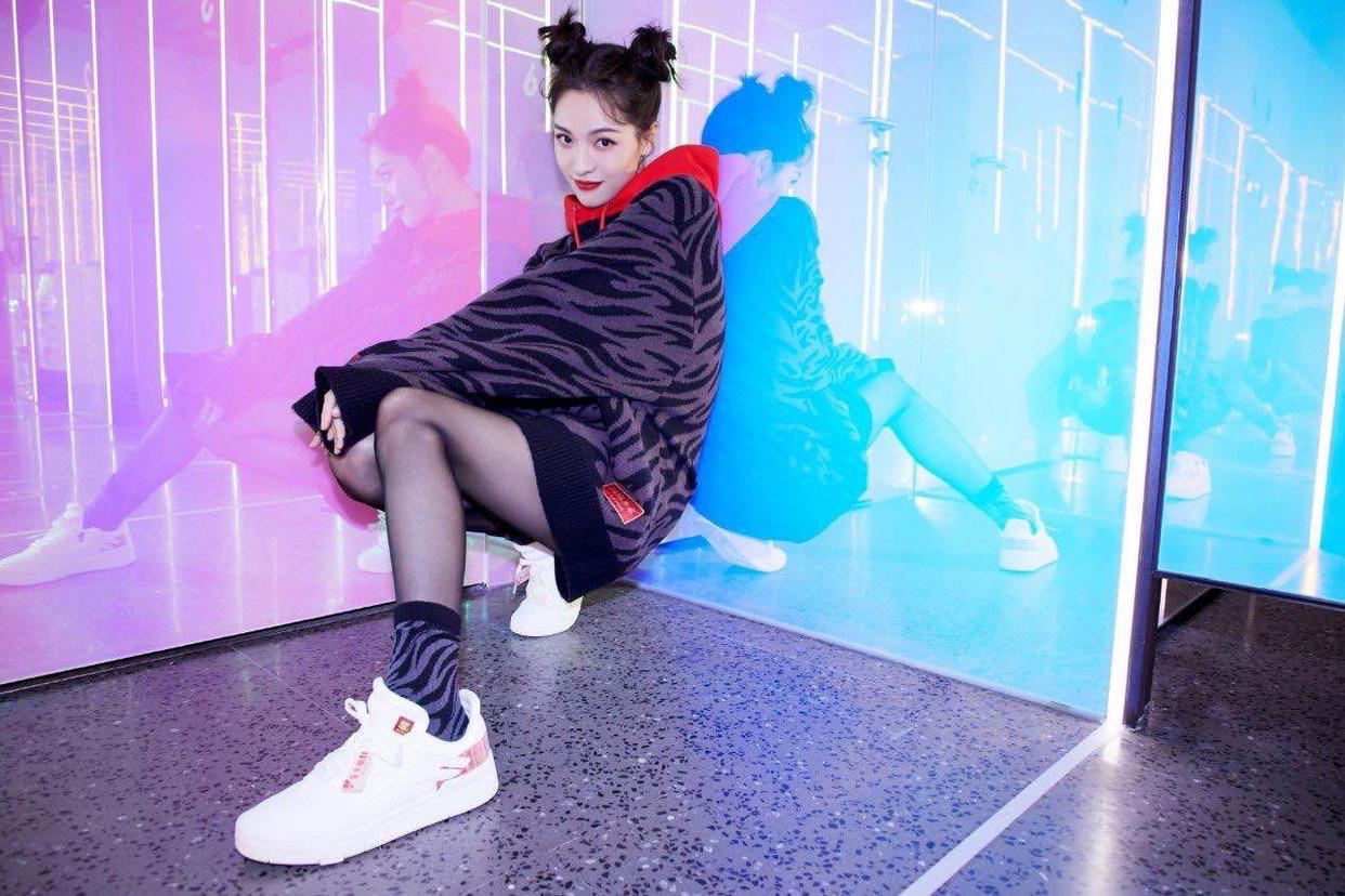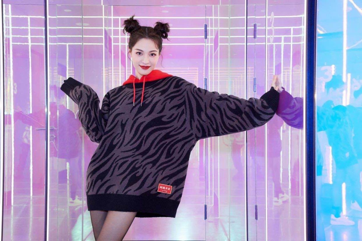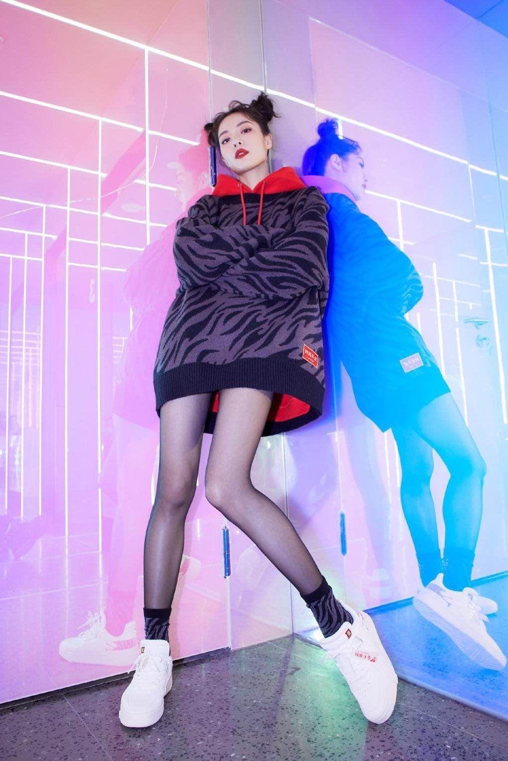 钟楚曦这身穿搭是使用卫衣搭配丝袜、小白鞋打造的,宽松的卫衣将上半身缺点遮挡起来,利用丝袜的修身效果让腿部看上去显得更加纤细。