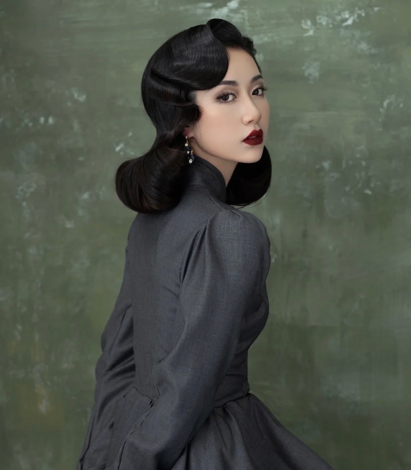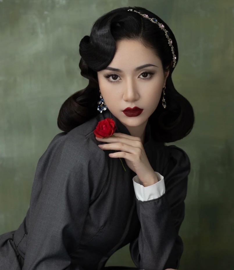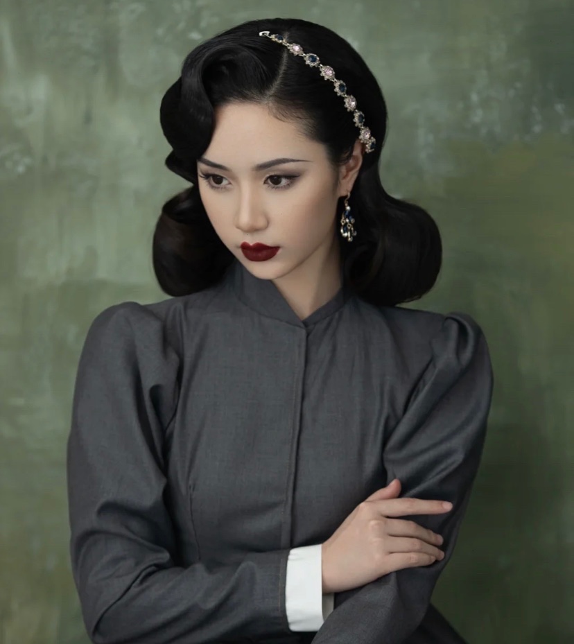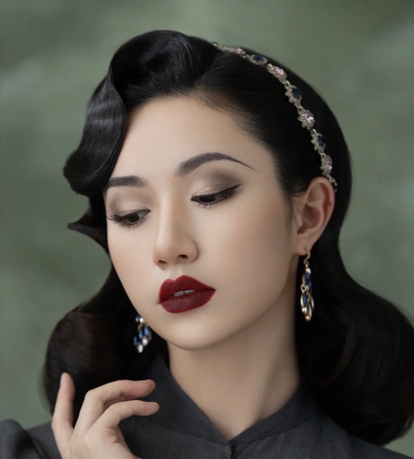 很多人拍写真,会选择复古风格,浓妆改变容貌比较大,复古M唇,冷艳高贵气质优雅大方,眼影用强调法突出眼睛深邃立体,随意的手推又不显过分成熟,完美的下颌线,