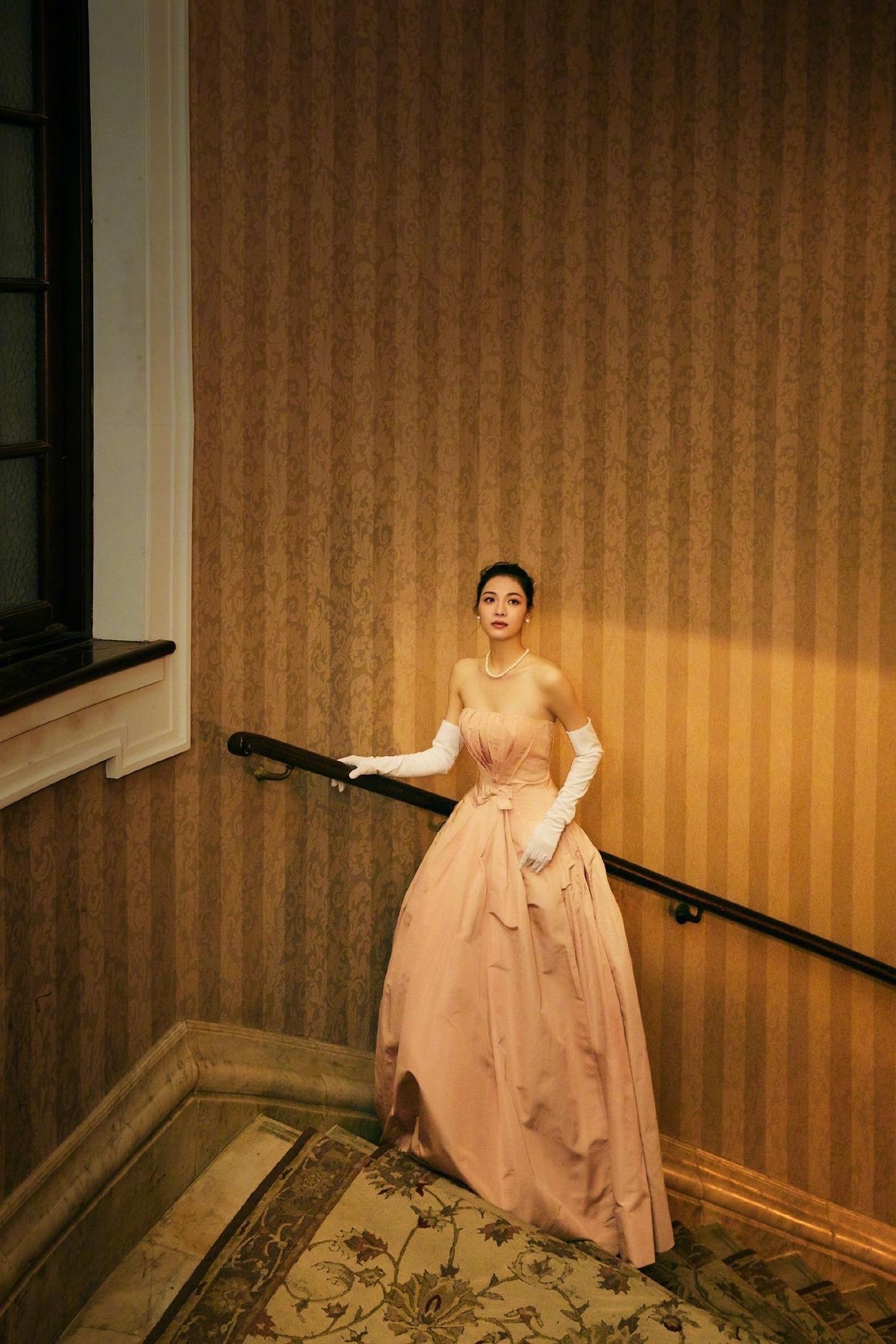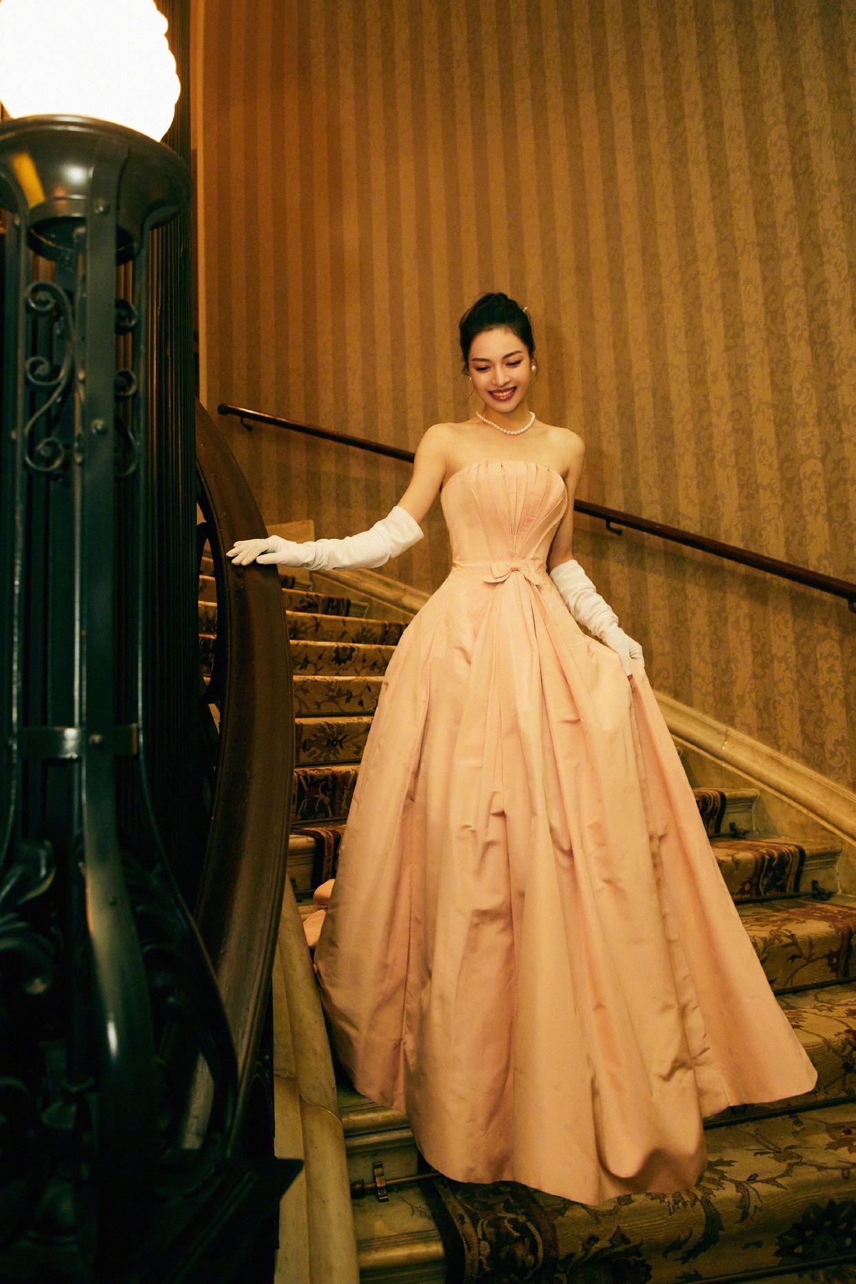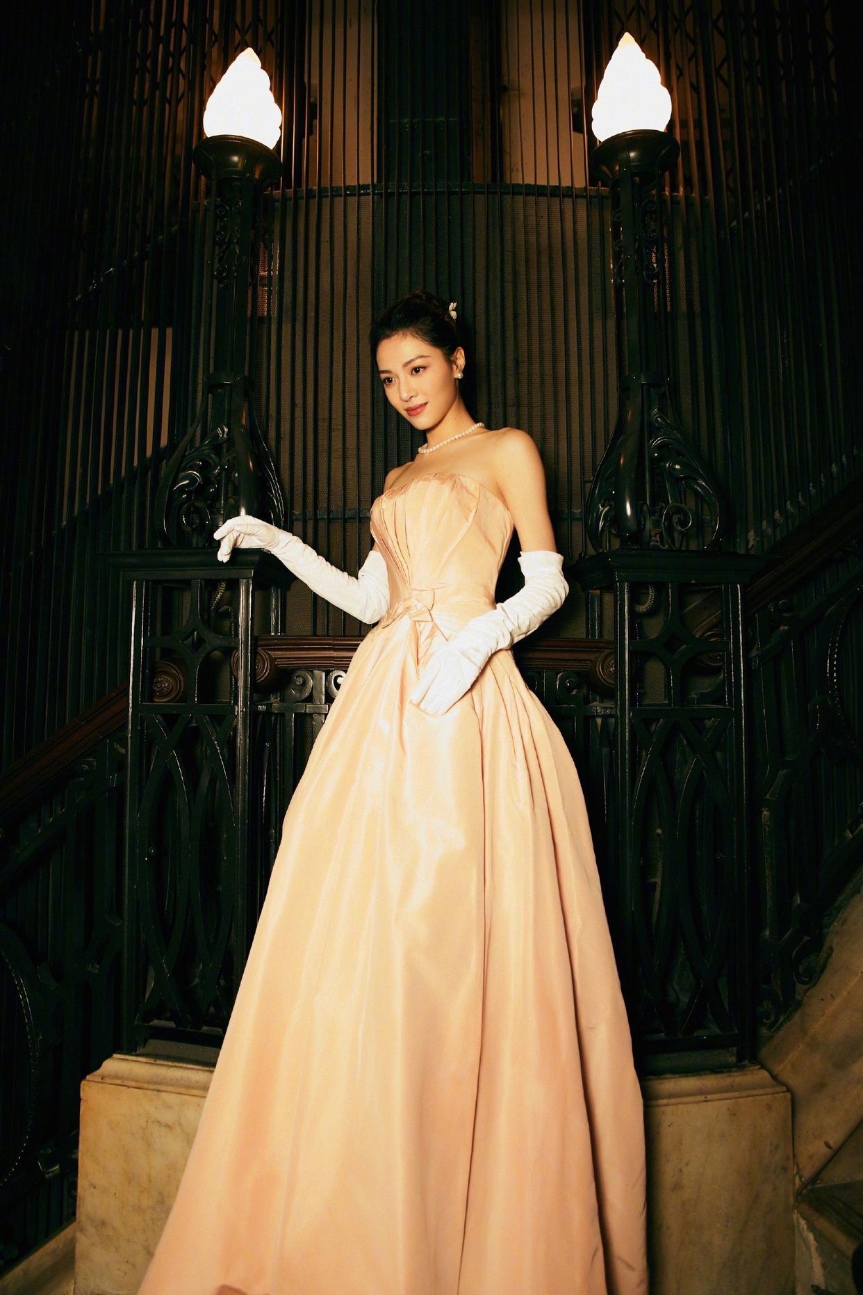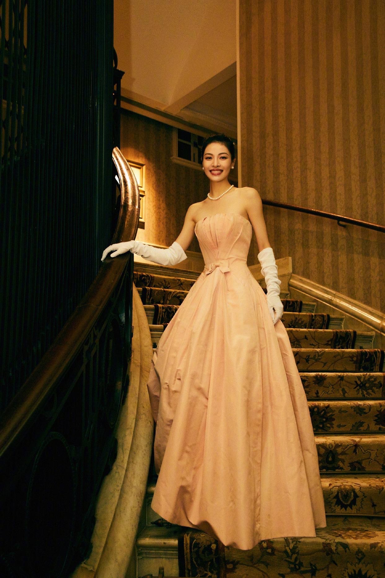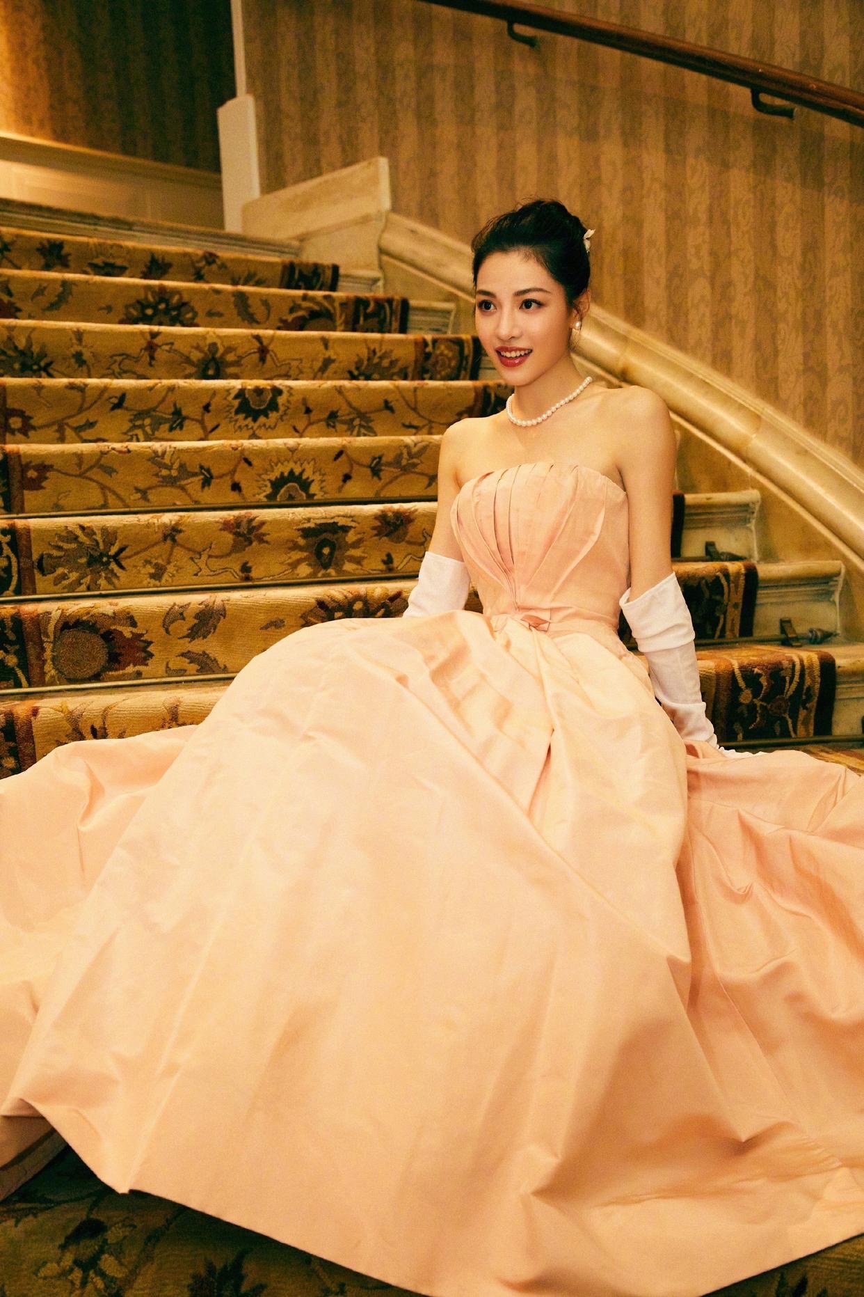 钟楚曦身穿抹胸粉色公主裙梦幻浪漫 ,高盘发搭珍珠项链精致贵气。钟楚曦有着先天优良的基因,再加上后天的保养锻炼,所以她的直角肩线条堪称一绝,穿上这件抹胸礼服后,更是以优雅的仪态而惊艳全场。