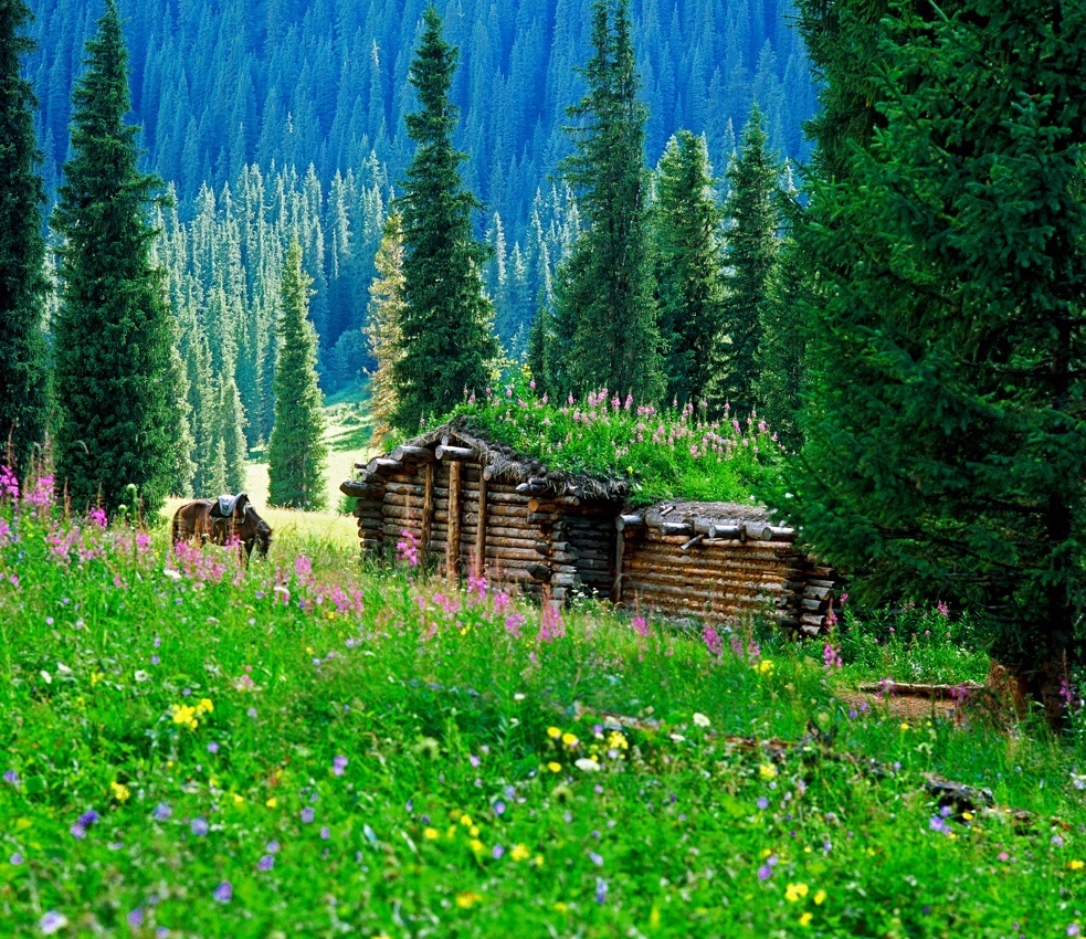 第二张:高山牧场。 新疆特克斯县喀拉峻高山牧场。