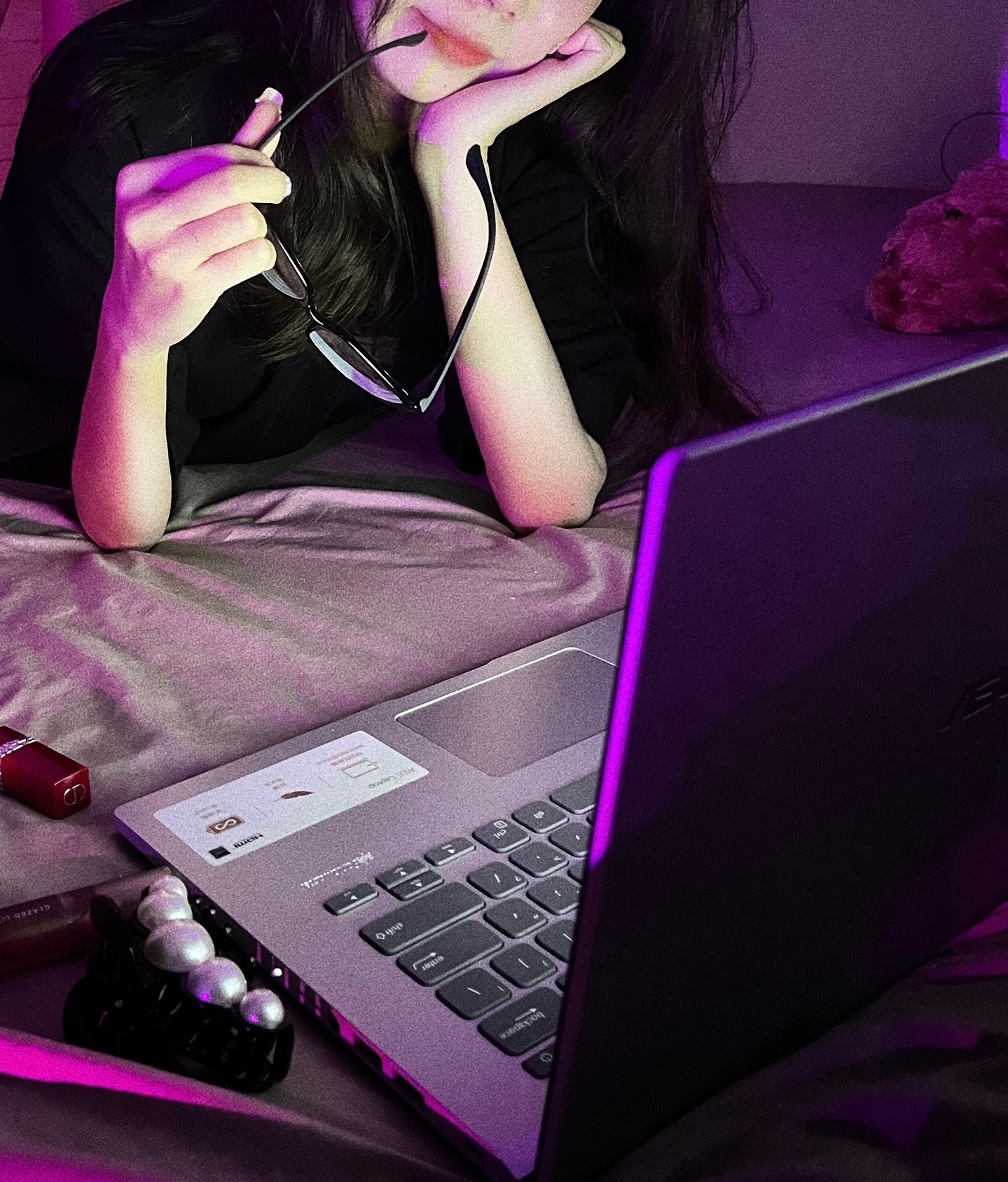 灯光摆置:电脑对着脸正前方,亮度最好调到最高,不然太暗了面部不清晰,不好后期~前面打上补光灯