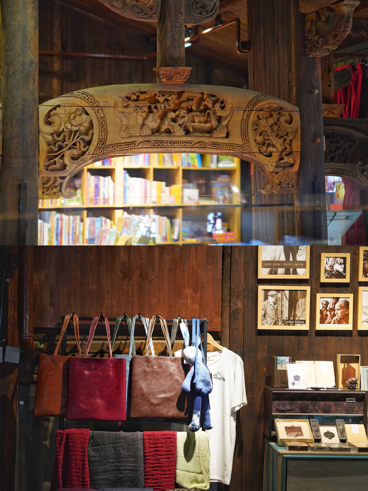 📖骏惠书屋作为先锋书店的第13家分店,又以传承文化的身份在百年前安徽学子求学应试的地方重生,它用自己浸润书香的脊梁,再次架起了当代的文化空间。三进庭院二层典型徽派古建,马头墙峭立于外,高大的树影投射在白墙上,北门的大规模精细繁复木雕令人惊叹,里里外外每一寸徽州三雕都有其历史渊源和故事。