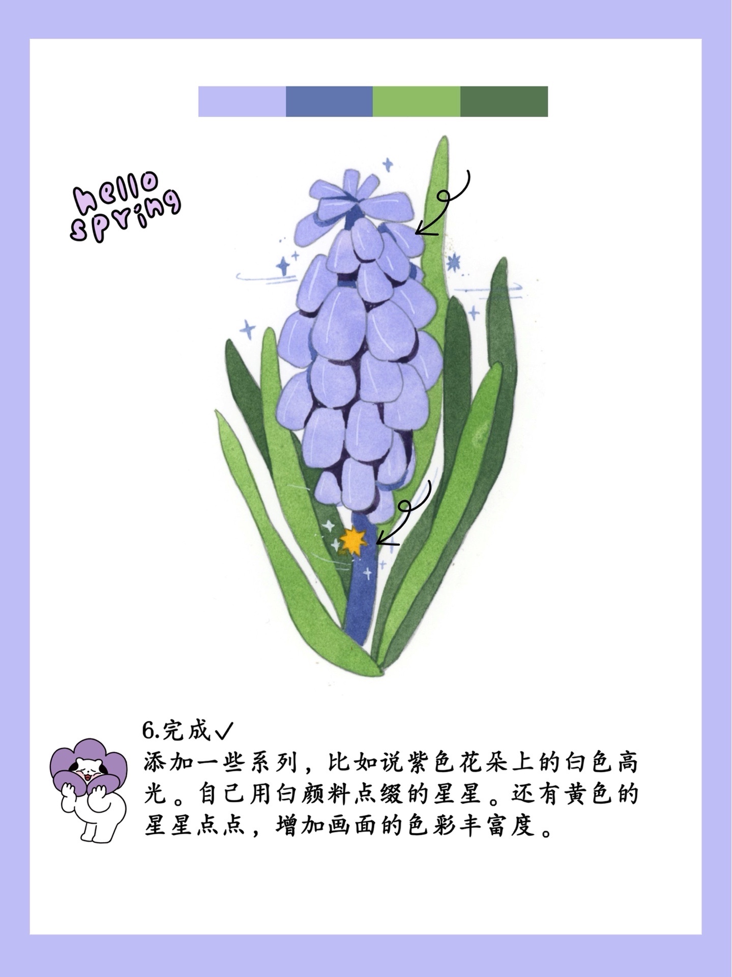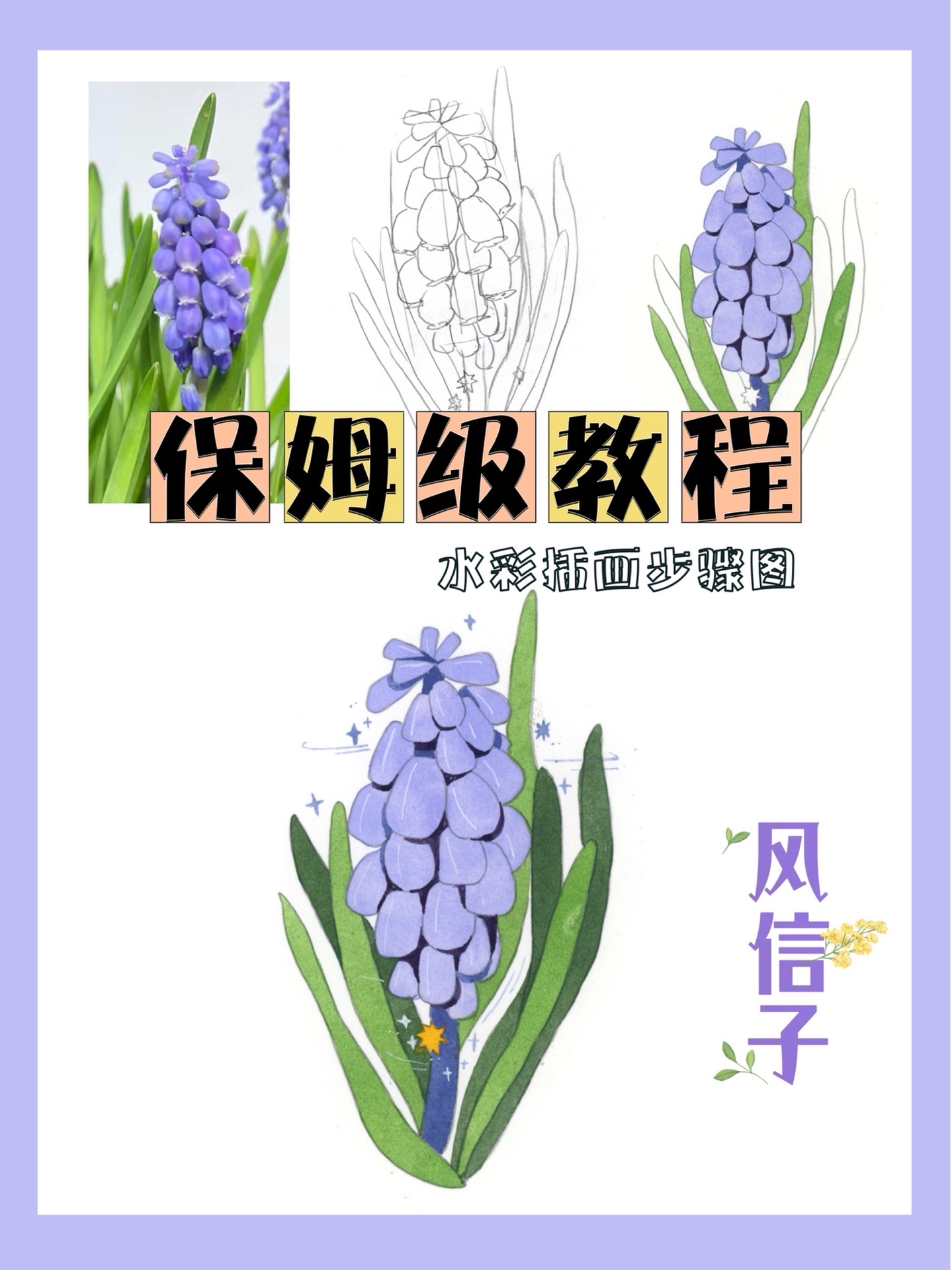 水彩植物教程🌱原创插画|风信子|附过程图-美图社区-美图秀秀