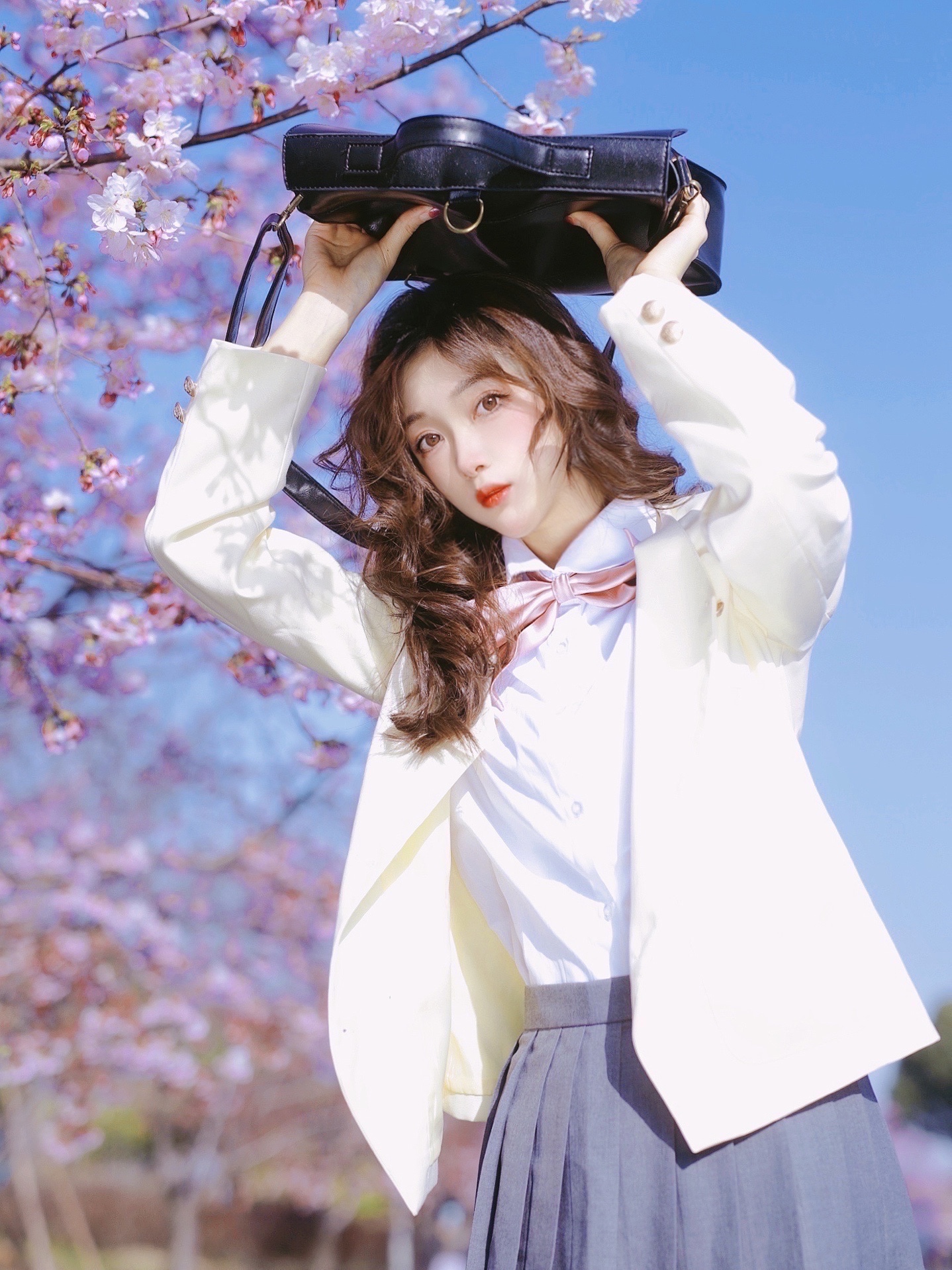 春日和🌸拍照的好用姿势①歪头摸脸 ②顶着包包看镜头 ③拿一本📖/🎻看向远处