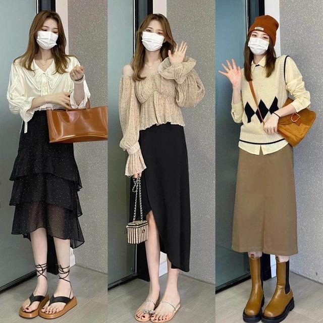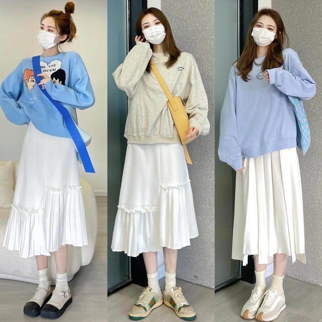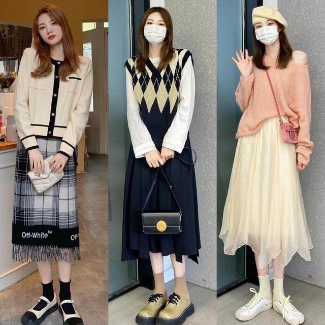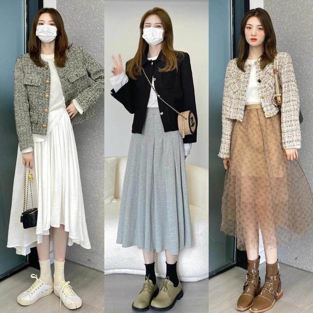 与裙子与高跟鞋的搭配相比,这种搭配不仅普通日常,而且适用人群范围比较广,这就是裙子+平底鞋穿法的最大优势。