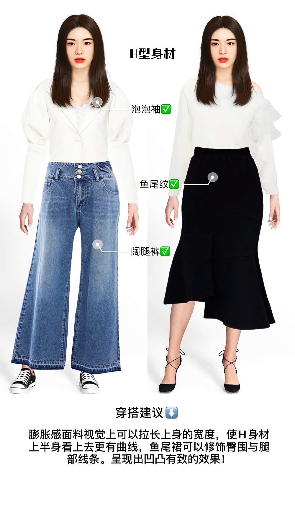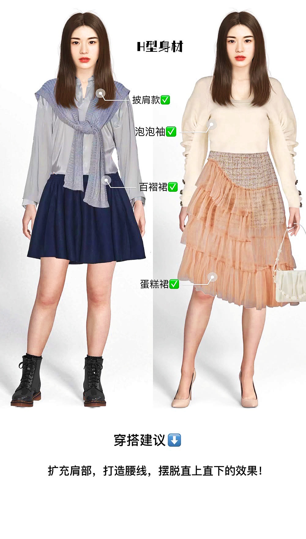 4⃣泡泡袖扩展肩线,高腰裙和高腰阔腿裤凸显腰