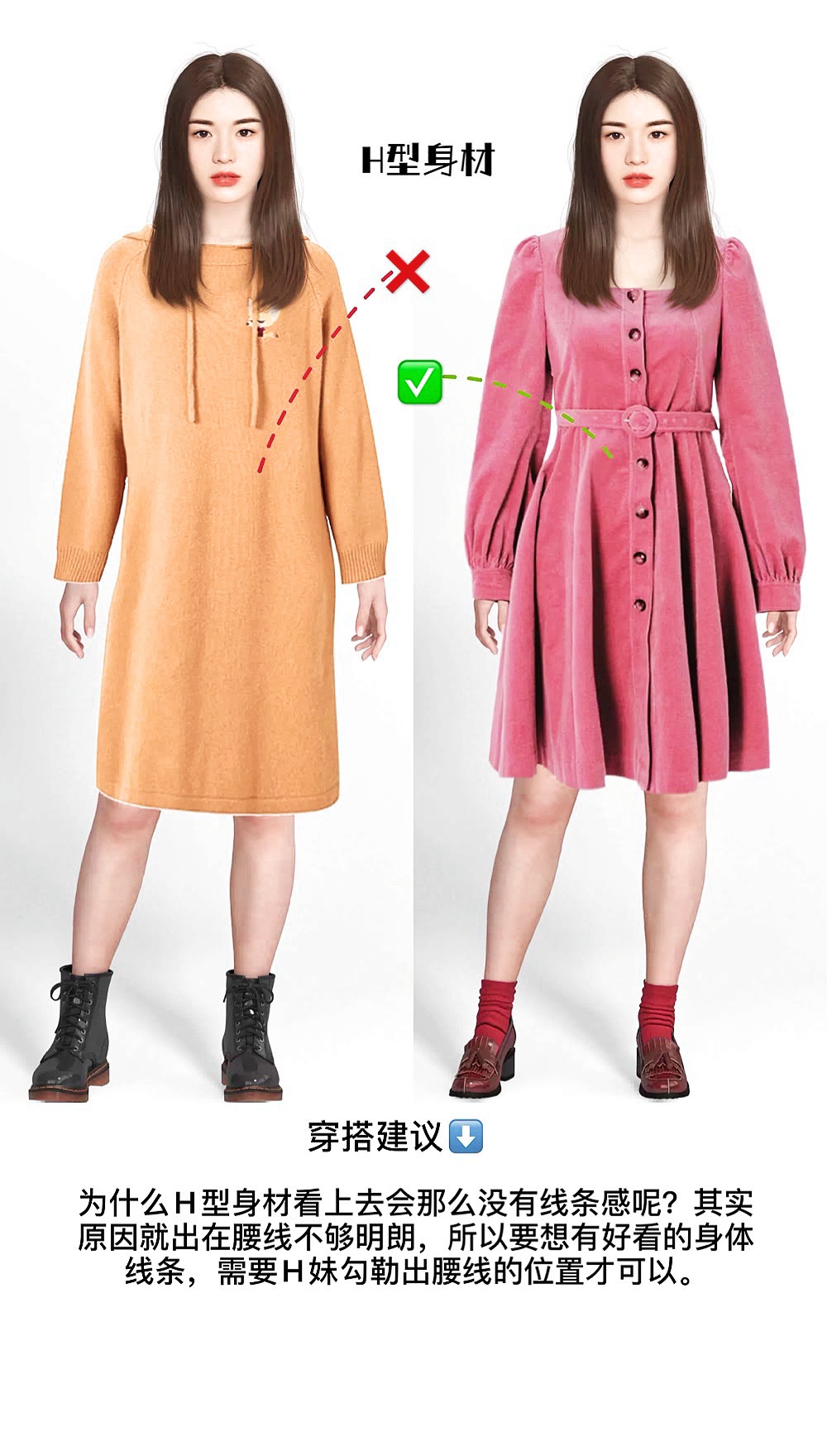 3⃣减弱身体线条的垂直感,变得柔和又显腰瘦。就要利用收腰款的优势优让腰部两边往里收缩,深色腰带是不错的选择两头视觉上减弱身体线条的垂直感,变得柔和又显腰瘦
