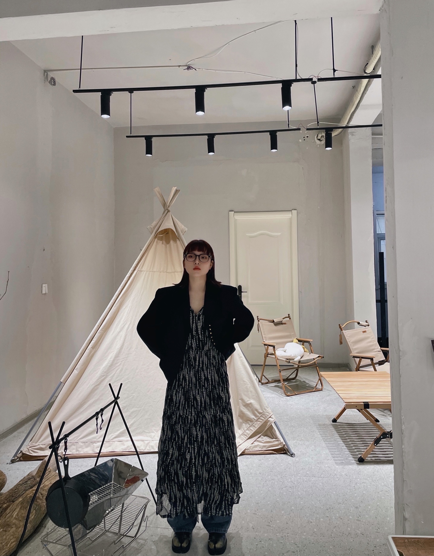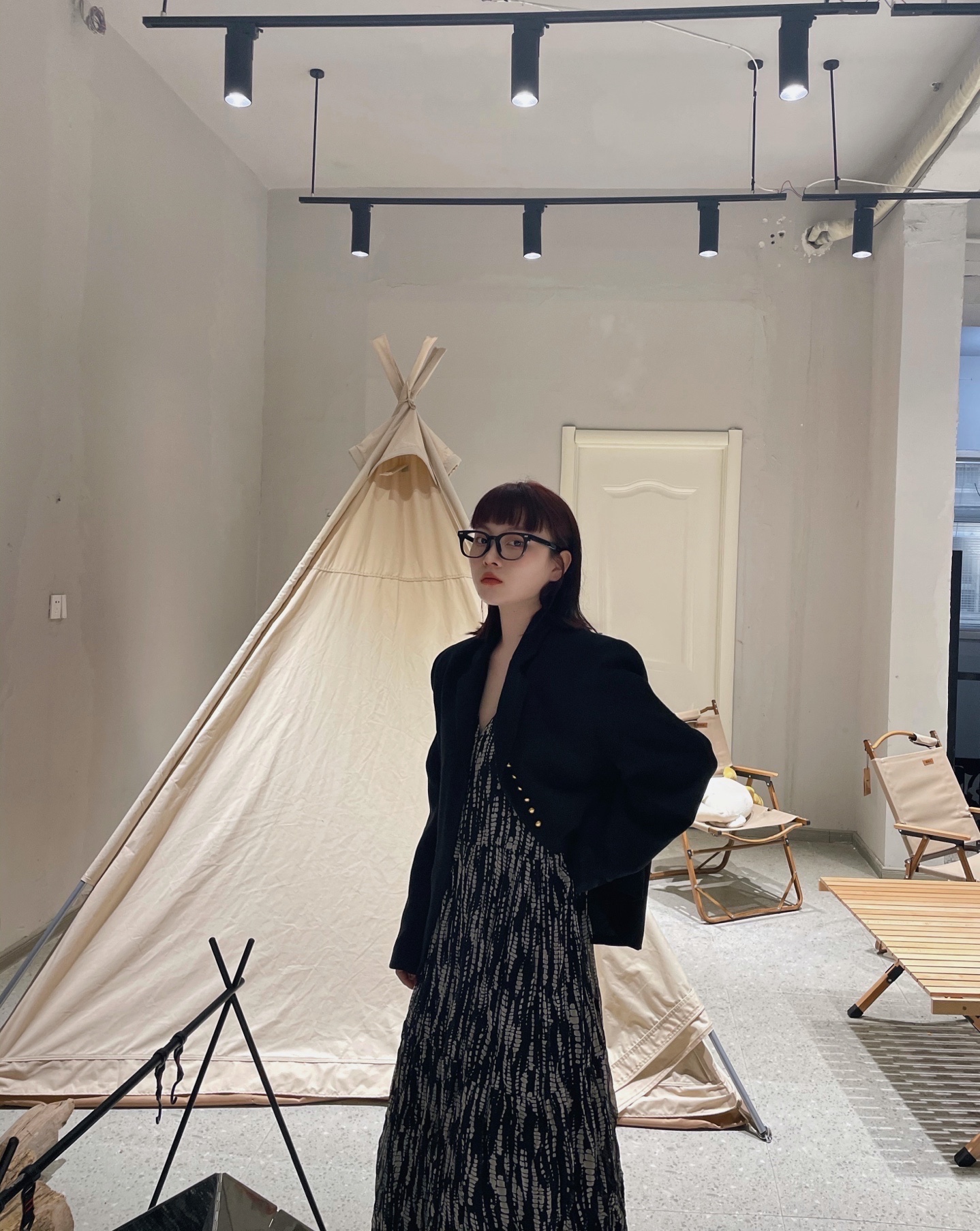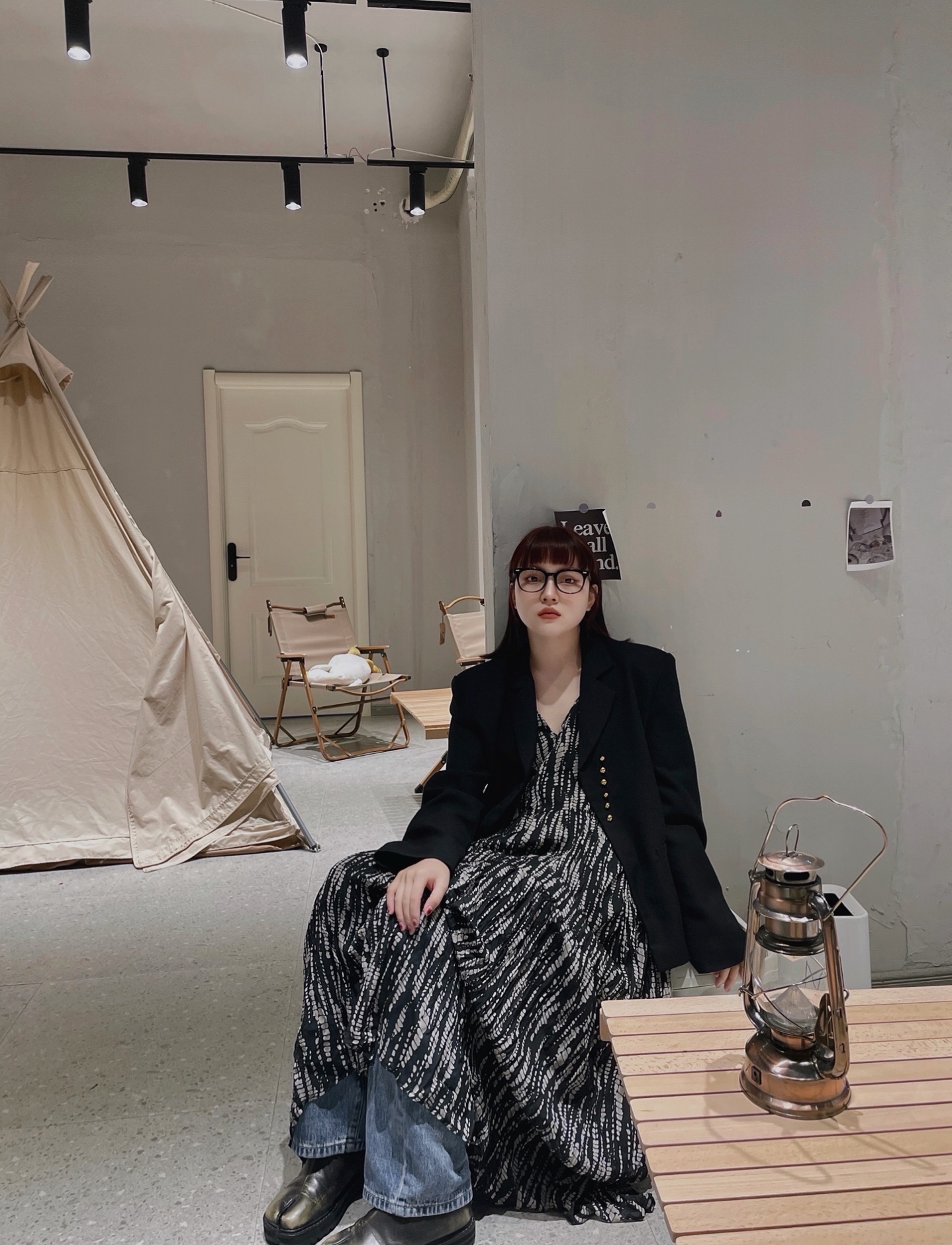 黑西装➕吊带裙➕牛仔裤