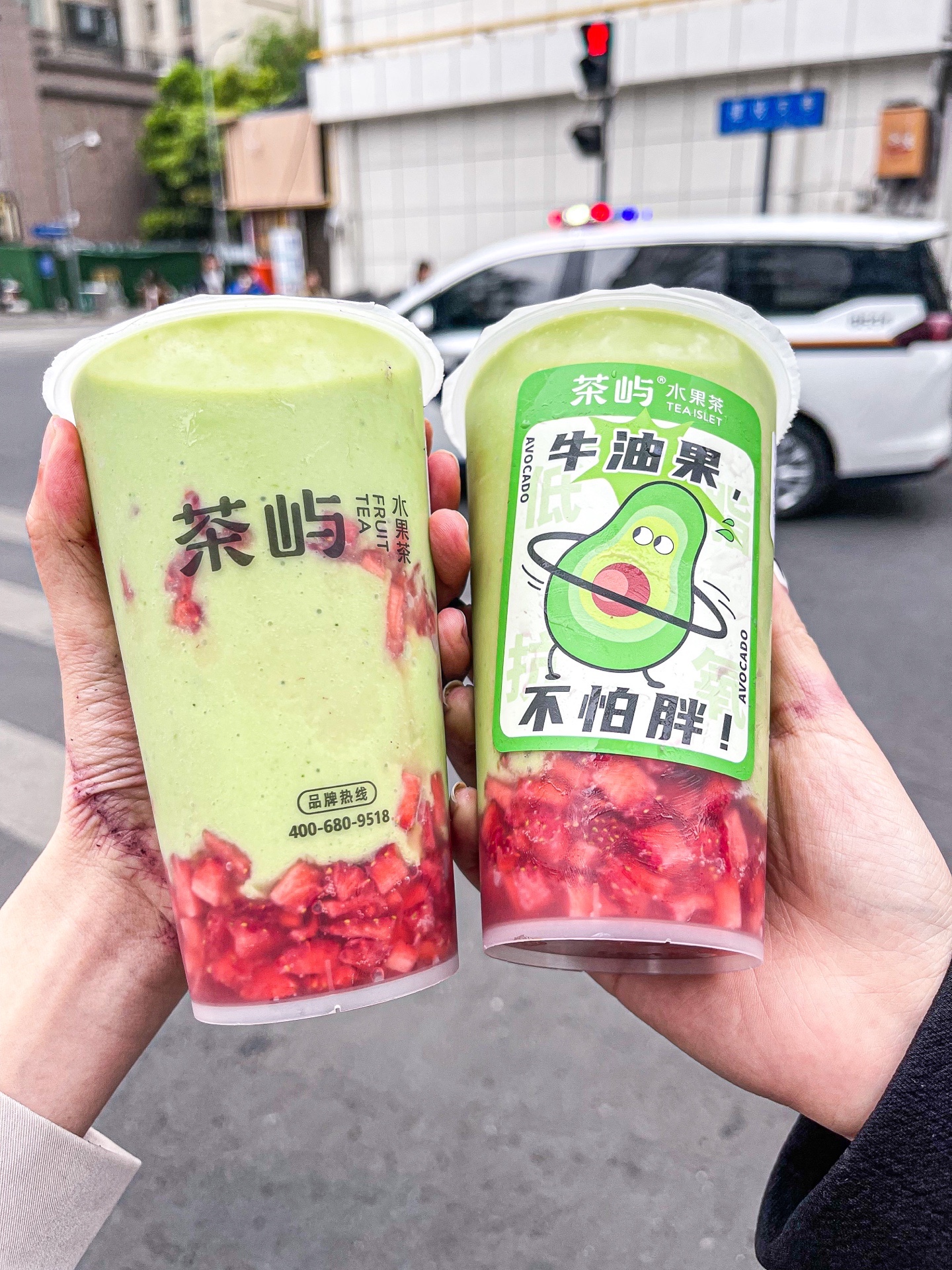 💕不想吃冰淇淋的集美们可以点一杯它们家的【牛油果草莓甘露】,牛油果和新鲜羽衣甘蓝打成的冰沙,喝起来满满的牛油果味儿,搭配底部的草莓果肉,超冰爽~