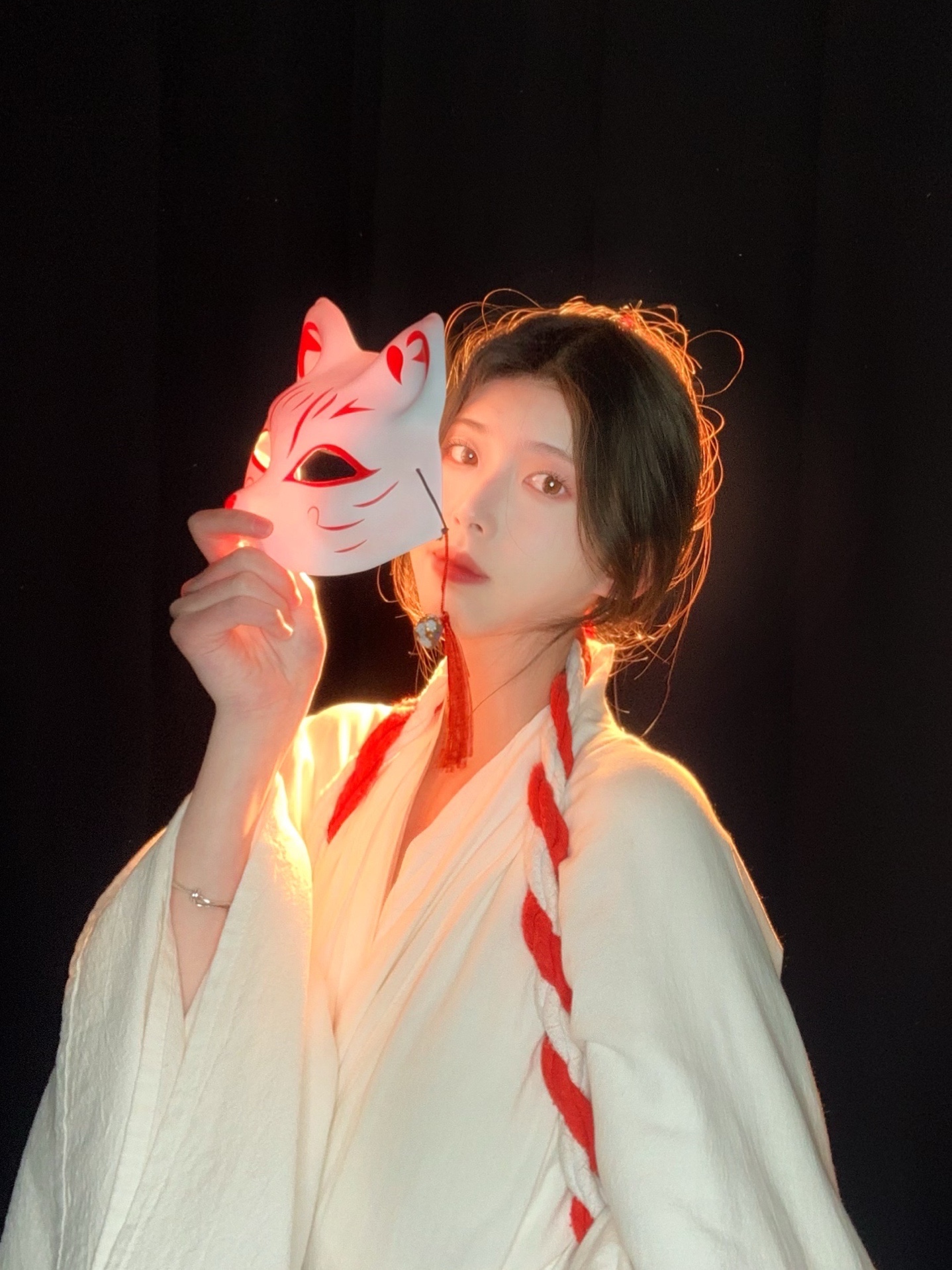 前面放一盏冷调灯 平行于脸 后面一盏暖调灯 调好高度人要完全挡住灯