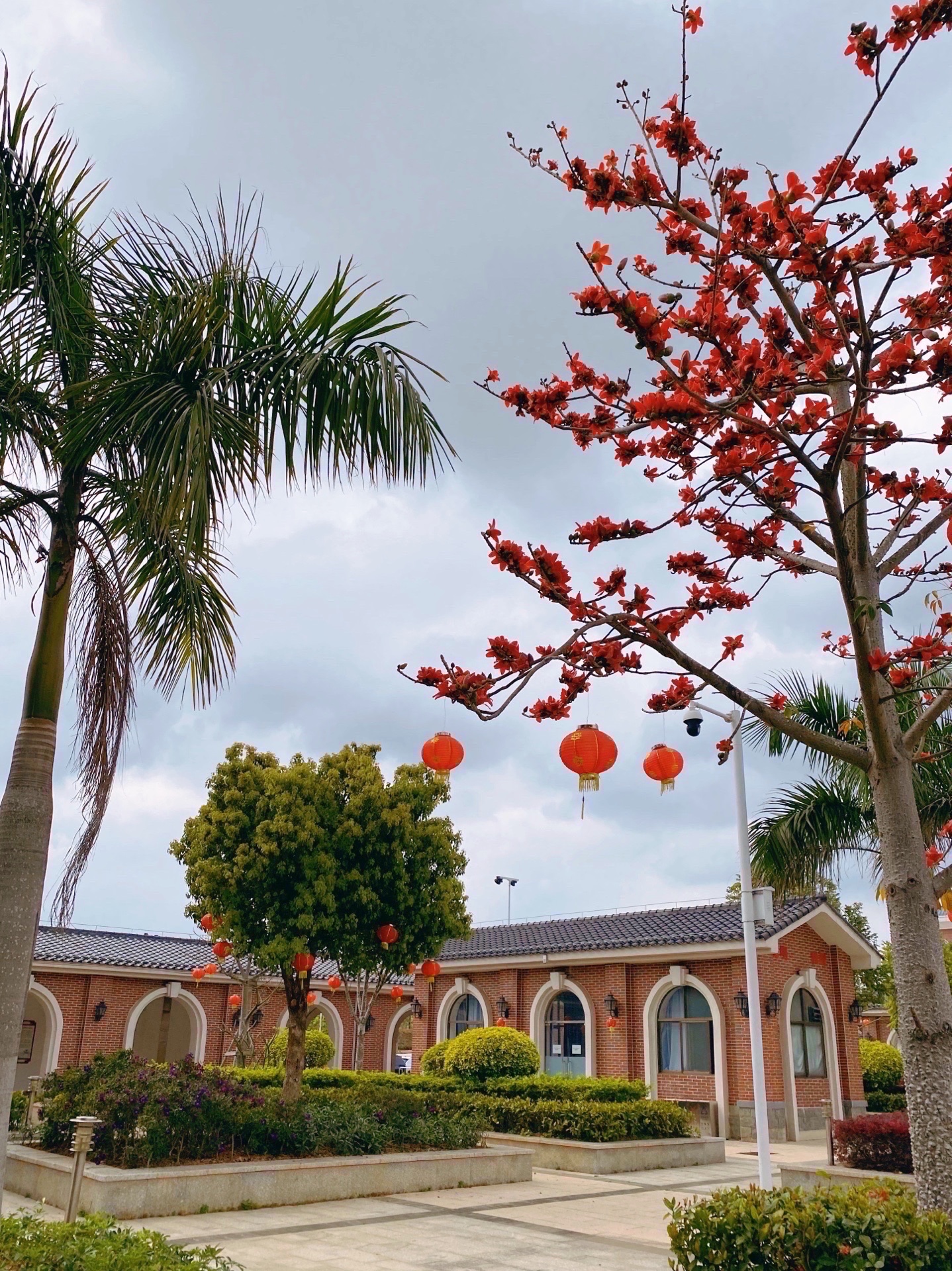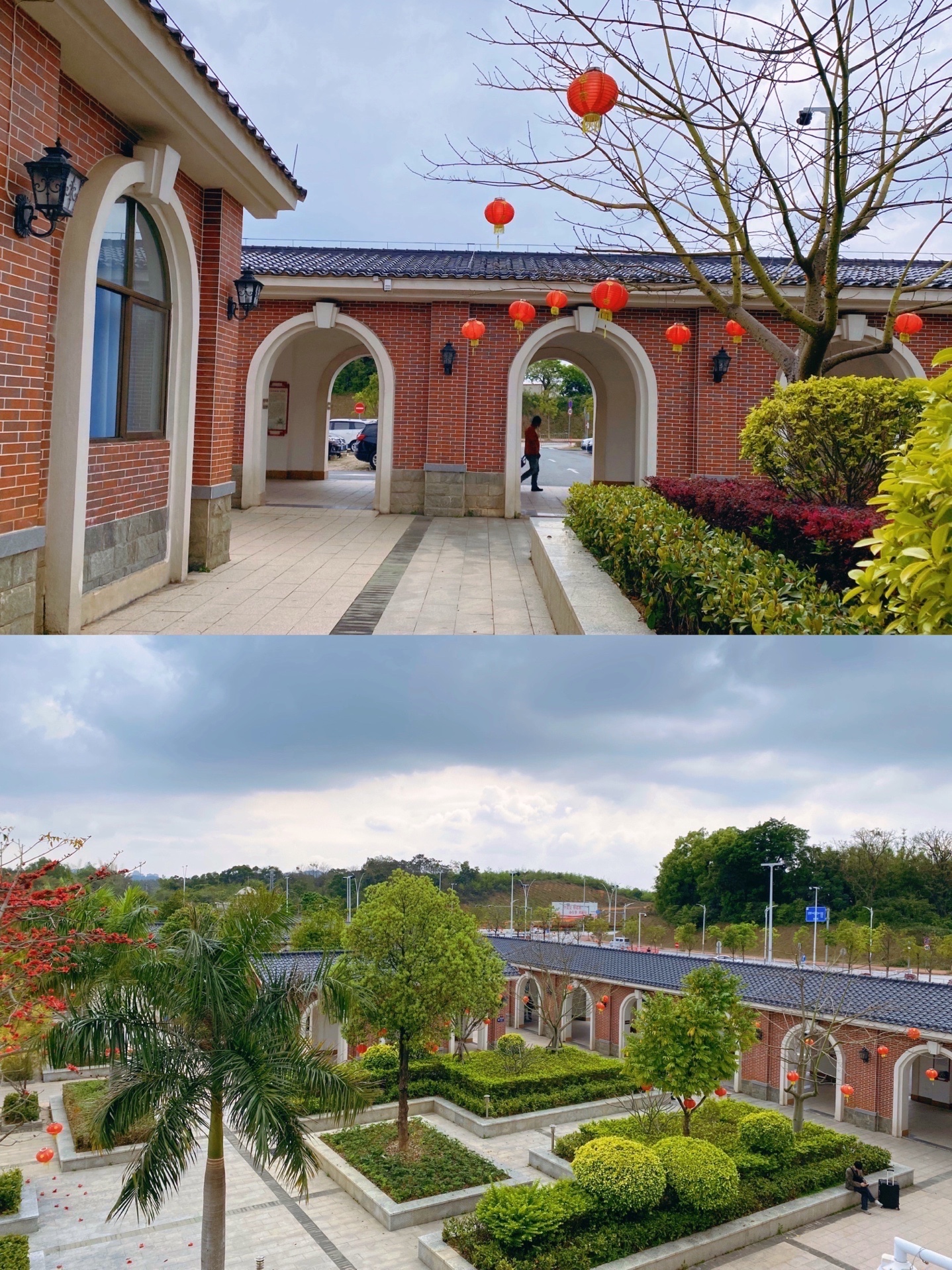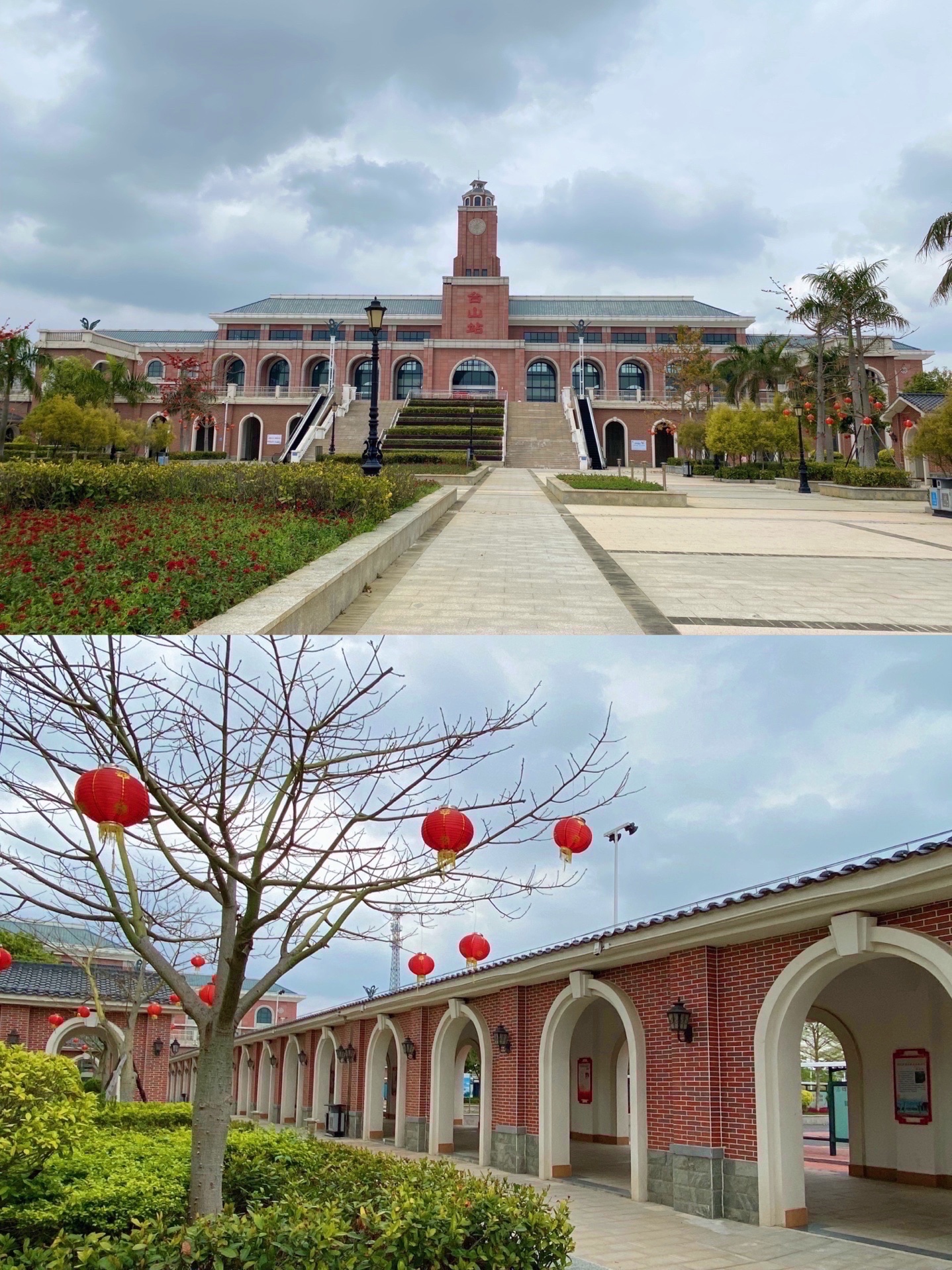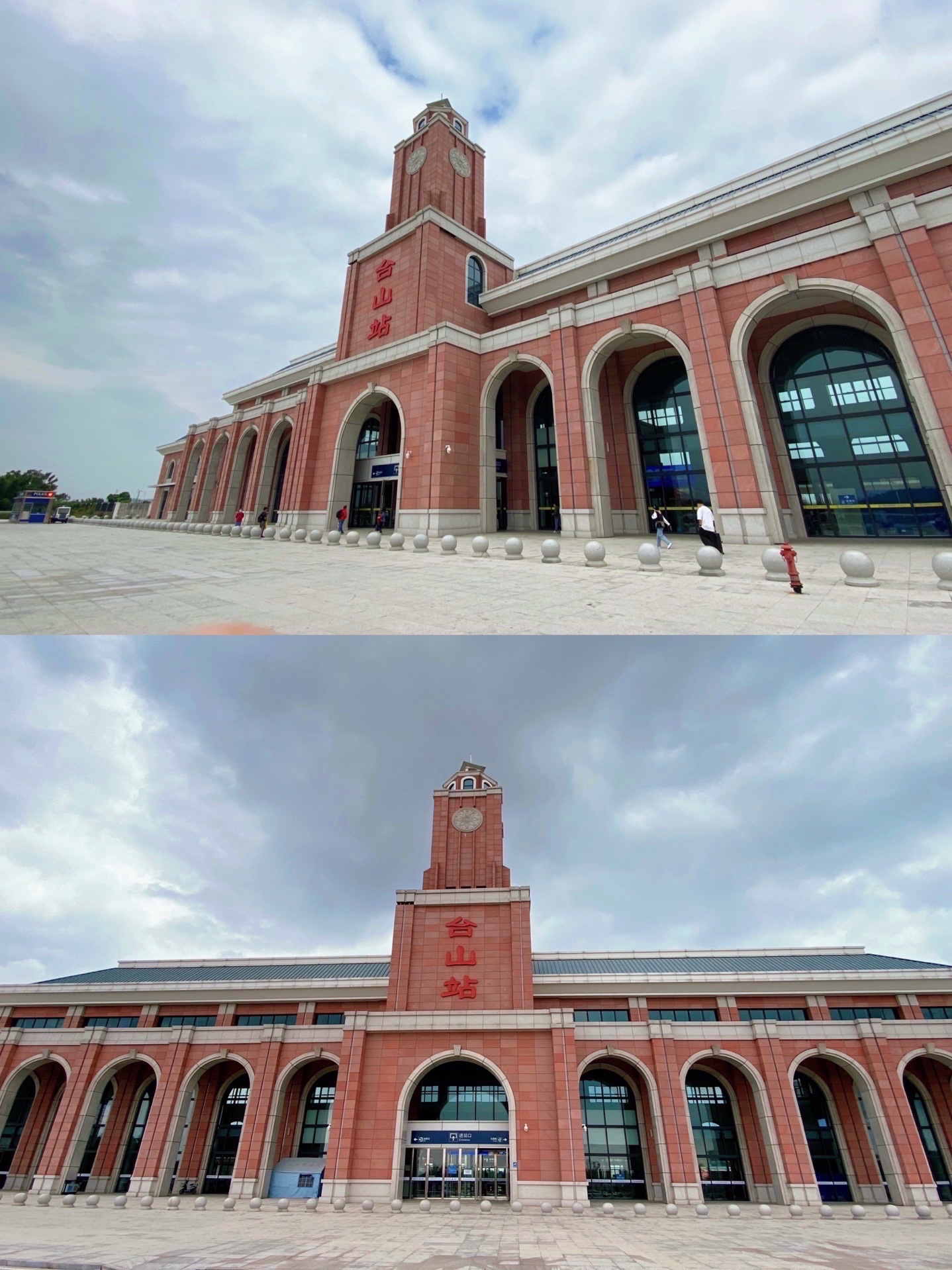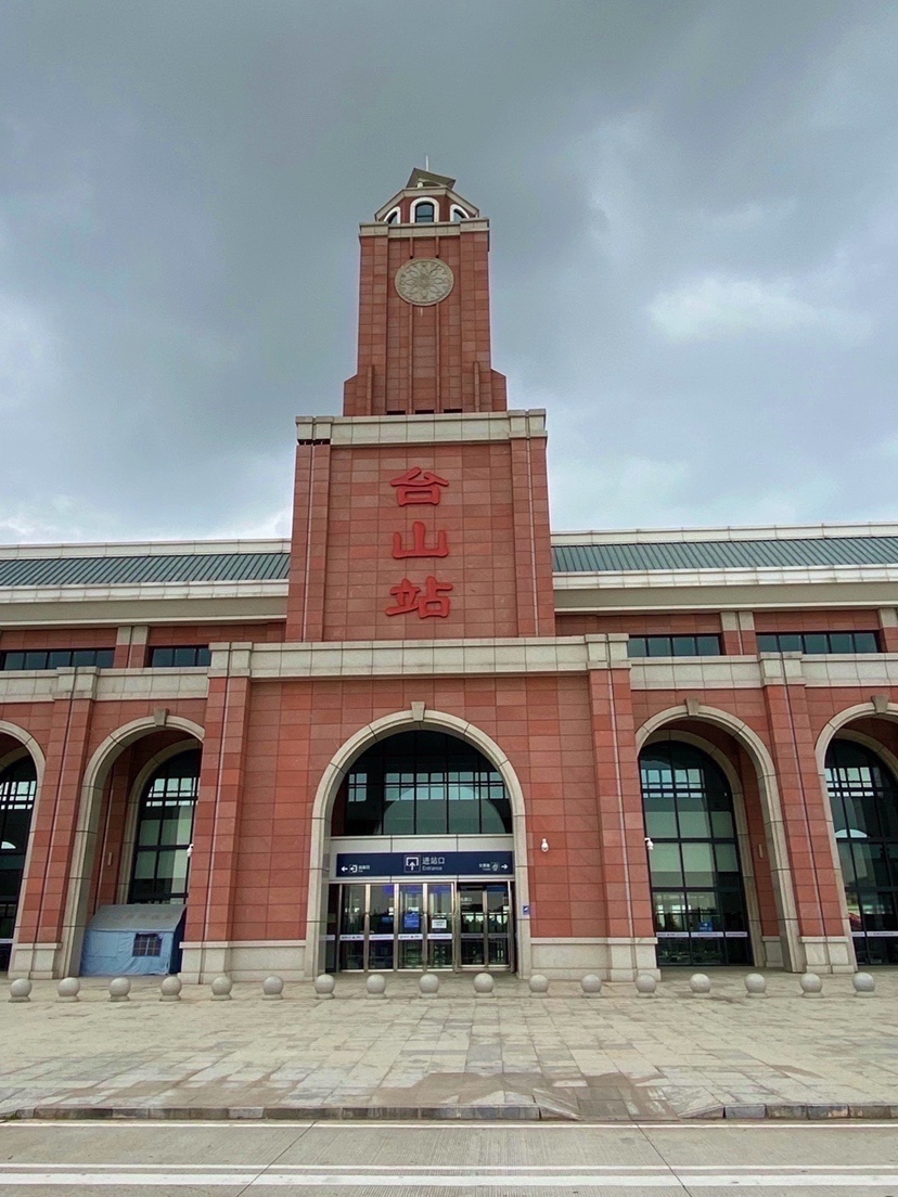 📍台山站站房整体是一幢外观为红墙绿瓦的欧式建筑,设计以原新宁铁路宁城站为原型,建筑古典大气,大楼正中是一幢高耸的钟楼。广场的左右两边被风雨长廊半包围着,让旅客进出免受日晒雨淋,红砖与半圆形拱门的交相辉映,配上那古色古香的路灯,仿佛穿过了时光隧道来到民国年间…