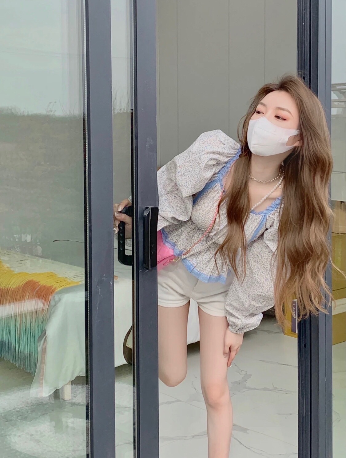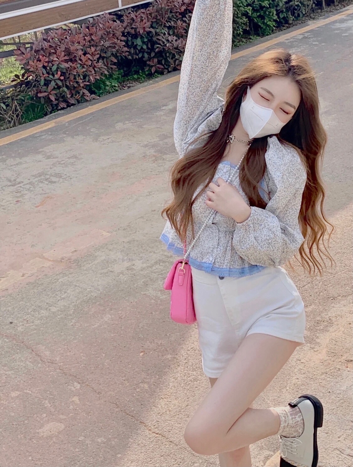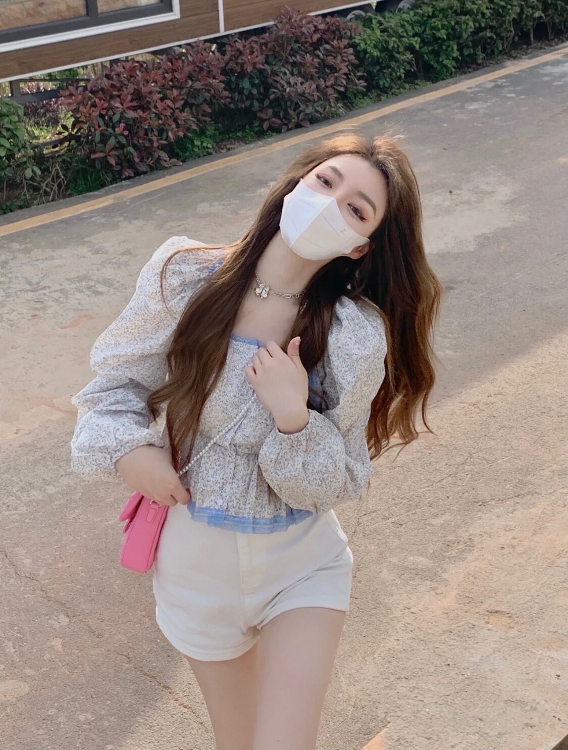 泡泡袖碎花上衣搭配浅色系短裤 代表着这个夏天来临啦 又可以美美哒出行咯