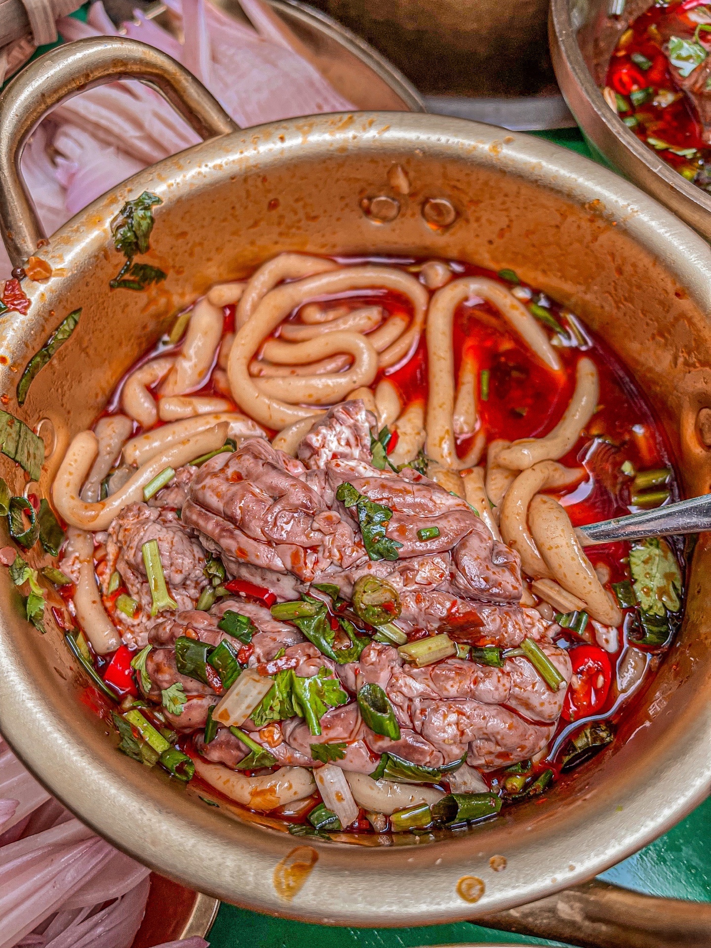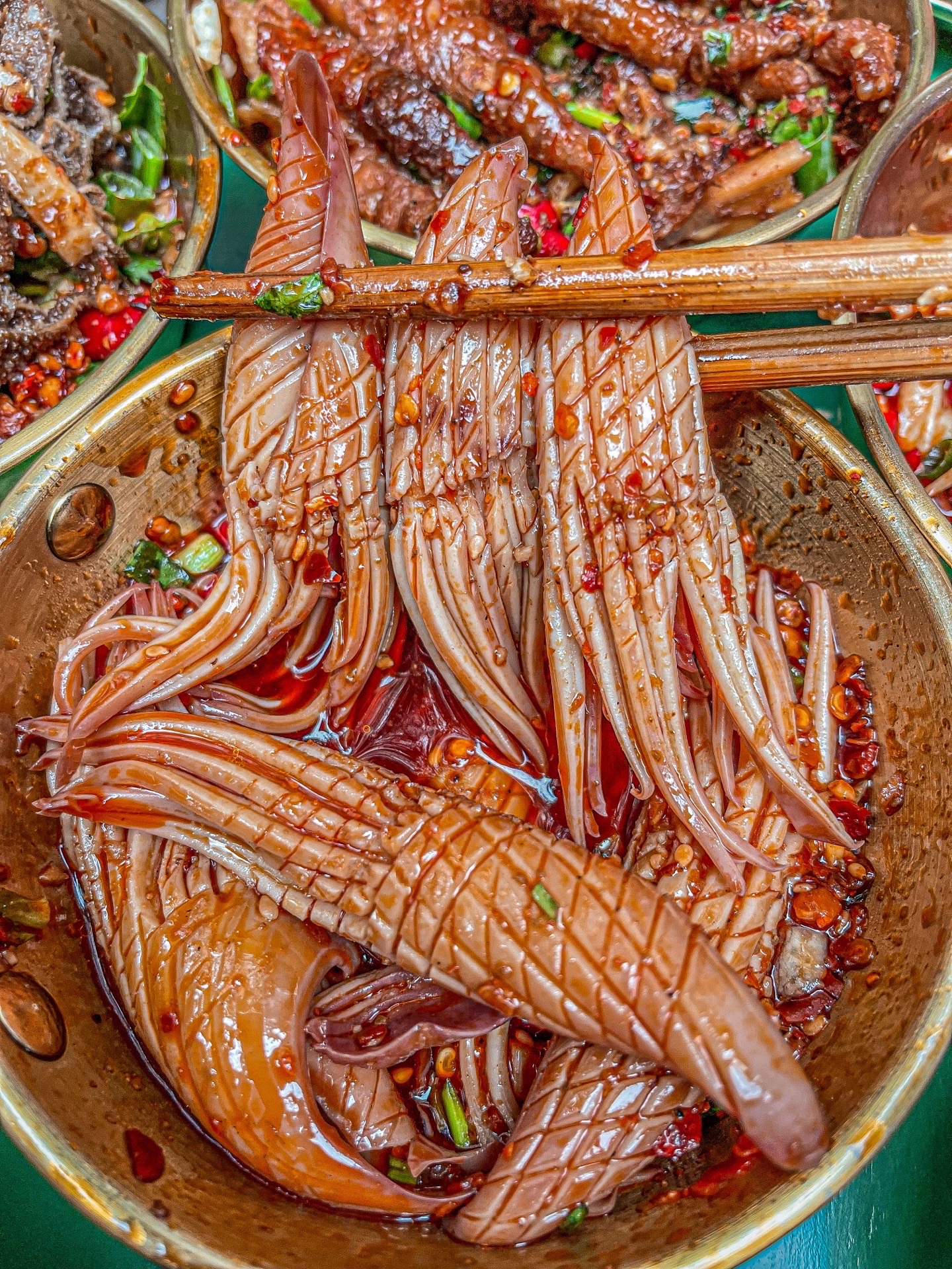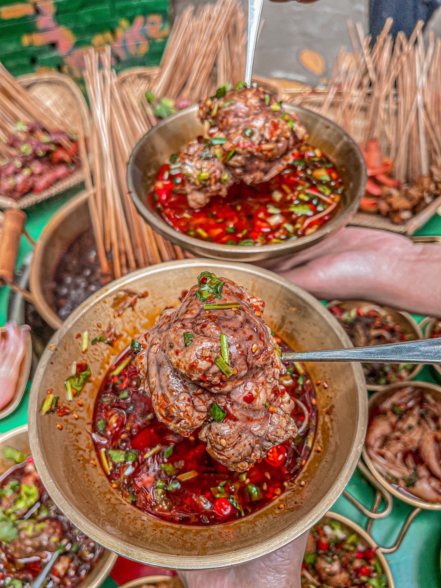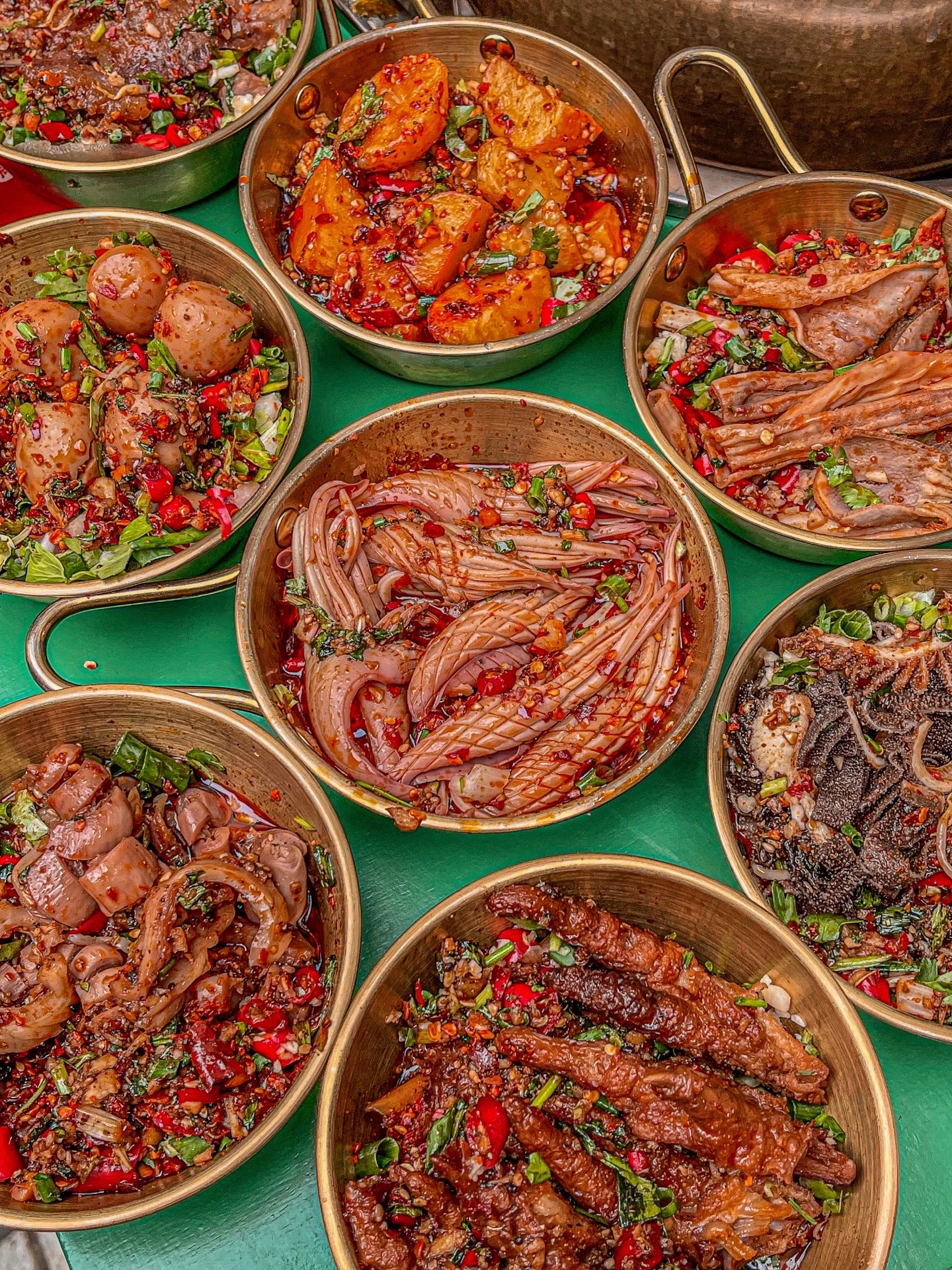 🔥他们家的小碗菜做得也是一绝!爽口肠、郡把、黄金蛋蛋、千层肚……尤其是极pin杠上脑花,味道一点都不腥,超级嫩!上面还有一层小料,吃起来又辣又爽,不愧是招牌脑花~