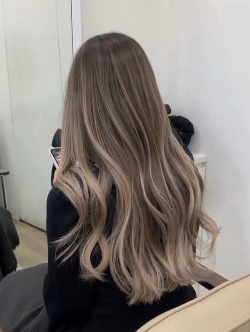 细腻的线条+发尾的全浅色渐变是巴黎画染的特点,褪色之后也特别好看,自然不会有布丁头的感觉70%的深色搭配30的浅色让发质更健康 显白发色巴黎画染 发色分享