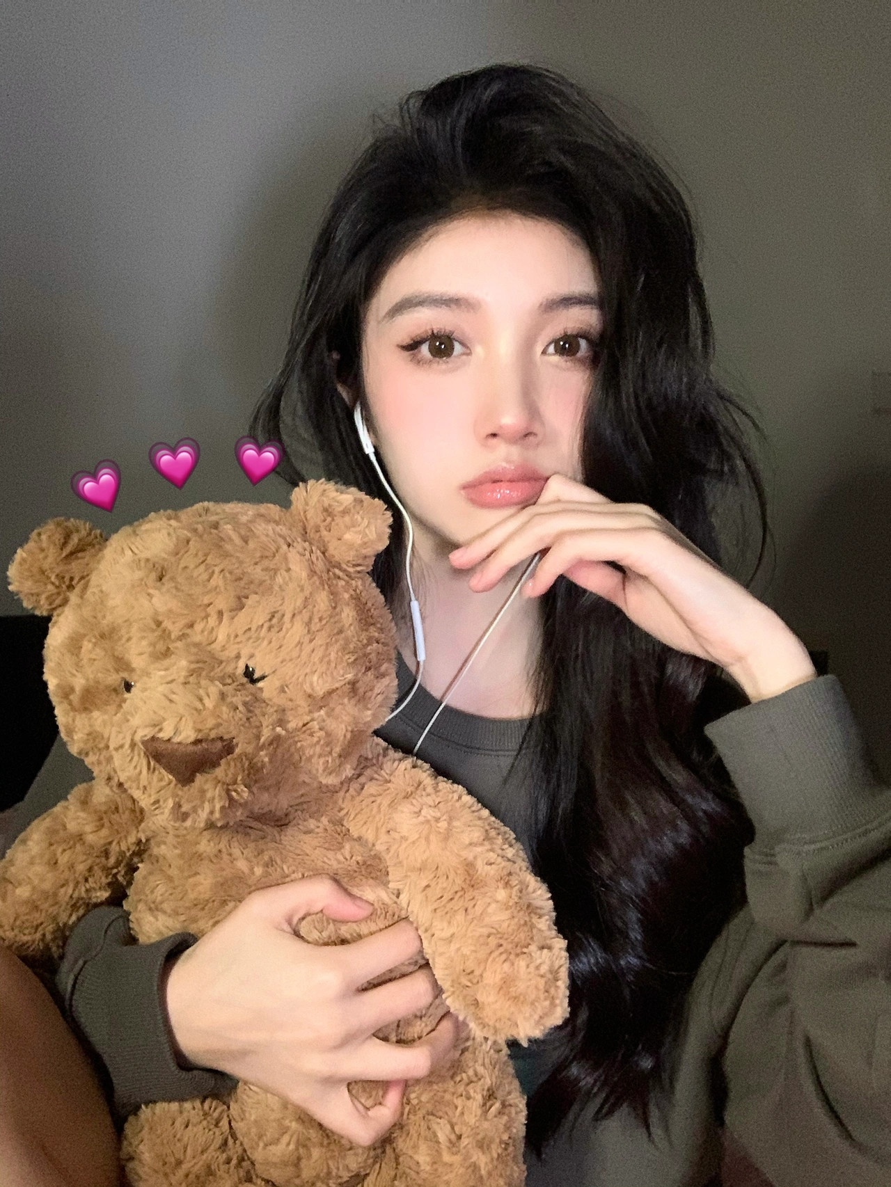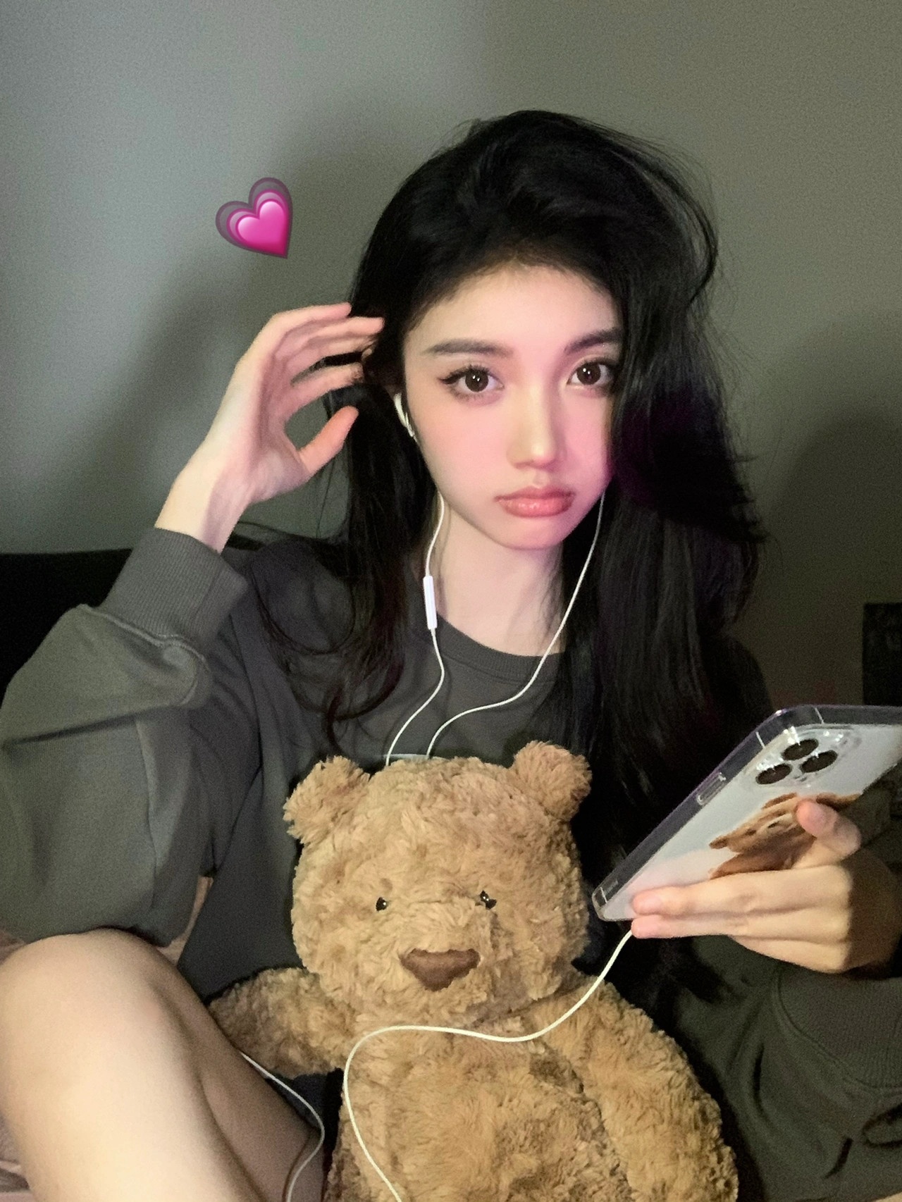 道具准备:有线耳机,你的床头玩偶