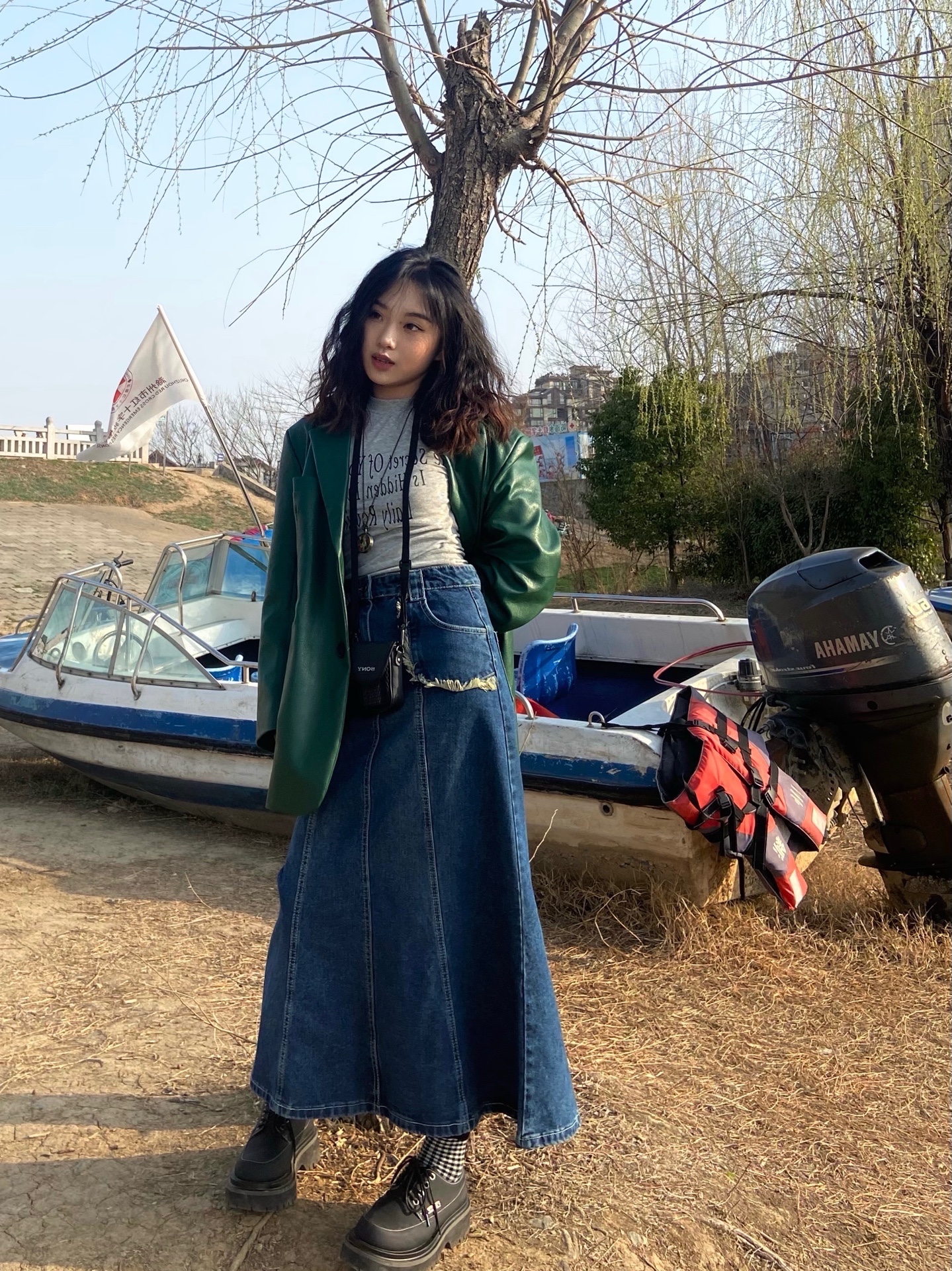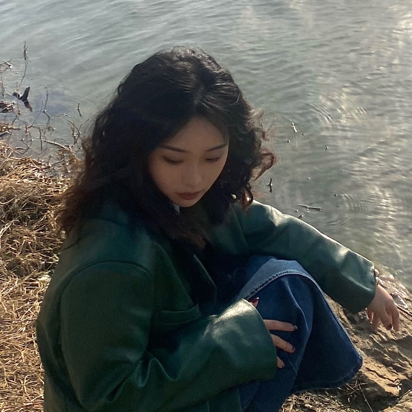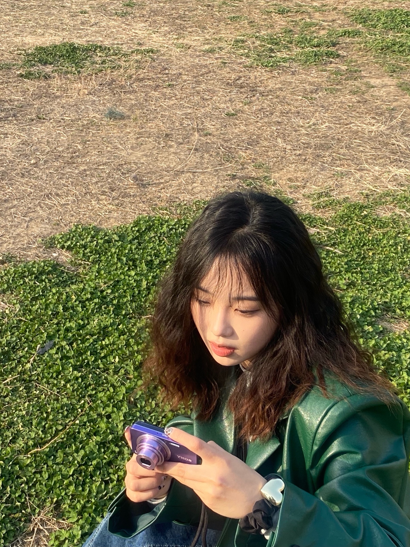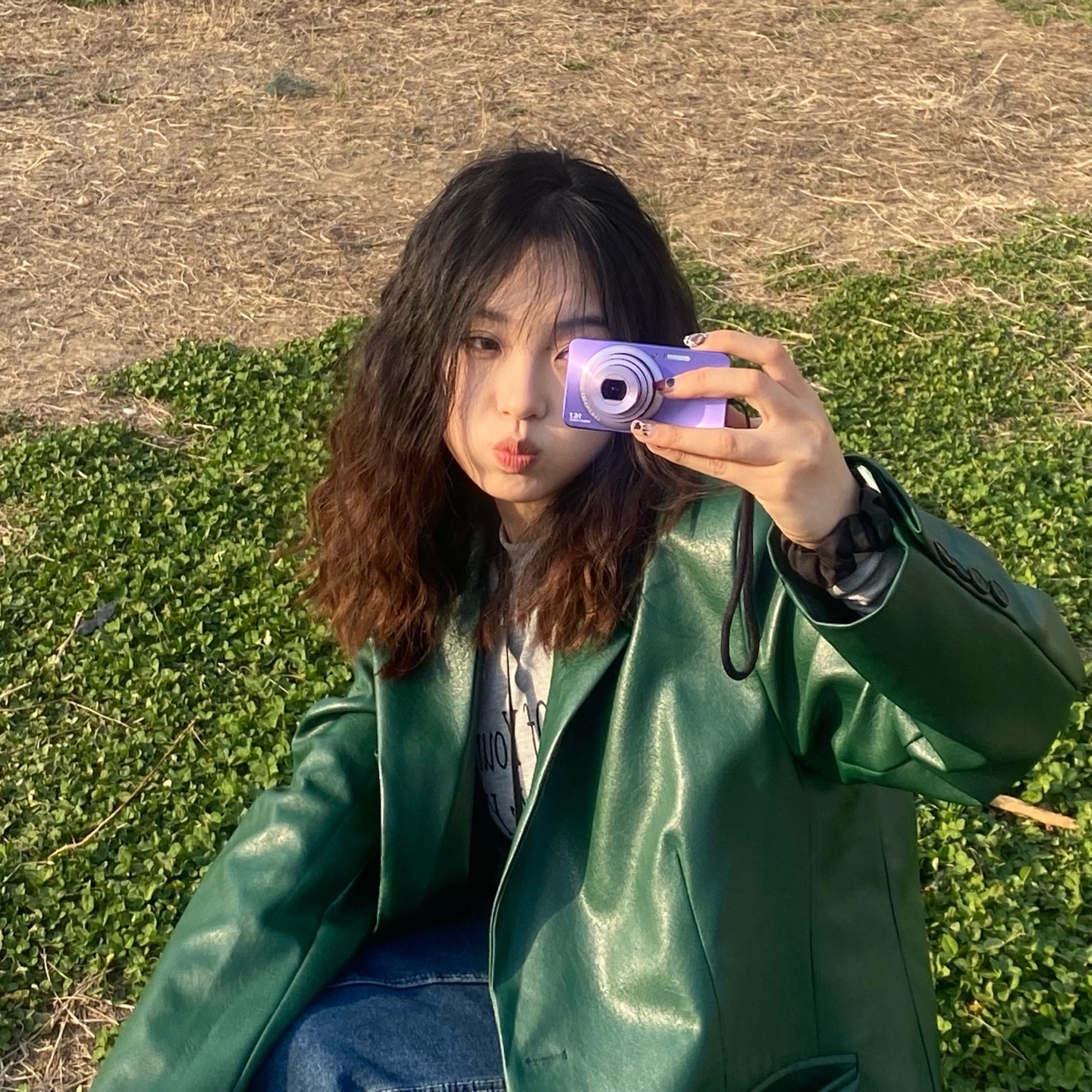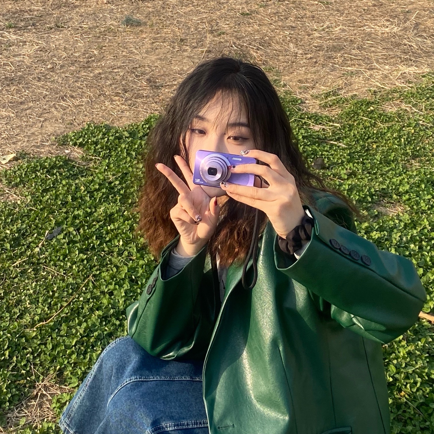 首先一个复古爆炸头(非常显脸小)➕复古绿皮衣(梦回80年代)➕复古牛仔