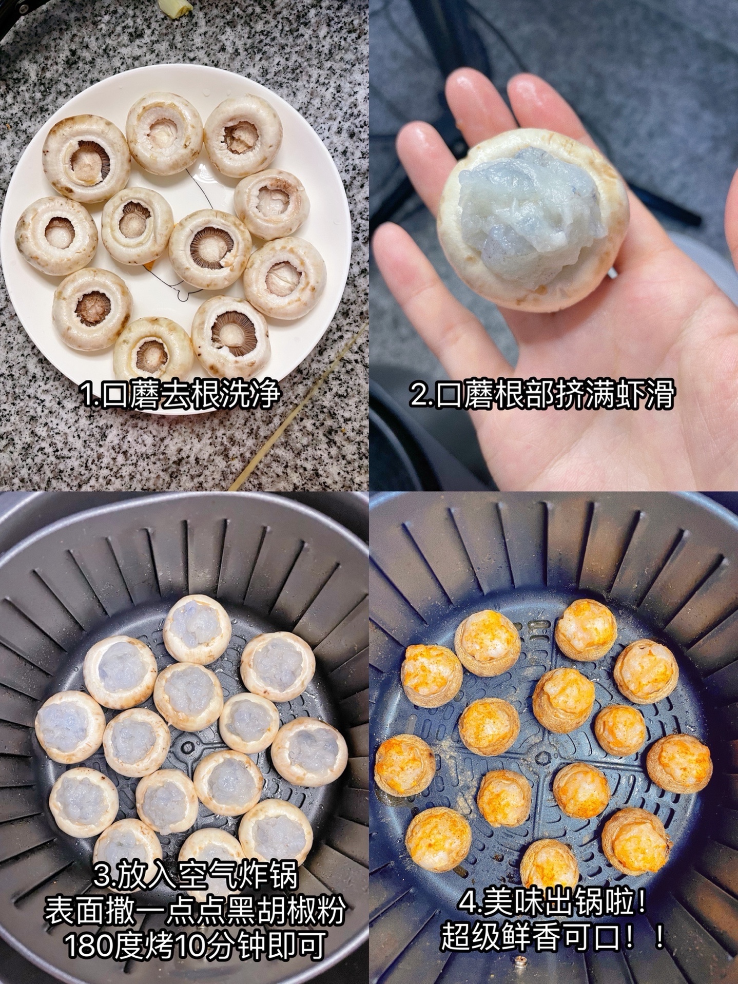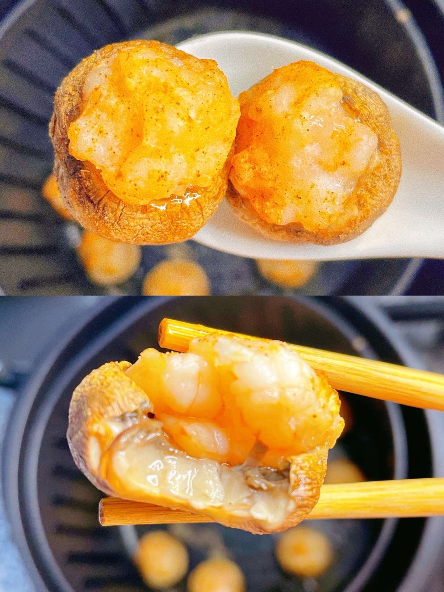 姐妹们,这个空气炸锅口蘑虾滑真的好好吃啊!!超级鲜香!!咬一口还会爆汁!!