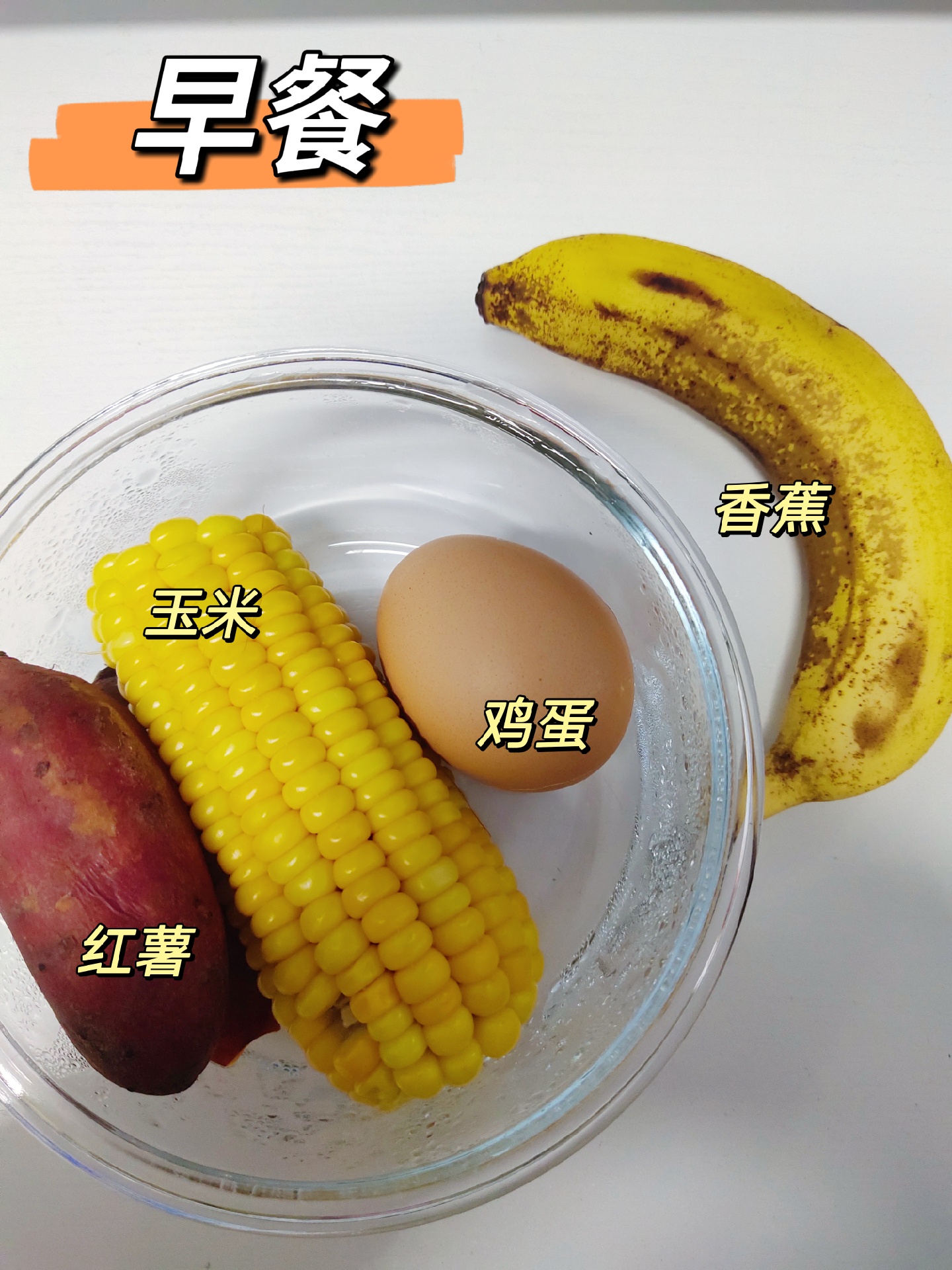 🍠早餐:水煮蛋+玉米+红薯+香蕉