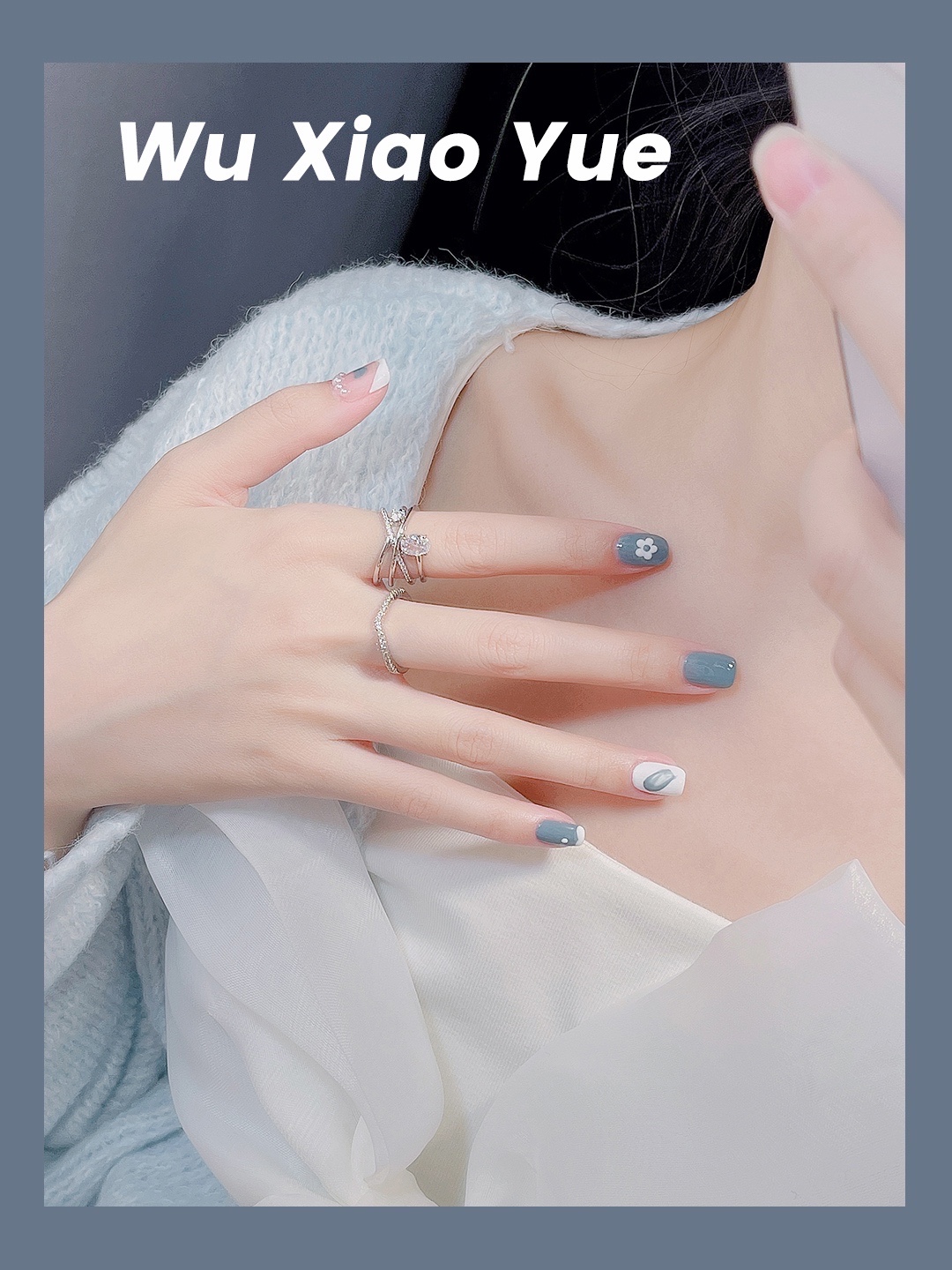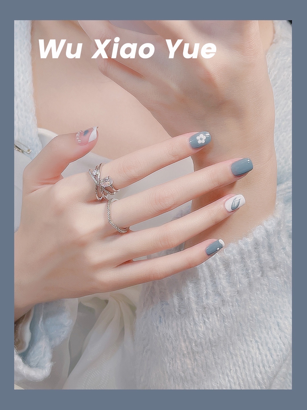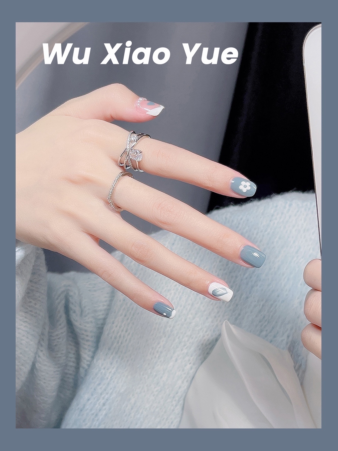 今天做了一个蓝色调的美甲💅
